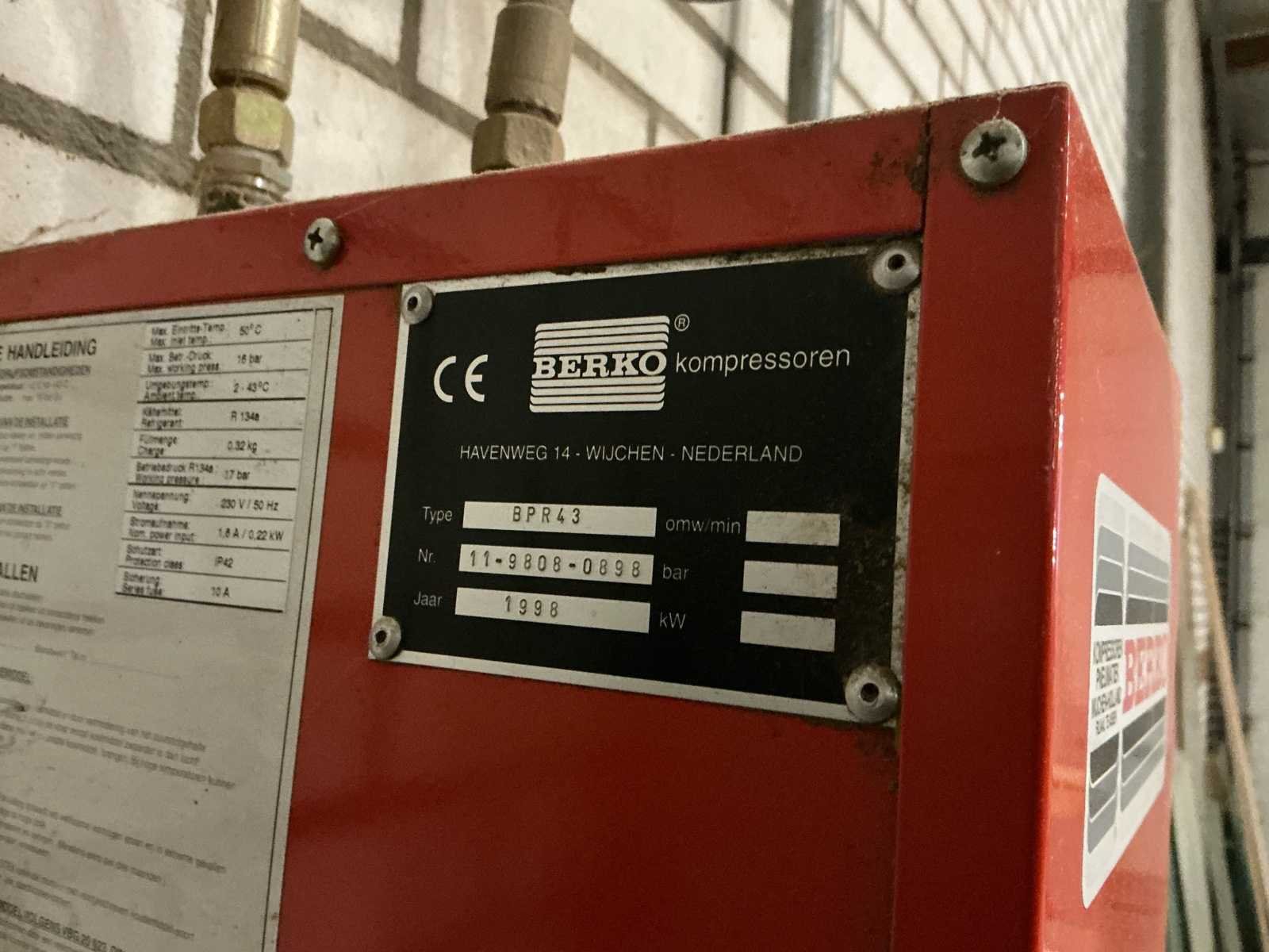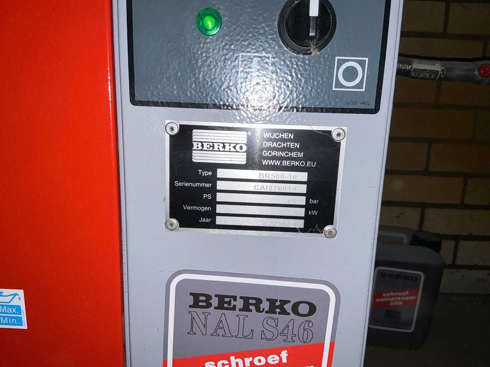 Werkende installatie Bestaande uit: - 04-202-034 (Buffervat) - BR500-10 - BPR43 No Merk: Berko Type: Compressor installatie Bouwjaar: 2015 Capaciteit.: 10bar Vermogen: 4kW Buffertank inhoud: 900l