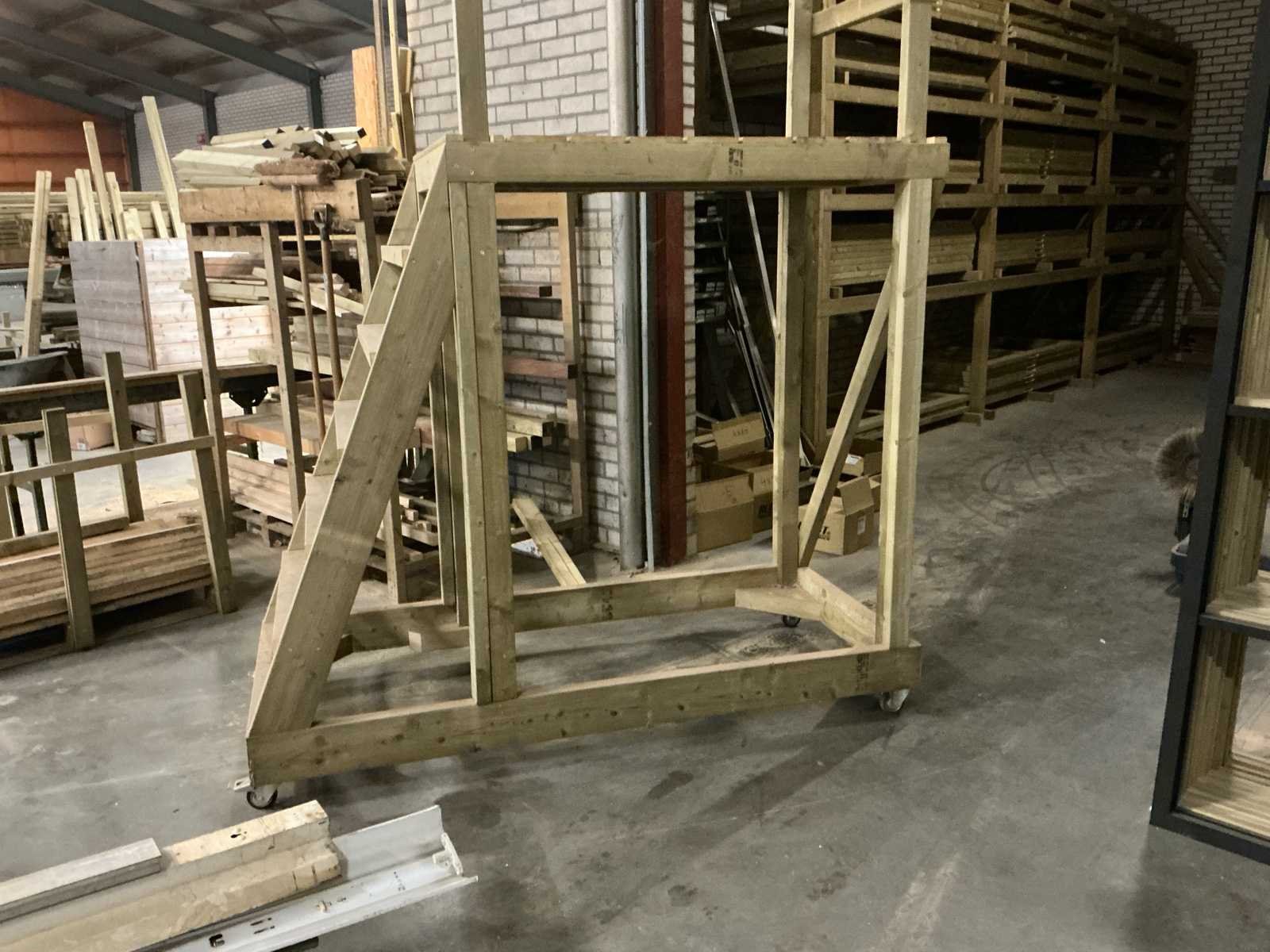 Gebruikt, 7 trede No Merk: Zelfbouw houten Product type: Trap Lengte: 200cm Breedte: 90cm Hoogte: 212cm Materiaal: Hout