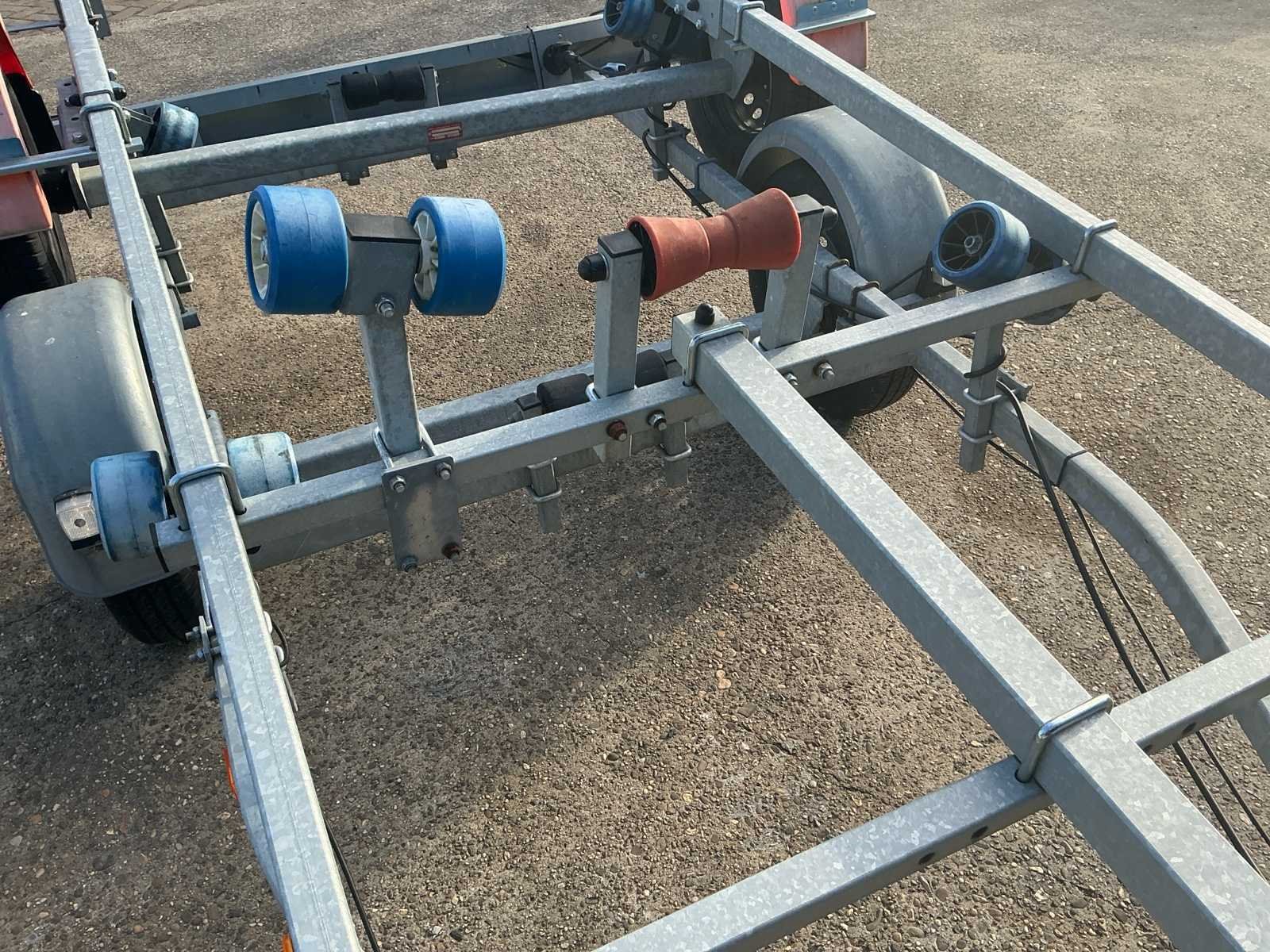 Allebei de trailers zijn uitschuifbaar; onderste trailer is een kanteltrailer Nee Merk: Thomas Trailers Lengte: 560cm Breedte: 183cm Hoogte: 66cm