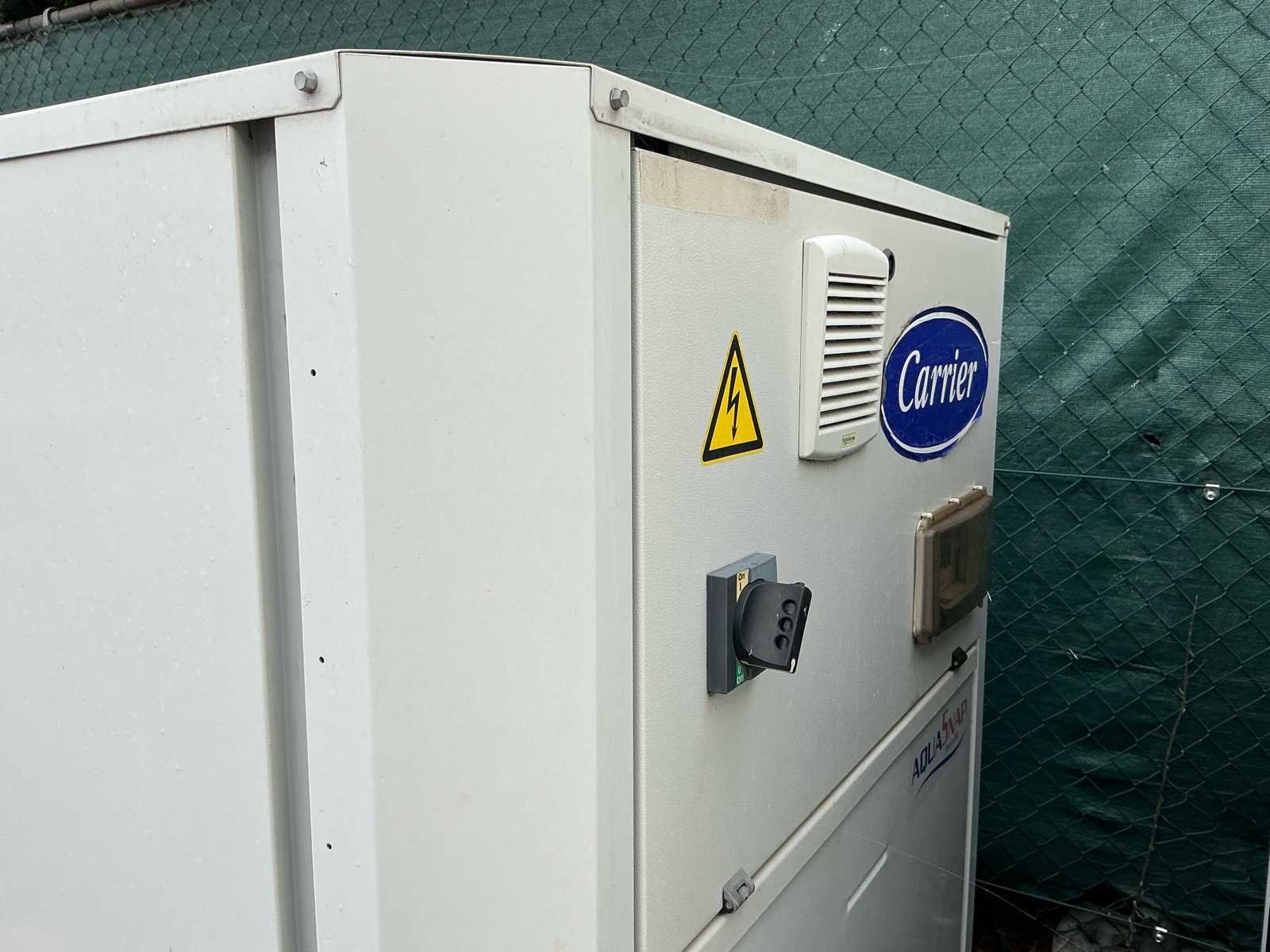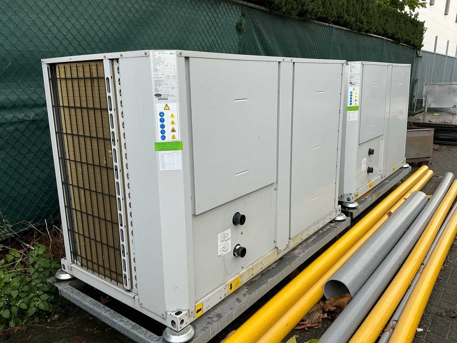 Hebben voor service en onderhoud gedraaid verder ongebruikt No Merk: Carrier Warmtepomp Type: 30RQS-070B0106-PE Bouwjaar: 2018 Vermogen: 70kW Eigen gewicht: 602kg Totale afmeting L: 2100mm Totale afmeting Breedte: 1100mm Totale afmeting Hoogte: 1500mm