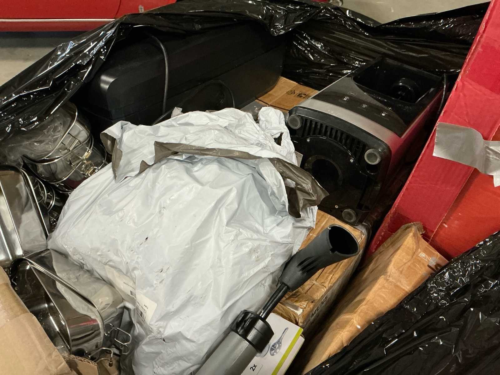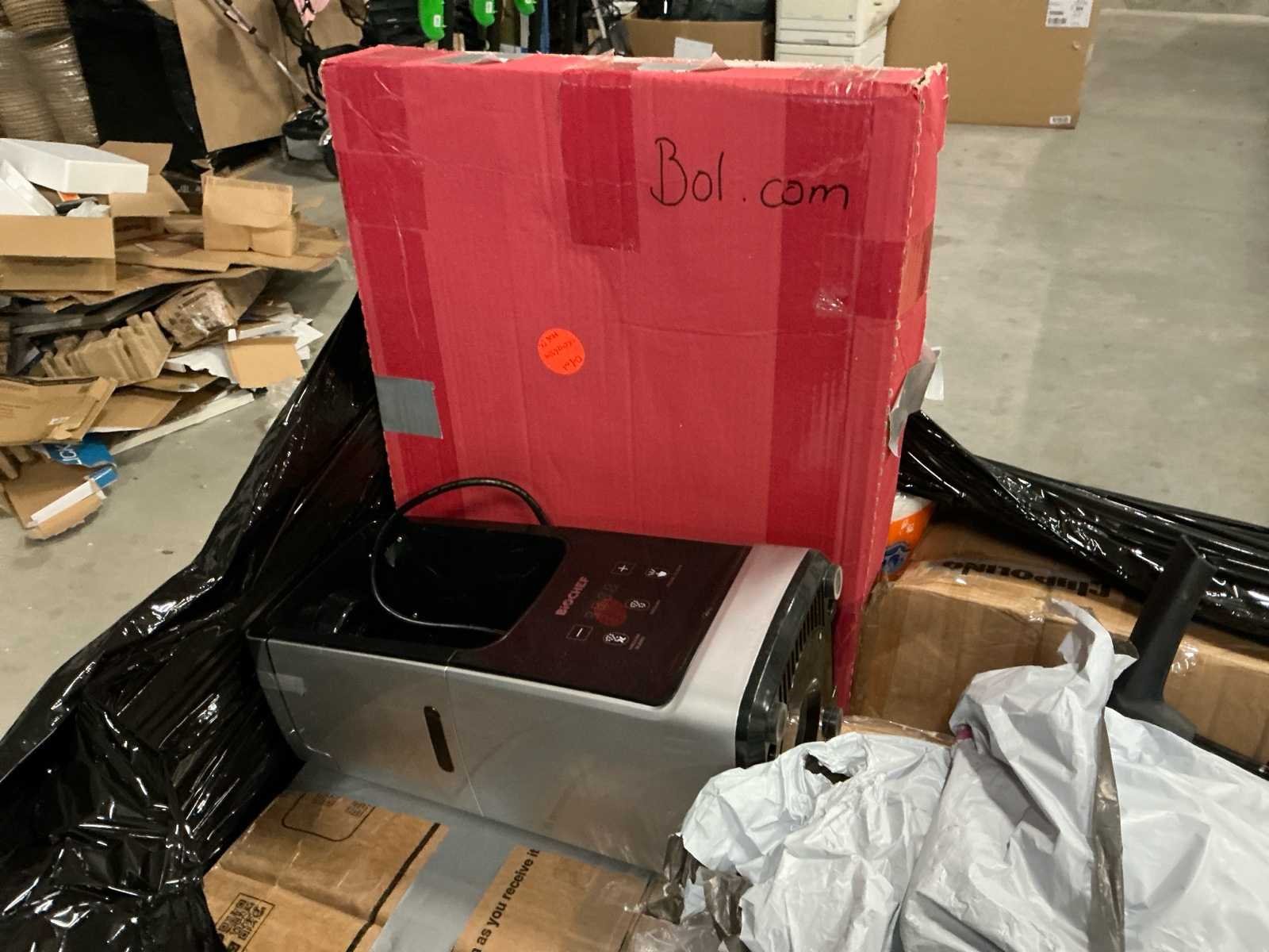 Bestaat uit: MIX-pallet 205, 900x1300x1400: huishoudelijke apparaten, elektronica, kinderartikelen, retourzendingen, retourgoederen van A en B merken. Product voorbeelden: keukenmachines, grills, waterkoker, broodrooster, elektrische apparaten en tandenborstels, ventilatoren, stofzuigers en wanddecoraties, koffers, kinderwagens, beeldschermen / televisies, terrasheaters, telefoons / Laptops / Multimedia, keukenapparatuur enz. No