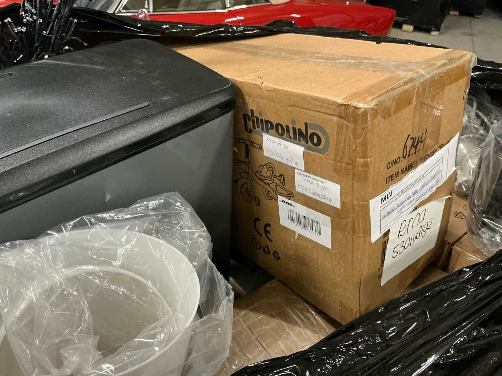 Bestaat uit: MIX-pallet 212, 900x1300x1500: huishoudelijke apparaten, elektronica, kinderartikelen, retourzendingen, retourgoederen van A en B merken. Product voorbeelden: keukenmachines, grills, waterkoker, broodrooster, lektrische apparaten en tandenborstels, ventilatoren, stofzuigers en wanddecoraties, koffers, kinderwagens, beeldschermen / televisies, terrasheaters, telefoons / Laptops / Multimedia, keukenapparatuur enz. No