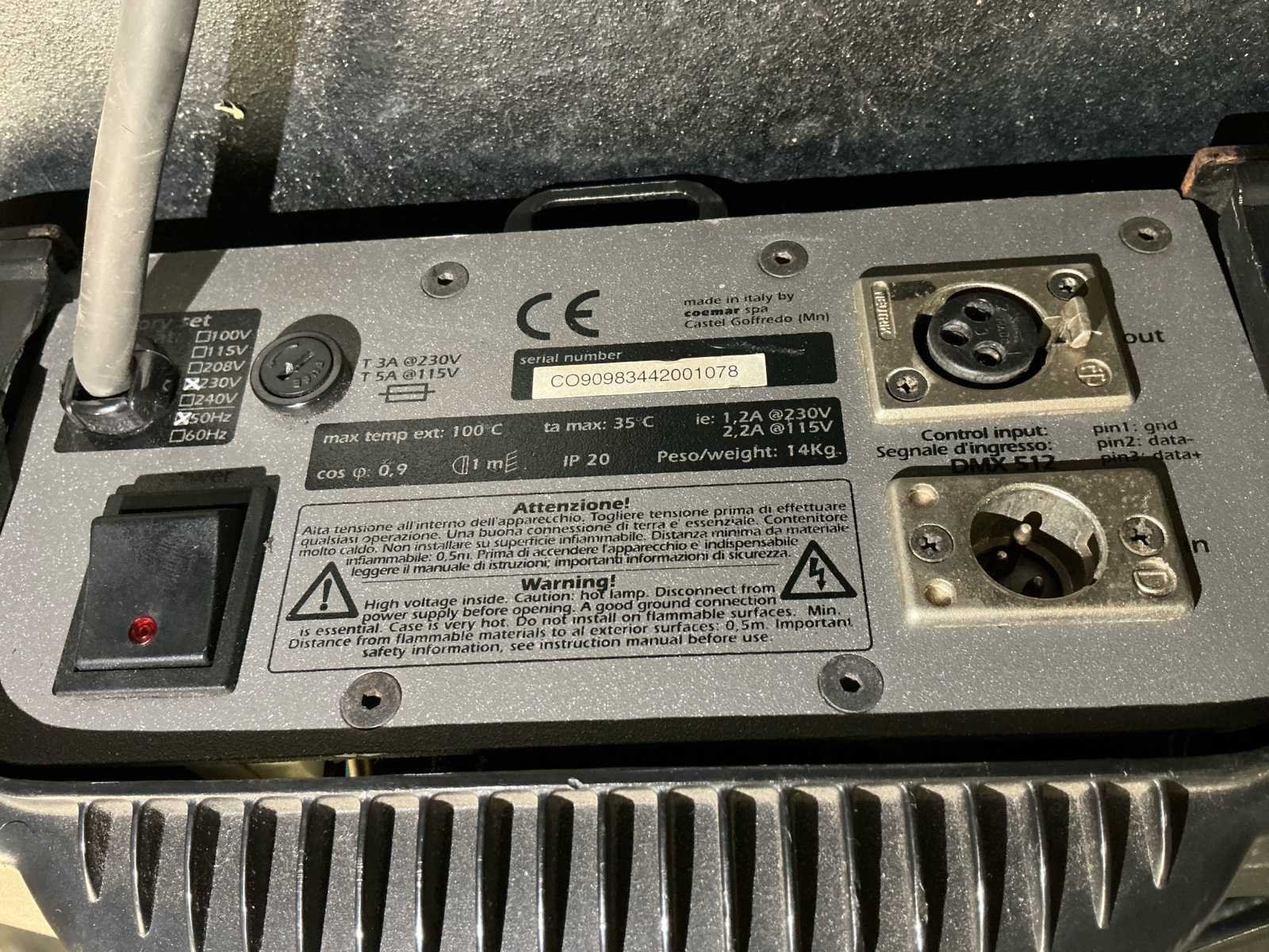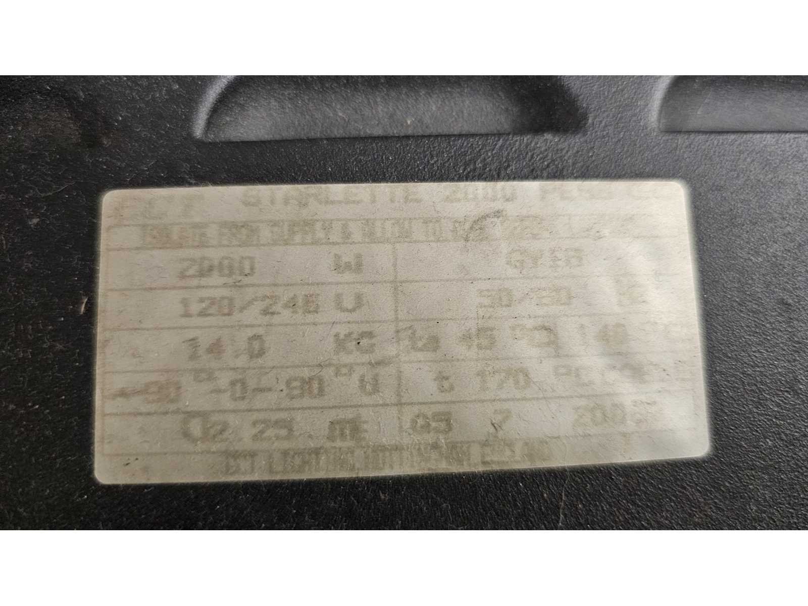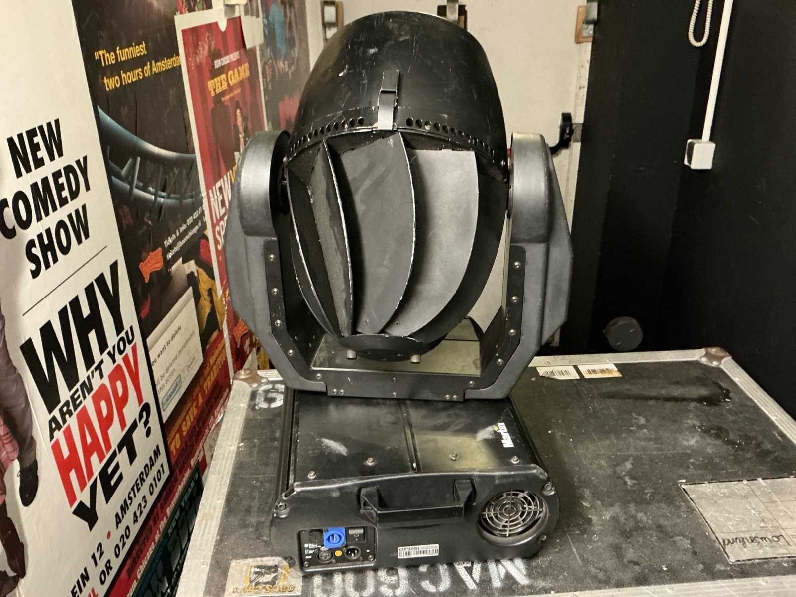 Voorzien van twee flight cases één case bevat 2x Martin Mac600 (washlight) en de andere case bevat 2x Coemar I-Spot 150L; 4x safetysteel; 4x G Haken Diverse Theaterlampen 14x Teatro Comma 22/35 2x Teatro Comma PC650 2x Eurolite Theaterspot 2x CCT Starlette 2000 PC (3x, 2 werking onbekend) ETC Source FourPar Flood onbekend DTS Mod Theaterspot Strand Optique 1542 Eurolite FS600 followspot Zie opmerkingen voor de specificatie van de overige items. Nee