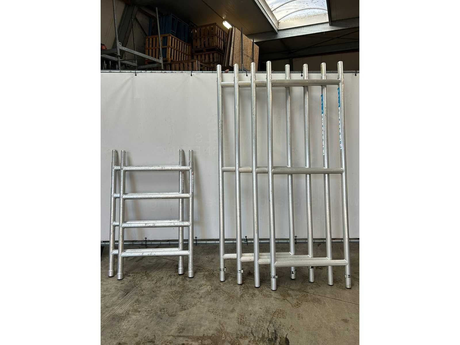 4x grote opbouwframes (2 meter hoog), 2x kleine opbouwframes (1 meter hoog) Nee Merk: Euro Scaffold