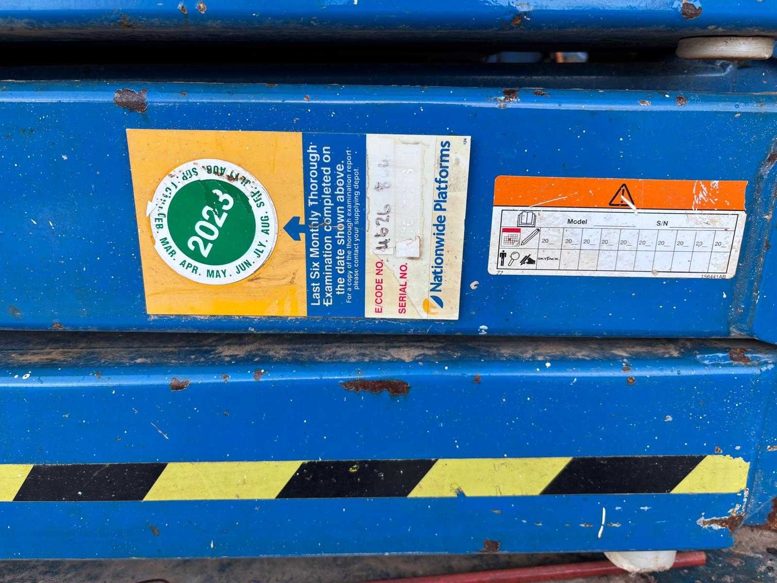 Laadt op maar sleutel onbreekt Nee Merk: Skyjack Bouwjaar: 2015 Elektrisch: true Werkhoogte: 10000mm Plateau afm. l: 2150mm Plateau afm. b: 1100mm