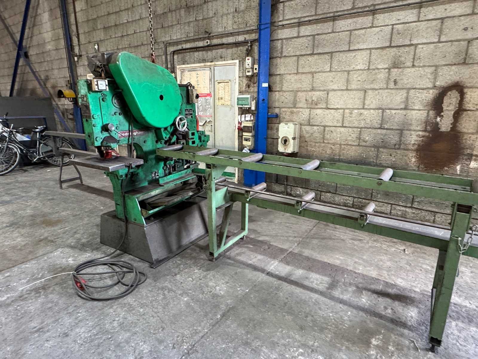 Op locatie is een 1.500kg heftruck aanwezig. Nee Merk: Peddinghaus Type: 210A/13 Rondstaal max.: 25mm Vierkantstaal max.: 38mm Ponscapaciteit: 16mm Buigcapaciteit: 42mm Afgelezen urenstand: 1249 Motorvermogen (kW): 3kW Machinegewicht: 2000kg