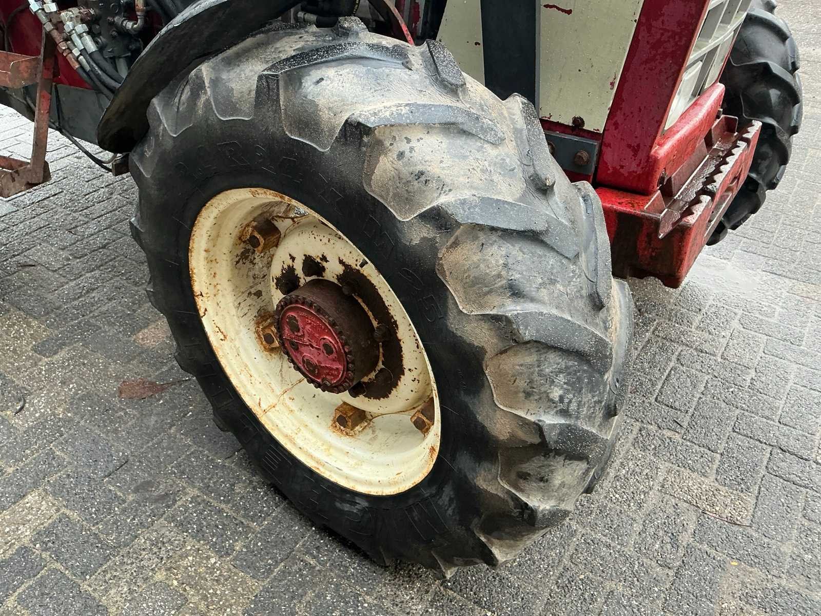 Voorzien van: voorlader met laadfunctie, dubbele aftakas, 2 x dubbelwerkende hydraulische ventielen, remventiel Nee Merk: International Harvester Type: 845 XL Bouwjaar: 1982 Serienummer: 8199 A Motorvermogen (kW): 60kW Afgelezen urenstand: 12830 Versnellingsbaktype: Handgeschakeld Aantal hydraulische ventielen achter: 2 Bandenmaat voor: 12.4R24 Bandenmaat achter: 460/85R38 Voorlader: true Cabine: true Totale afmeting L: 5500mm Totale afmeting Breedte: 2150mm Totale afmeting Hoogte: 2800mm Chassisnummer: 8199 A