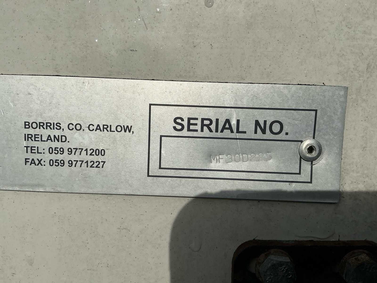 Voorzien van: Keenan MechFiber 300 voermengwagen (bouwjaar 2012) – inhoud 14 m³, gewicht 7 ton, PTO-aandrijving 540 rpm, horizontaal peddelmengsysteem met zij-losband, lengte 7,4 m, breedte 2,4 m, hoogte 2,8 m No Merk: Keenan Type: MF300 Bouwjaar: 2012 Serienummer: MF30D225 Kenteken: LDK-26-X Tankinhoud: 14m³ Totale afmeting L: 7400mm Totale afmeting Breedte: 2400mm Totale afmeting Hoogte: 2800mm