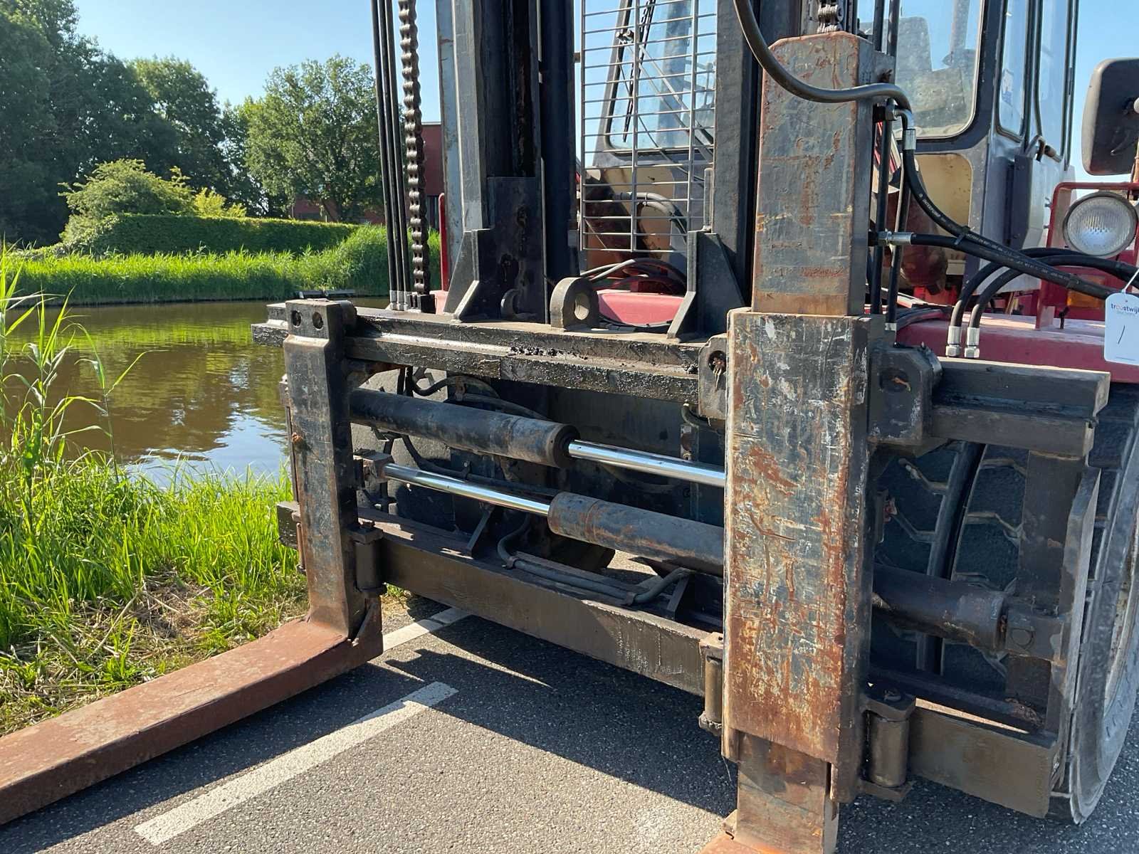 Nee Merk: Kalmar Type: DC 12-600 Bouwjaar: 1987 Serienummer: T330121235 Brandstof: Diesel Mast: Duplex Soort band: Volrubber banden Aantal wielen: 4 Side-shift: true Hydraulisch verstelbare lepels: true Duplex mast: true Eigen gewicht: 15490kg Hefvermogen: 12000kg Lepellengte: 2300mm Max. hefhoogte: 3500mm Vol rubber banden: true Minimale doorrijhoogte: 3400mm Diesel: true