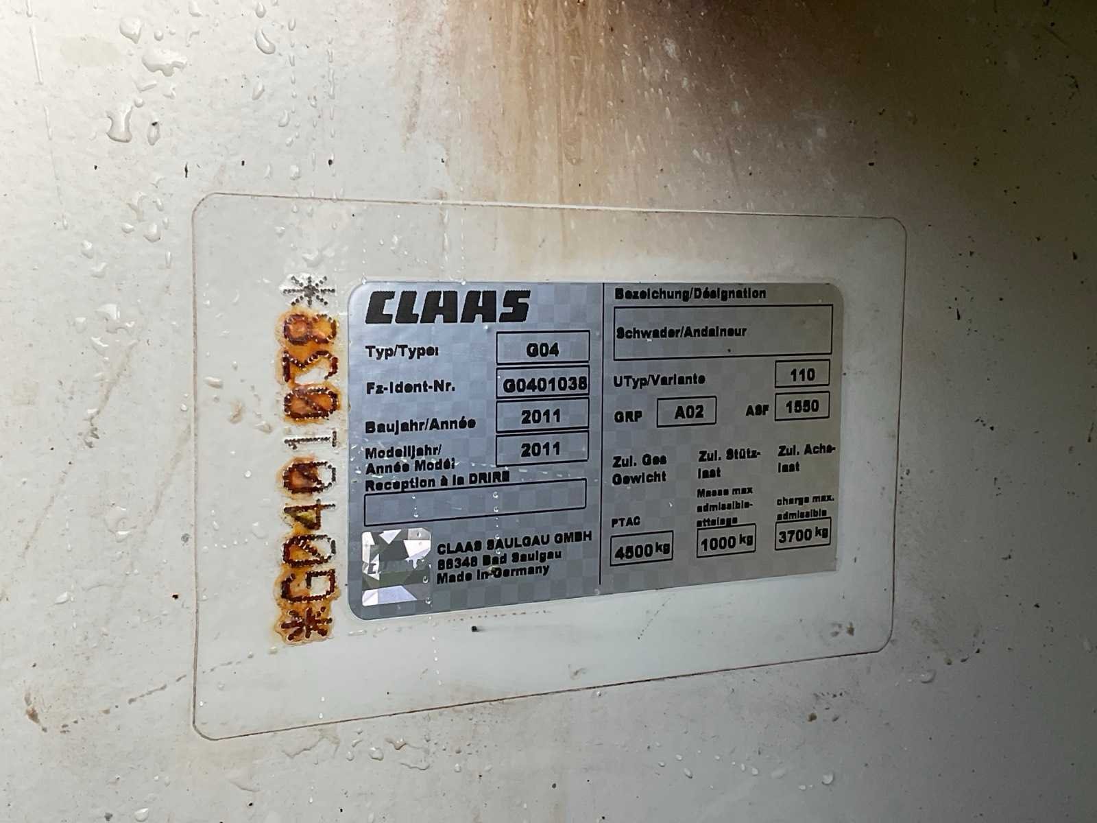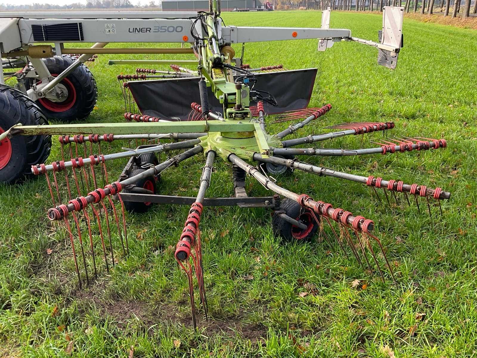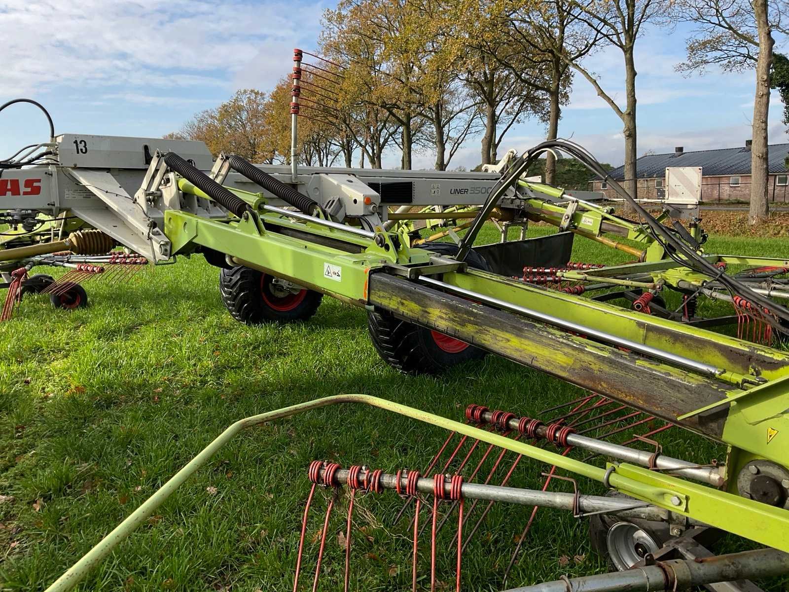 Rotor diameter 3300mm, 48 armen, voorzien van: 4 rotors, luchtremmen, load-sensing bediening, BKT 500/55-20 banden, Claas bedieningskast, 2 punts aansuiting, led verlichting, Nederlandse kentekenregistratie, Nee Merk: Claas Type: Liner 3500 Bouwjaar: 2011 Serienummer: G0402038 Werkbreedte: 12500mm Eigen gewicht: 4400kg Totale afmeting L: 8400mm Totale afmeting Breedte: 3000mm Totale afmeting Hoogte: 3900mm