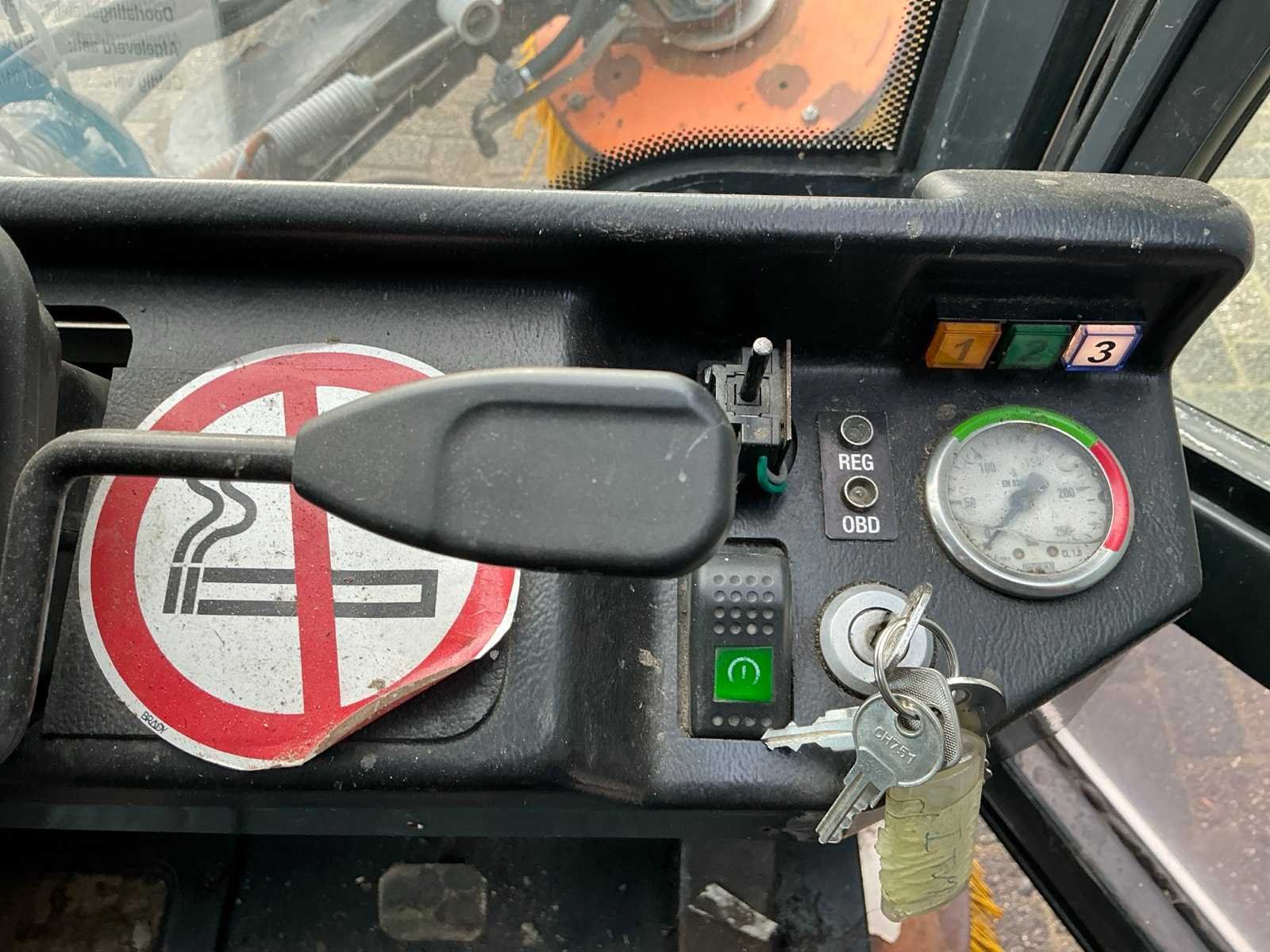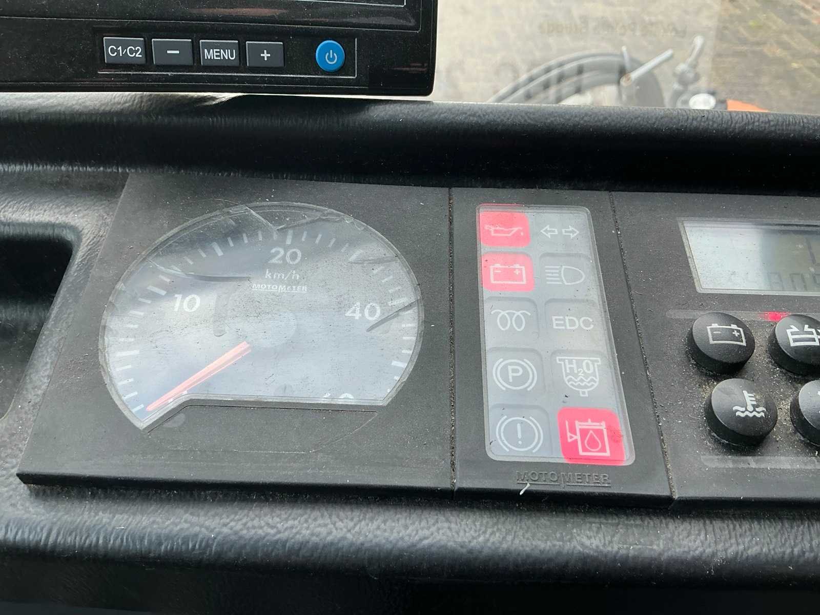Voorzien van: opbergkist achter, joystick 4 functies en 3 standen (12 functies Max), 3 veegborstels in breedte verstelbaar, 1 veegborstel met arm, achteruitrijcamera, zwaailamp voor en achter, zuiginstallatie, sproeier op de extra veegarm Nee Merk: AEBO MFH Type: 2500 Bouwjaar: 2014 Serienummer: 001518001 Afgelezen urenstand: 4809 Brandstofmotor aangedreven: true Brandstof: Diesel Merk motor: Iveco Motor type: true Aantal cilinders: 4 Schoonwatertank: true Max. snelheid: 40km/h Emissieklasse: Euro 5 Werkbreedte: 2000mm Totale afmeting L: 5400mm Totale afmeting Breedte: 1500mm Totale afmeting Hoogte: 2100mm