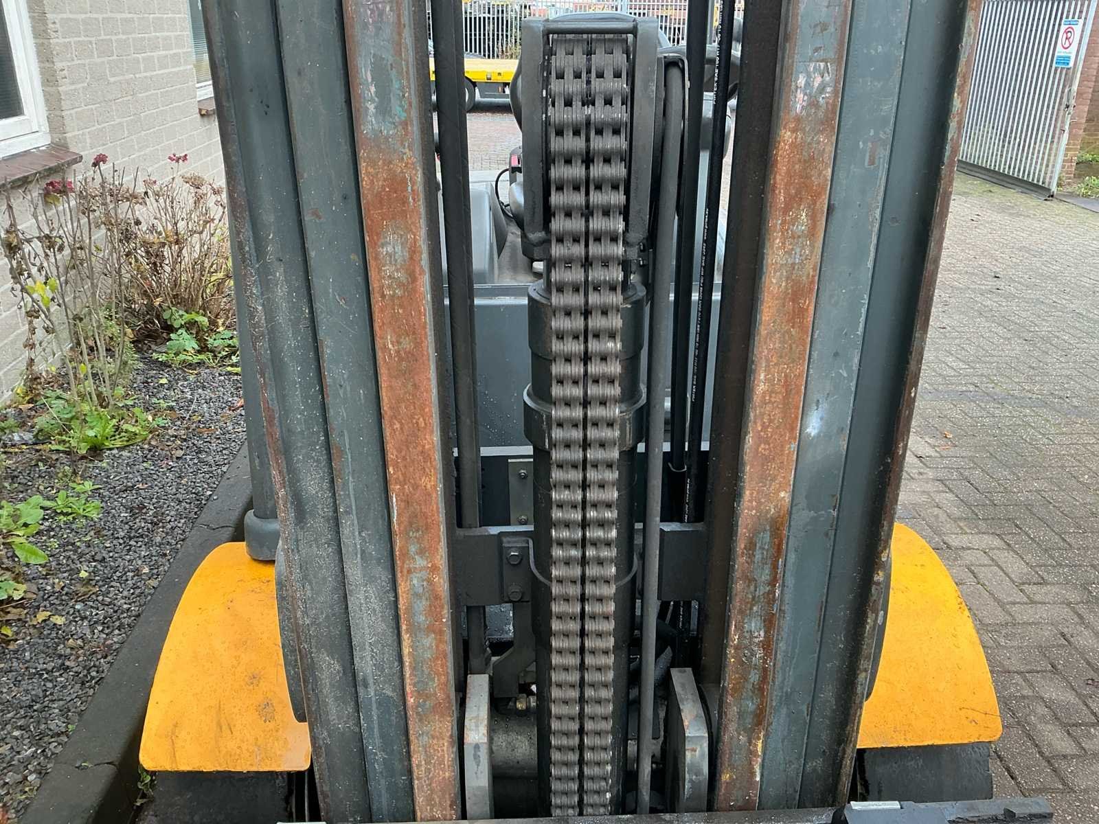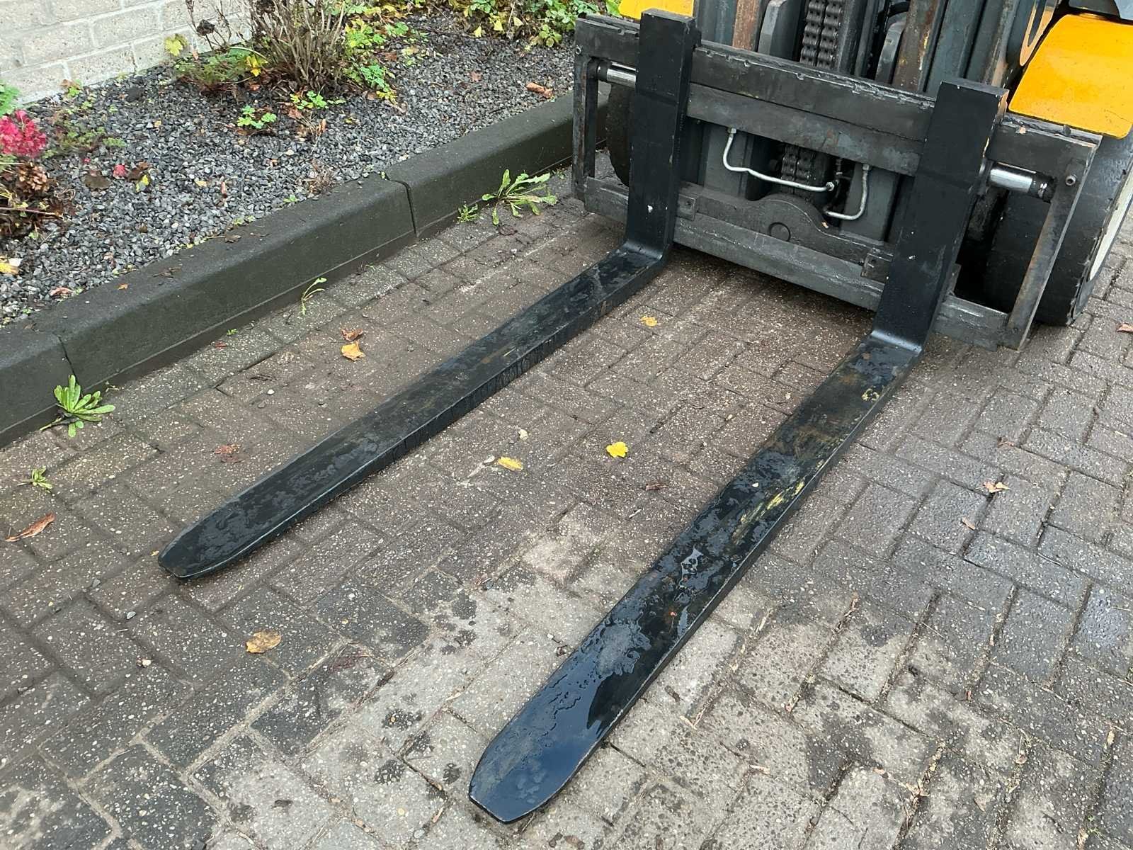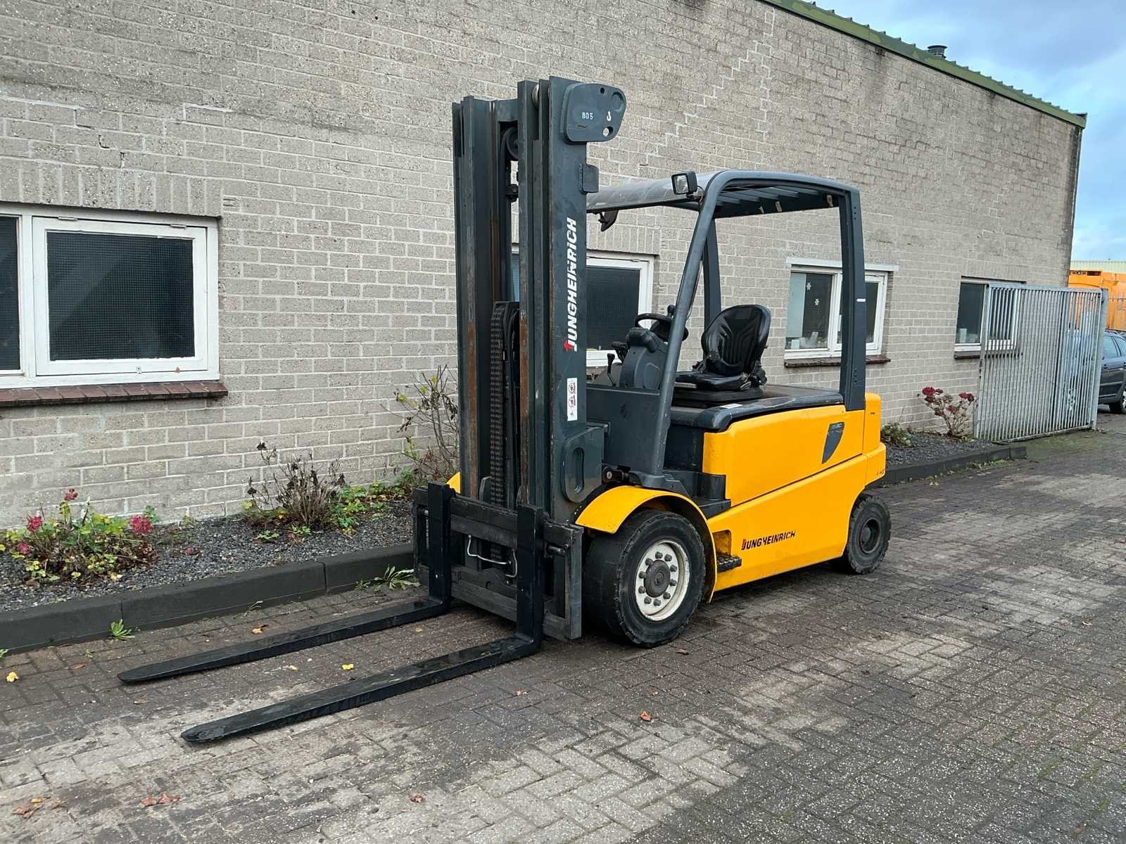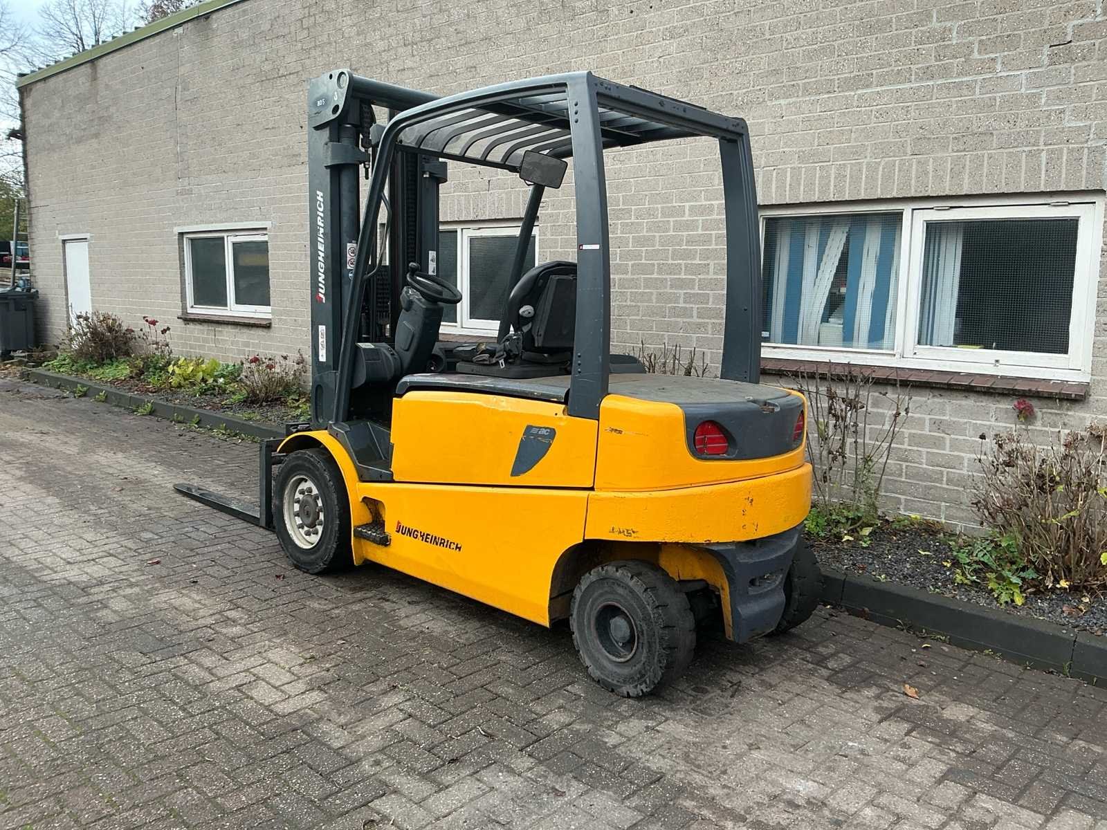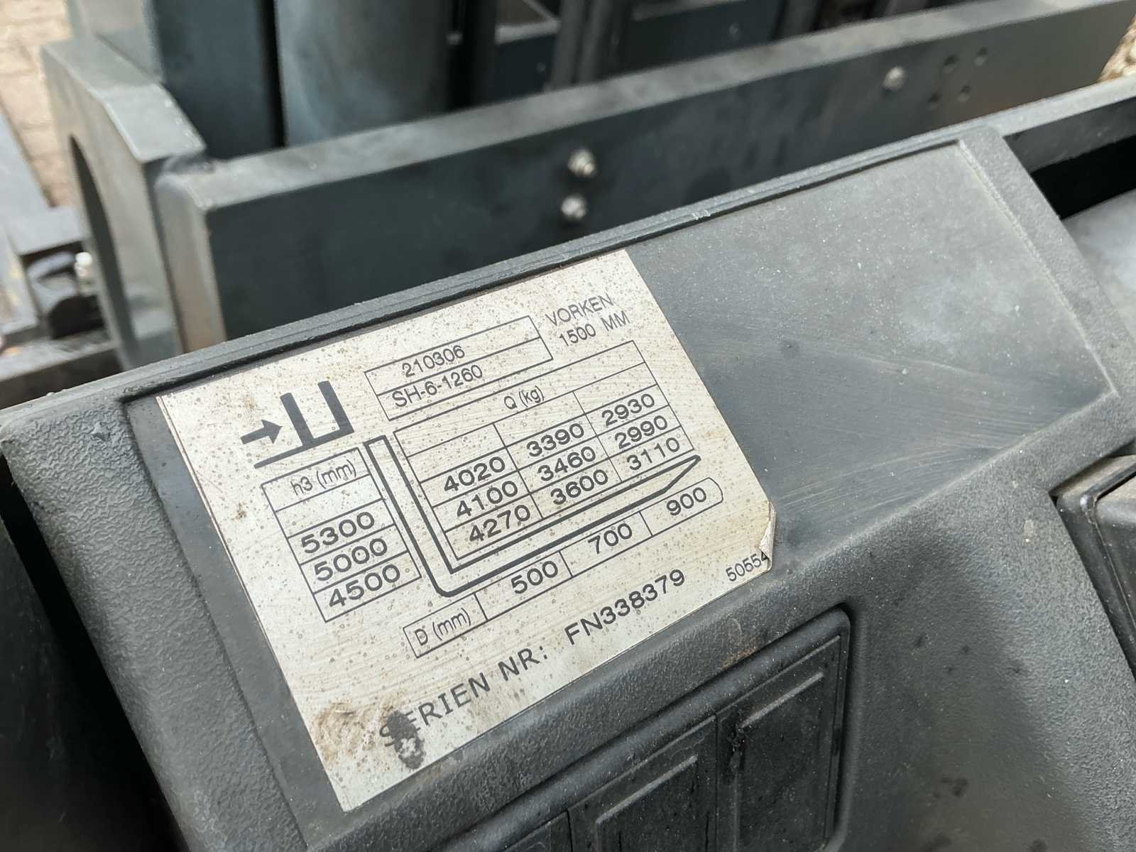 Accu is van 2018 Storing op display Nee Merk: Jung Heinrich Type: EFG545530D7 Bouwjaar: 2006 Aantal wielen: 4 Accu lader: true Free-lift: true Side-shift: true Triple mast: true Eigen gewicht: 5690kg Hefvermogen: 4500kg Lepellengte: 1500mm Max. hefhoogte: 5300mm Vol rubber banden: true Totale afmeting L: 4370mm Totale afmeting Breedte: 1150mm Totale afmeting Hoogte: 2540mm