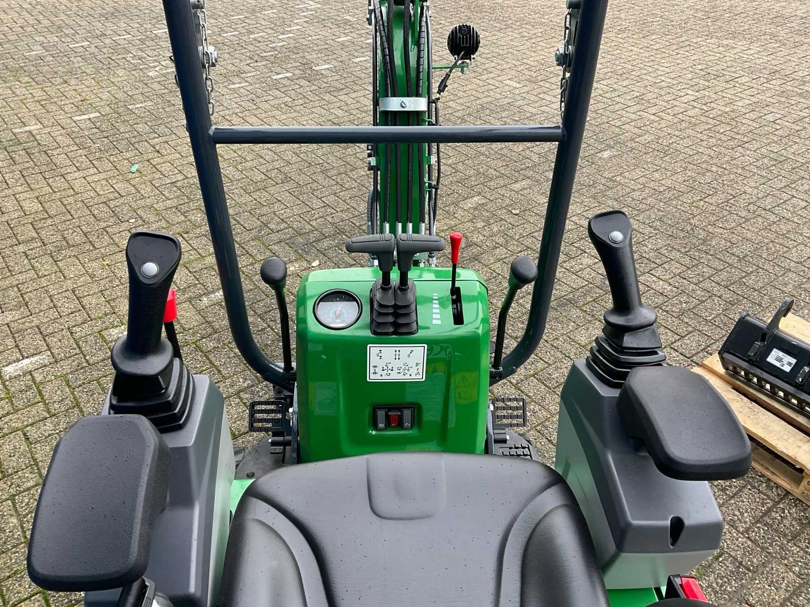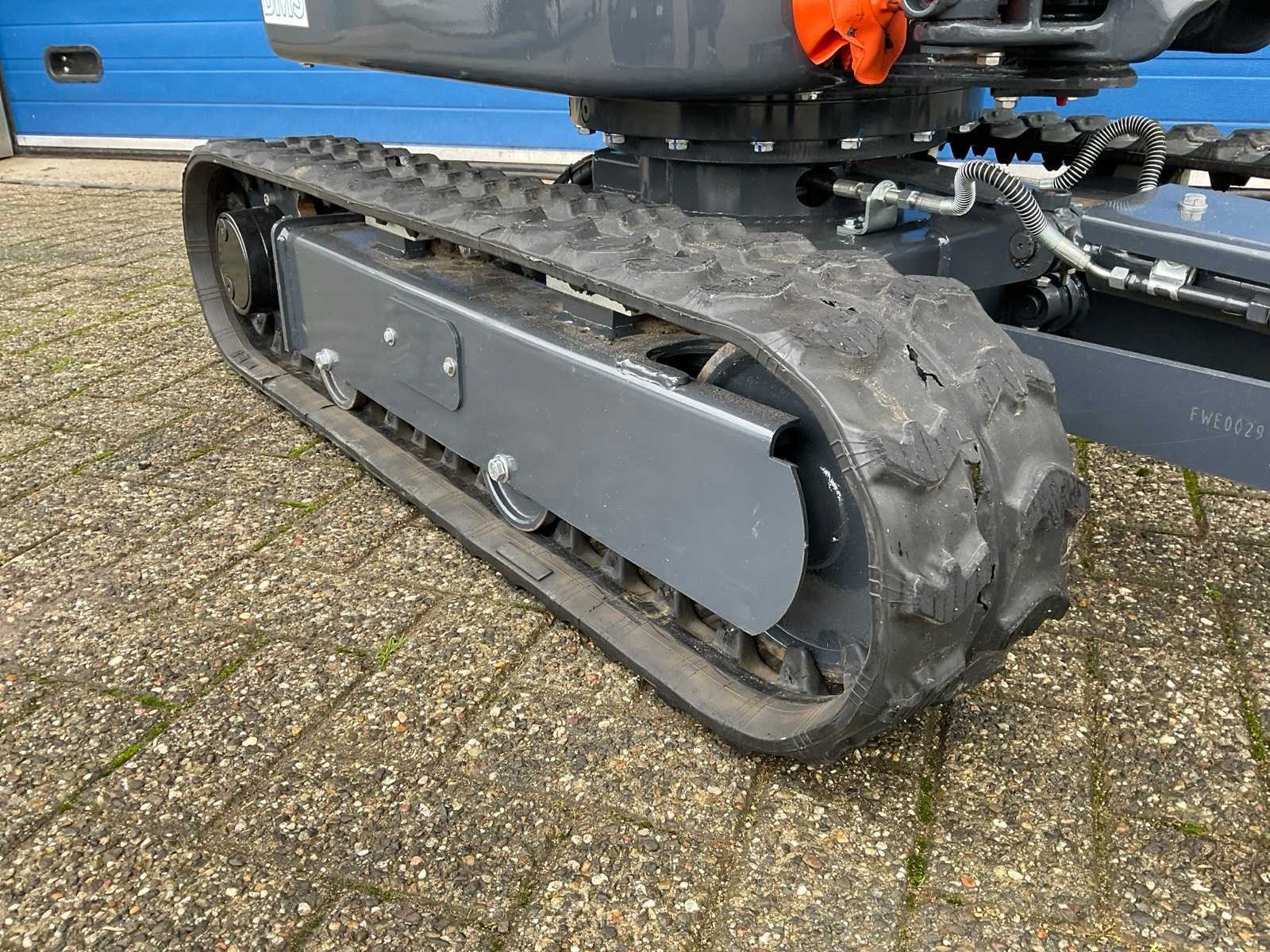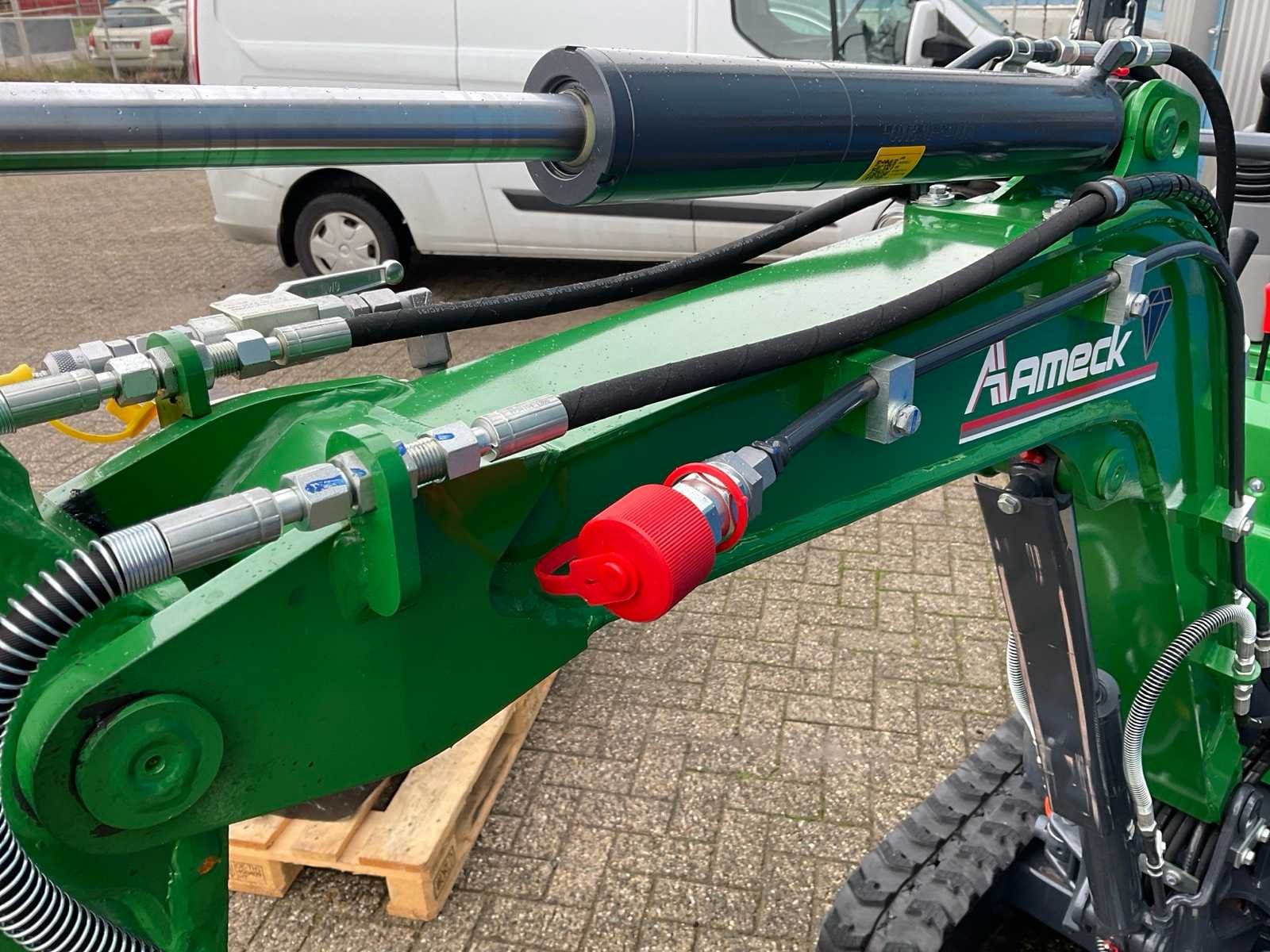 Voorzien van: 4x graafbak (80-40-23-40 puinbak), CW00 hydraulische snelwissel, 1x dubbelwerkend hydraulische aansluiting op giek, vrije retour aansluiting, verlichting, opklapbare veiligheidsbeugel, 2-delige zwenkgiek, hydraulisch in breedte verstelbare rupsen (75-90cm), 2 rijsnelheden Nee Merk: Aameck Type: F10 Bouwjaar: 2025 Serienummer: LFW008E1KS0013688 Merk motor: Yanmar Aantal cilinders: 2 Brandstof: diesel Bedrijfsgewicht: 1010kg Gieklengte: 2050mm Rups breedte: 180mm Afgelezen urenstand: 14 Totale afmeting L: 2850mm Totale afmeting Breedte: 750mm Totale afmeting Hoogte: 1700mm