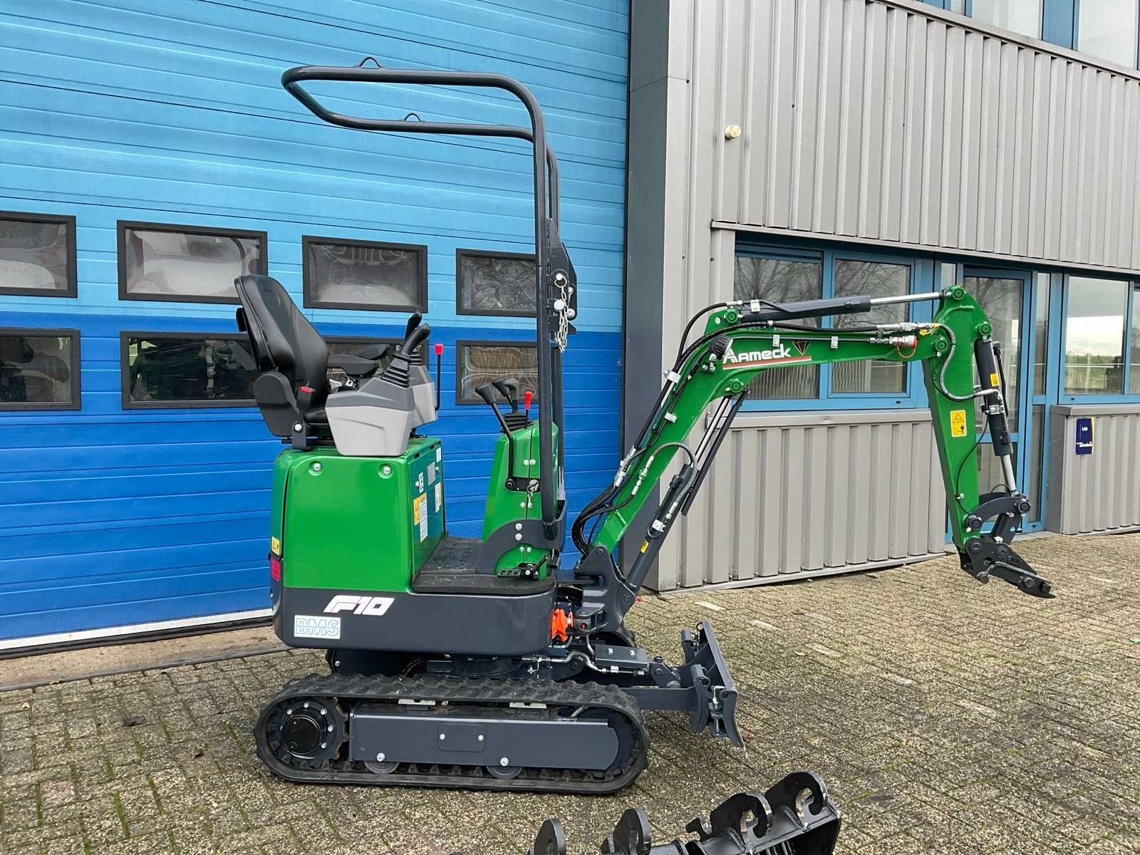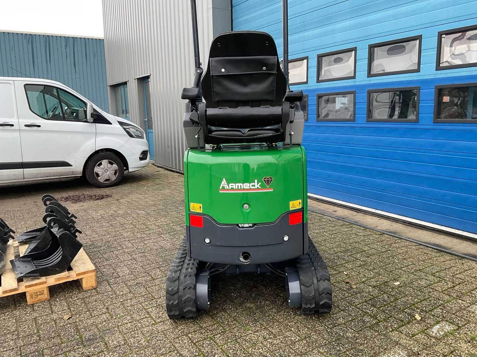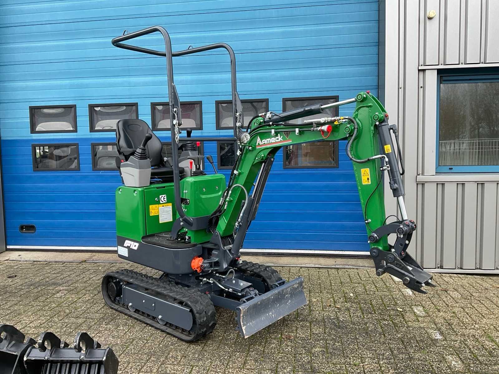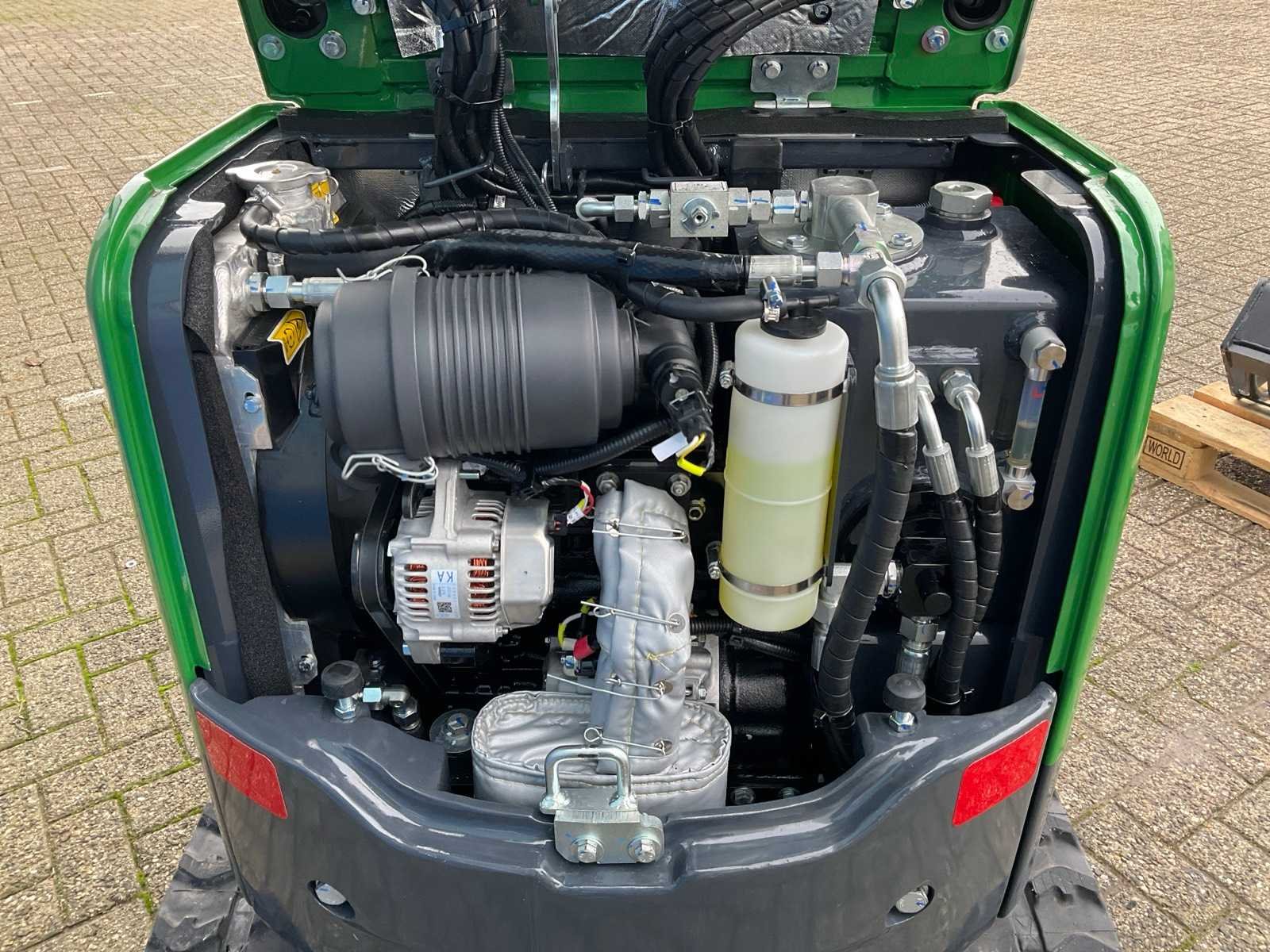 Voorzien van: 4x graafbak (80-40-23-40 puinbak), CW00 hydraulische snelwissel, 1x dubbelwerkend hydraulische aansluiting op giek, vrije retour aansluiting, verlichting, opklapbare veiligheidsbeugel, 2-delige zwenkgiek, hydraulisch in breedte verstelbare rupsen (75-90cm), 2 rijsnelheden Nee Merk: Aameck Type: F10 Bouwjaar: 2025 Serienummer: LFW008E1KS0013688 Merk motor: Yanmar Aantal cilinders: 2 Brandstof: diesel Bedrijfsgewicht: 1010kg Gieklengte: 2050mm Rups breedte: 180mm Afgelezen urenstand: 14 Totale afmeting L: 2850mm Totale afmeting Breedte: 750mm Totale afmeting Hoogte: 1700mm