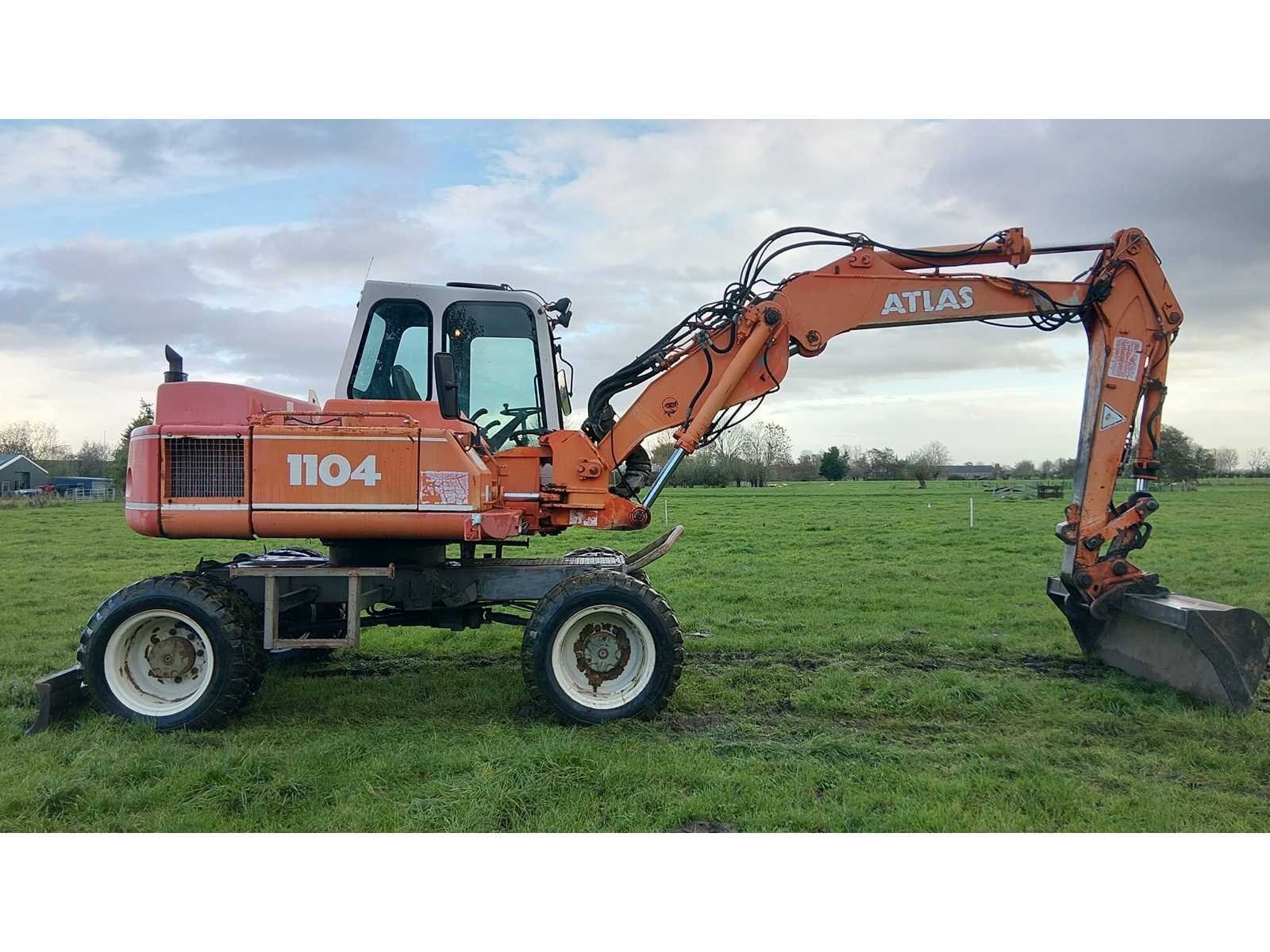 (machine remt niet, lekt olie) No Merk: Atlas Type: 1104 Bouwjaar: 1996 Serienummer: 118M43828 Motorvermogen (kW): 44kW Met graafbak: true Afgelezen urenstand: 3700