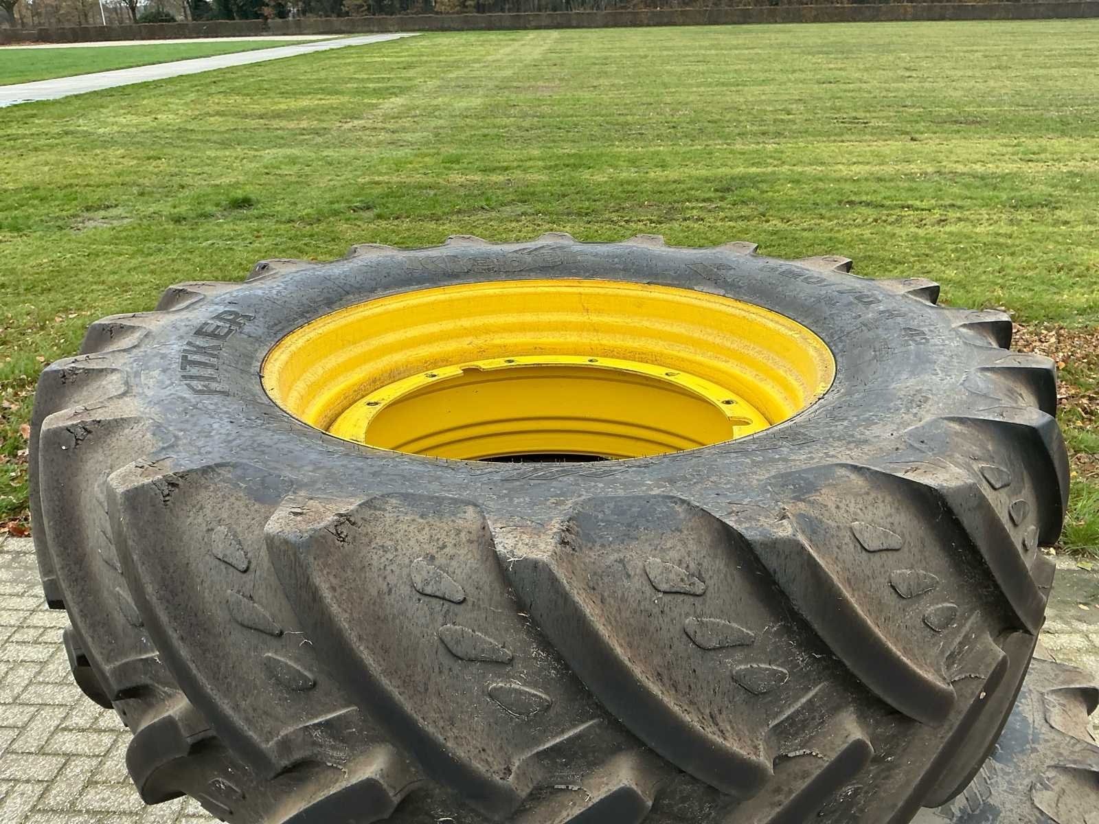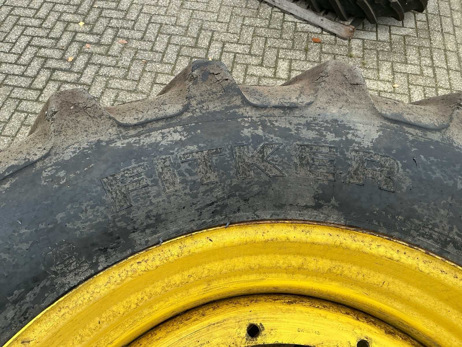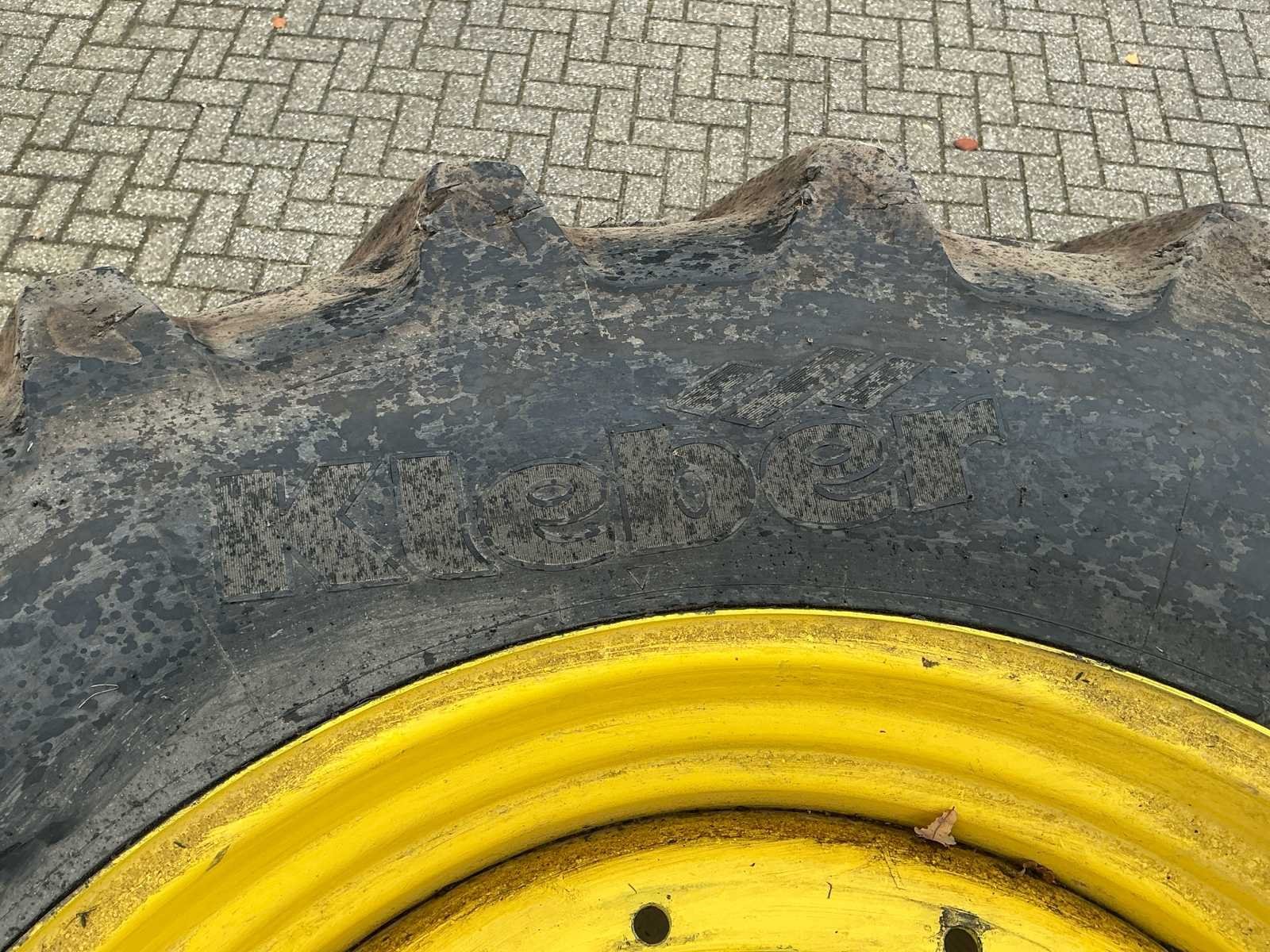 Bestaat uit: 2 stuks band en velg, velg GKN WHEELS, type RE50749, DW 18lx42, band Kleber Fitker 620/70R42. No Merk: Kleber Type: Fitker Bandenmaat: 620/70R42