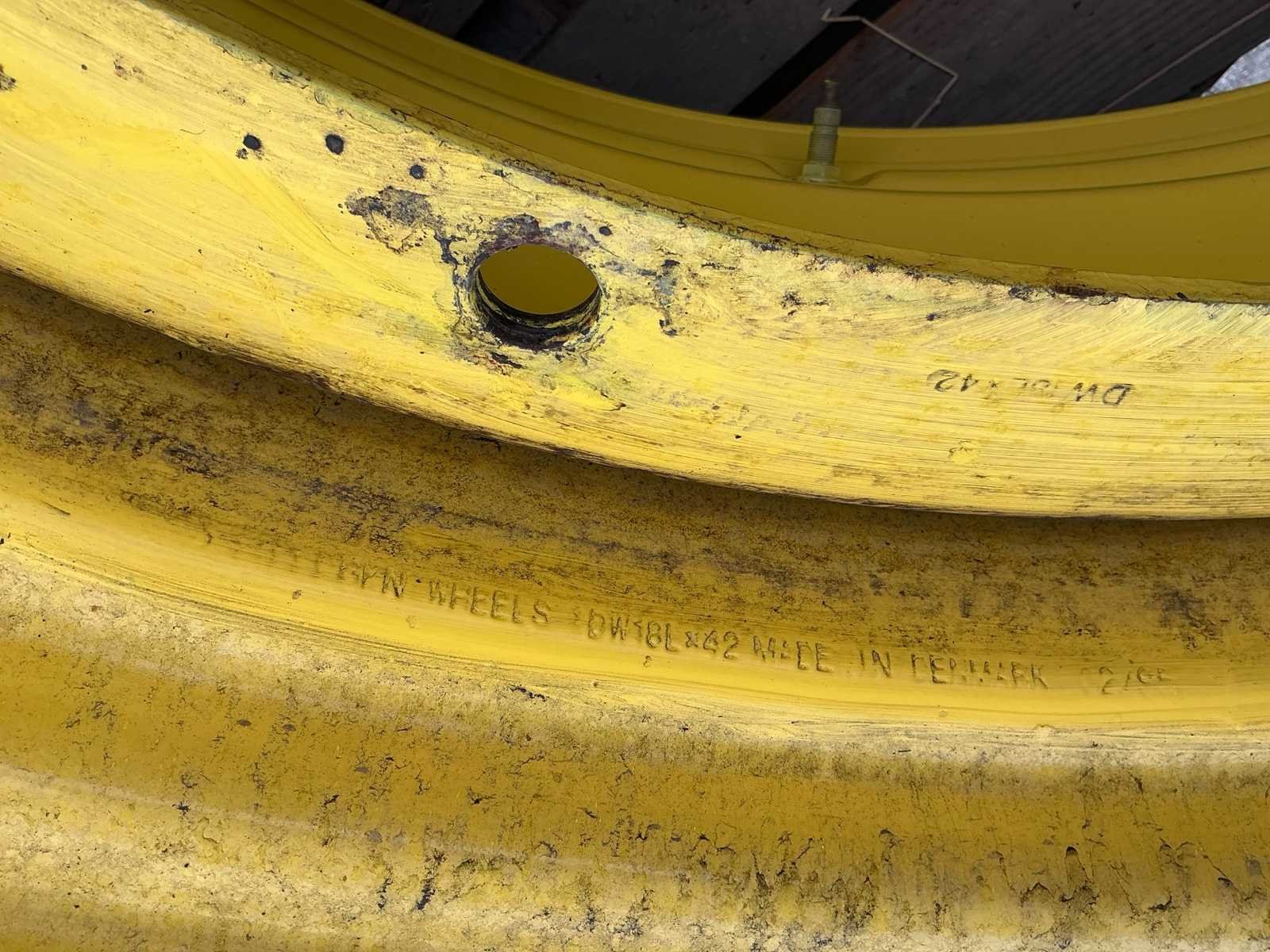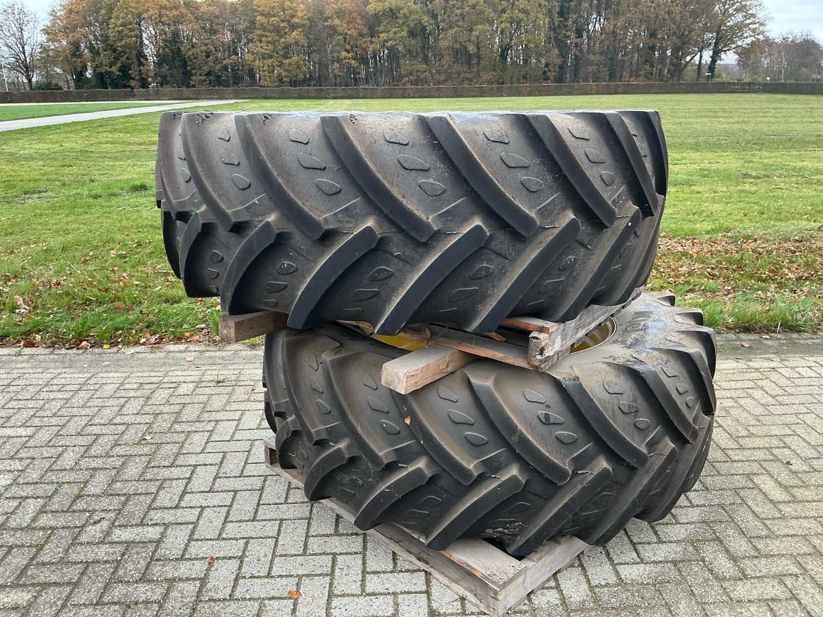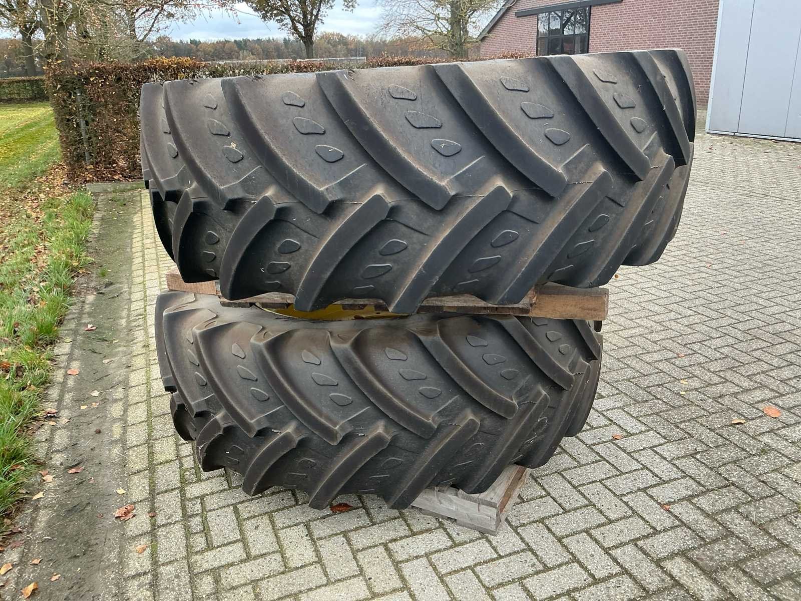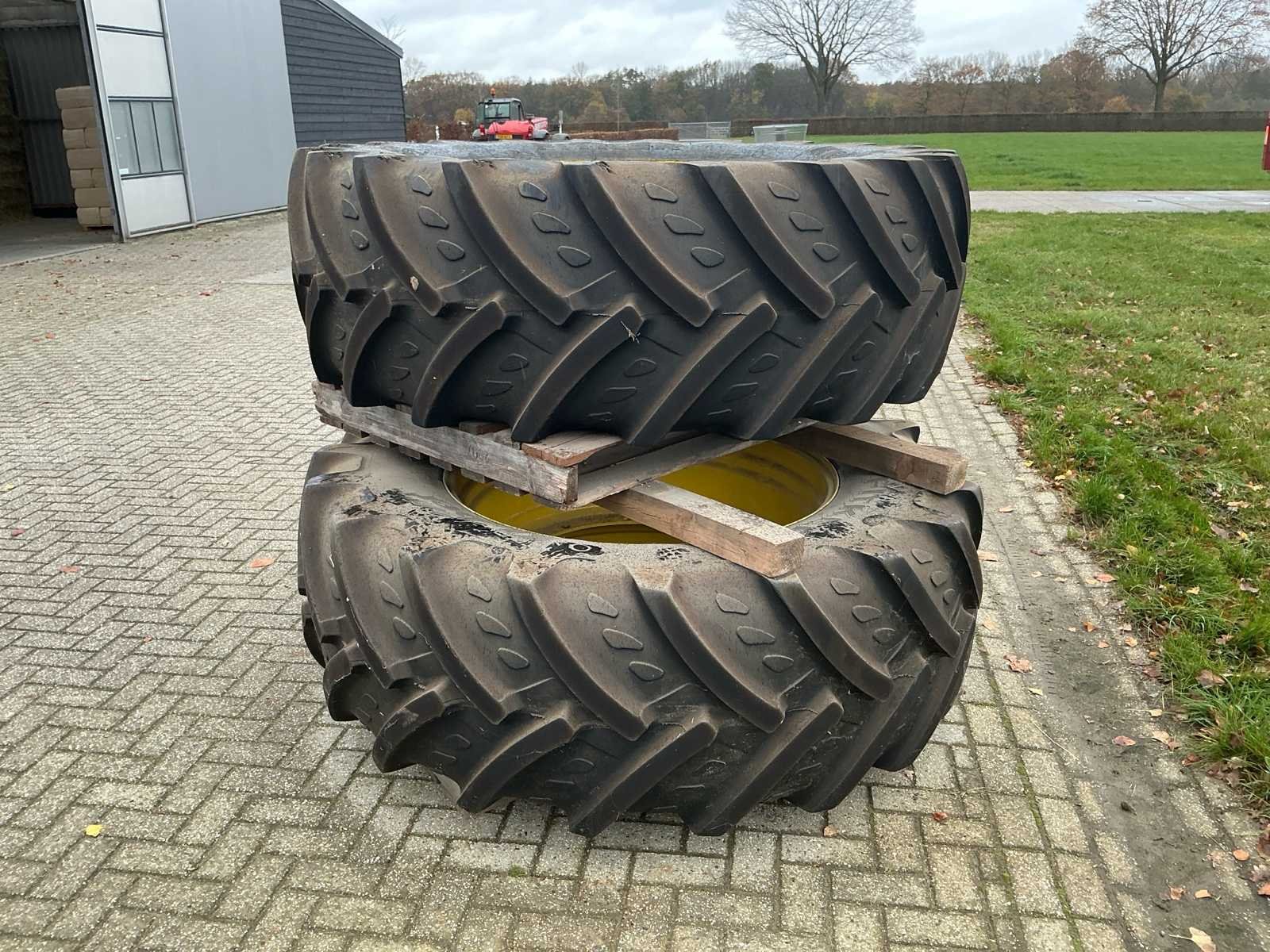 Bestaat uit: 2 stuks band en velg, velg GKN WHEELS, type RE50749, DW 18lx42, band Kleber Fitker 620/70R42. No Merk: Kleber Type: Fitker Bandenmaat: 620/70R42