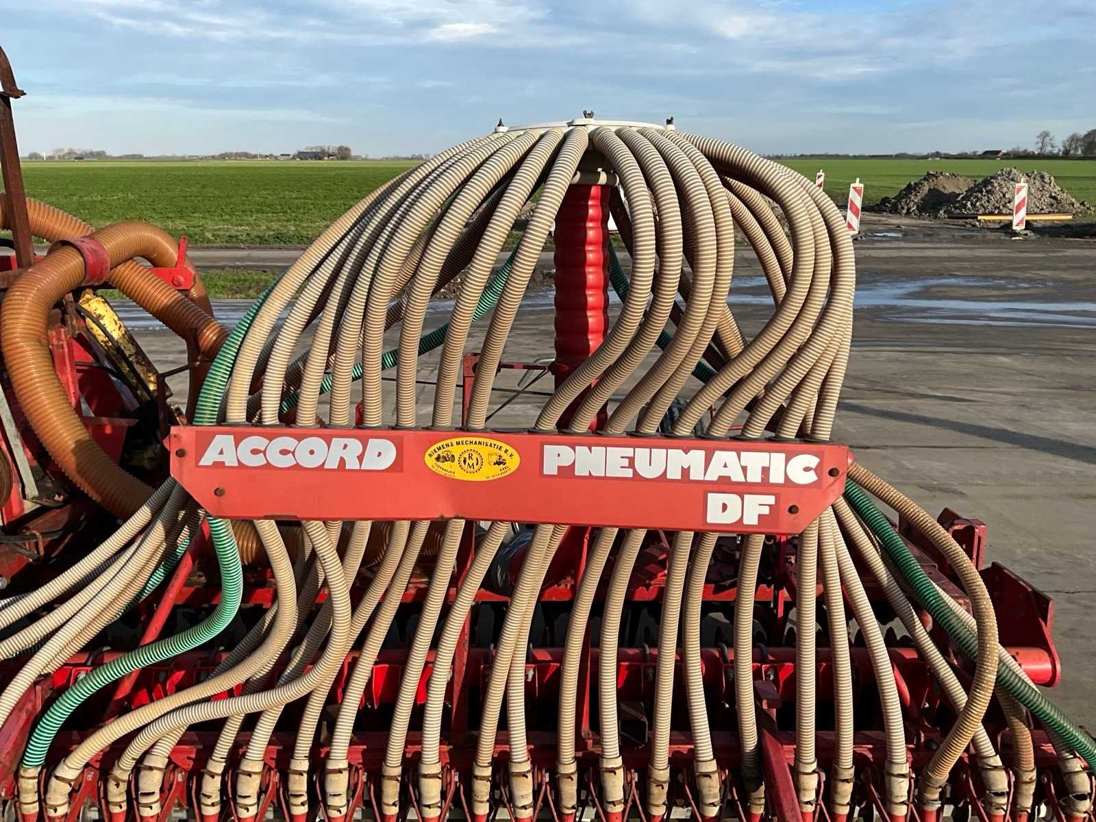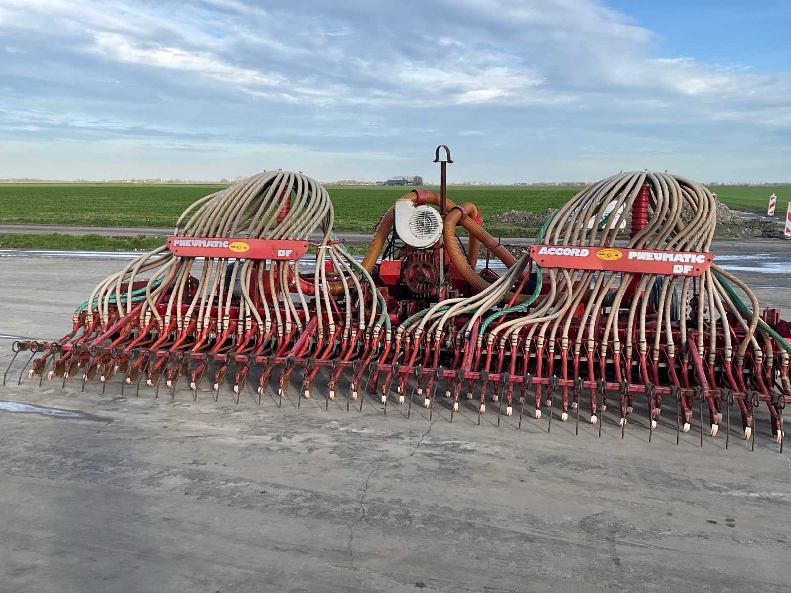 Voorzien van “Accord” zaaimachine met 64 kouters; pakkertjes met schrapper; gedragen model; hydraulisch opklapbaar; verstelbaar wielstel; egalisatie balk; diepte hydraulisch verstelbaar; na egg; Nee Merk: Lely Type: 6000 Werkbreedte: 6000mm Opklapbaar: true