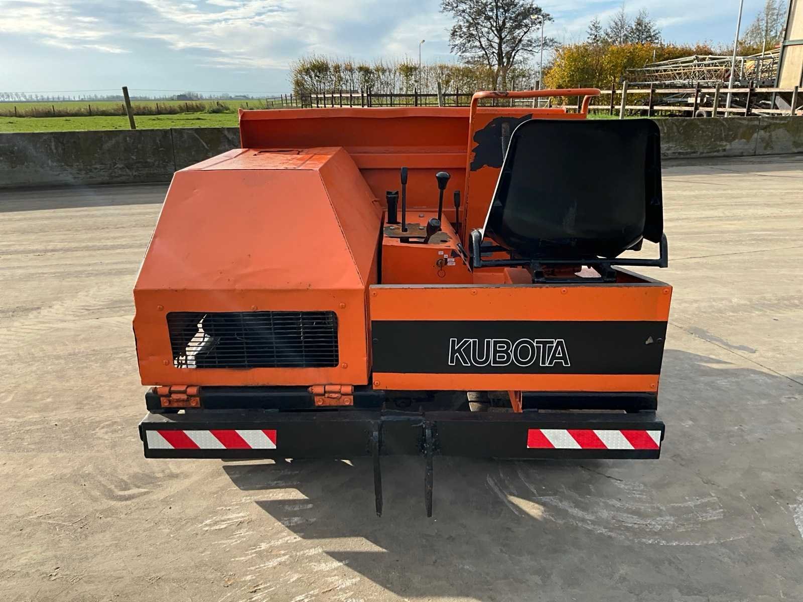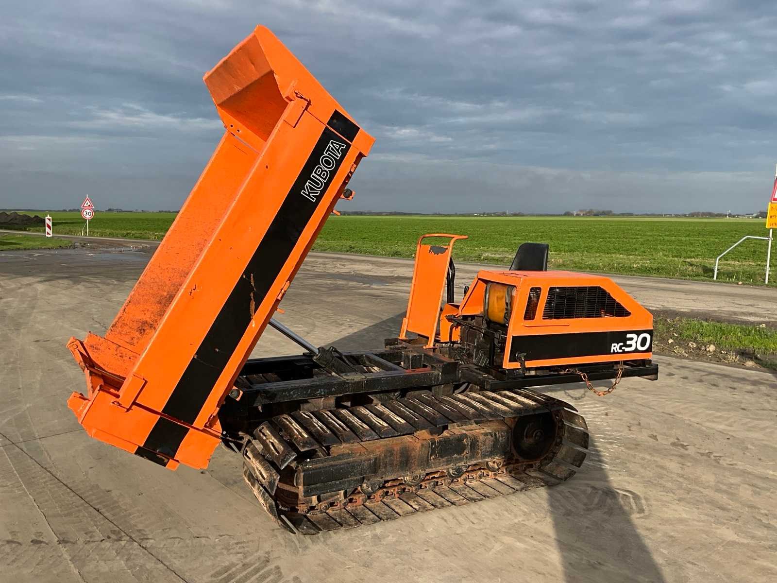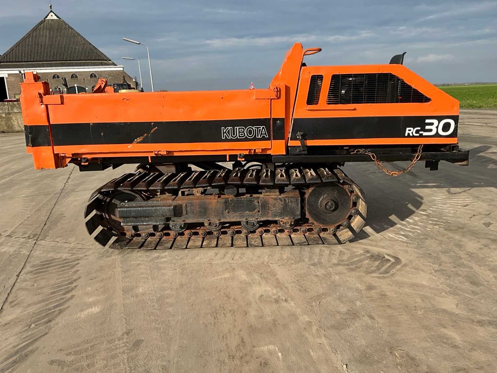 Voorzien van 2-Cil. “Kubota” Dieselmotor; elektrische start; hydraulische kiepbak; zijschotten; rupsonderstel; stalenrupsen 50 cm breed; let op, brandstoftank lek! Nee Merk: Kubota Type: RC-30 Merk motor: Kubota Aantal cilinders: 2 Brandstof: Diesel Afgelezen urenstand: 1469 Totale afmeting L: 3100mm Totale afmeting Breedte: 1700mm Totale afmeting Hoogte: 1400mm