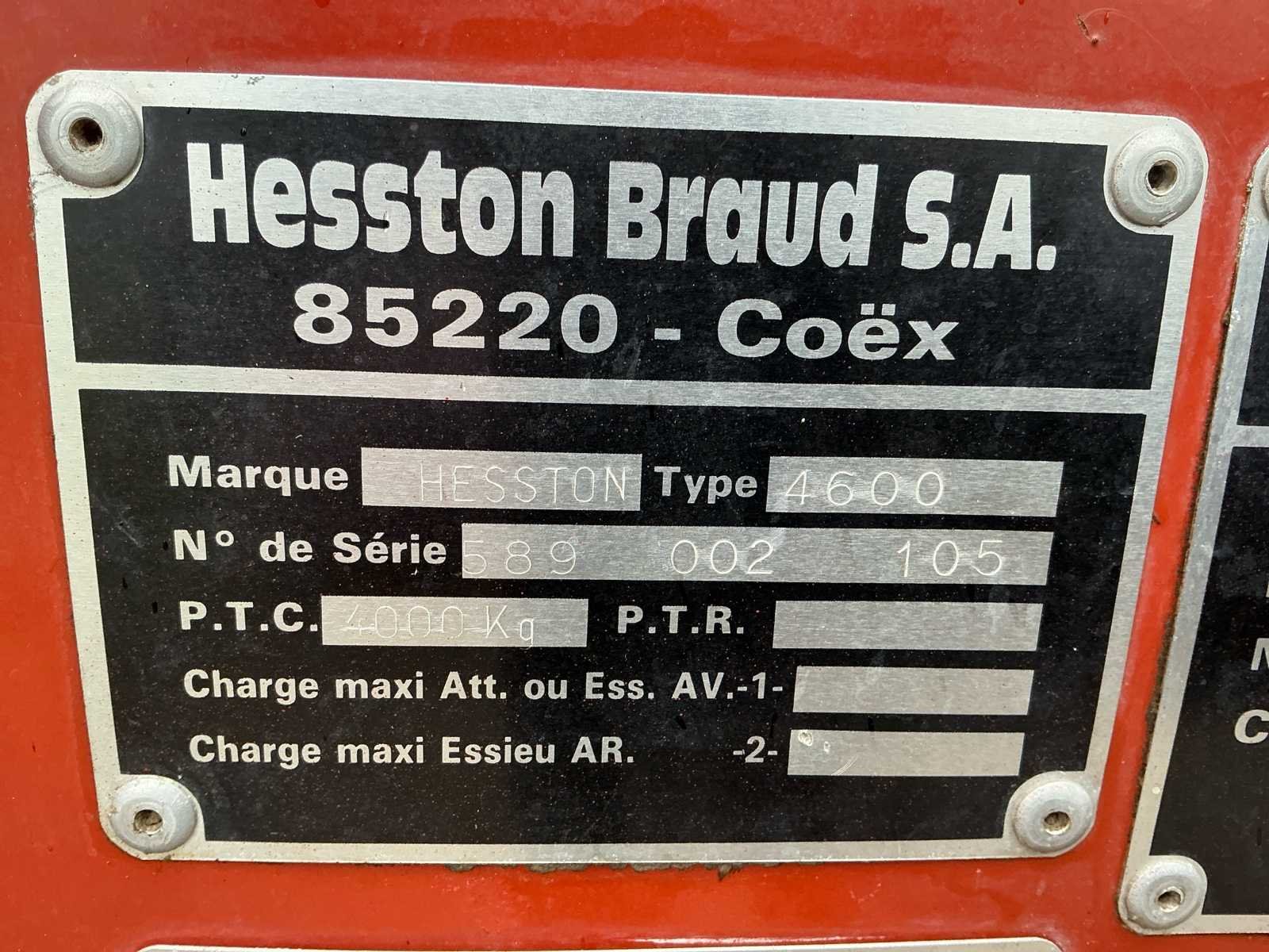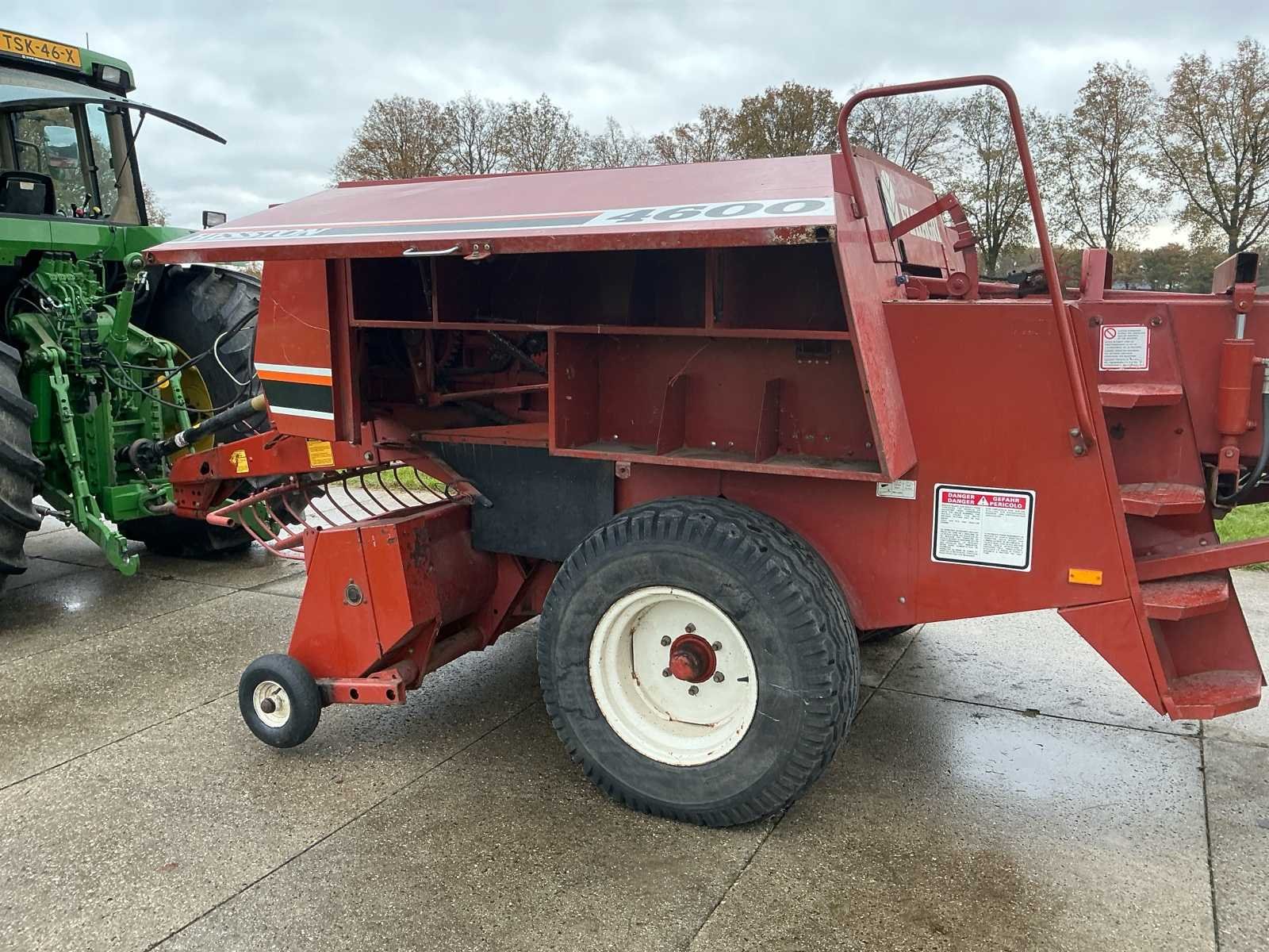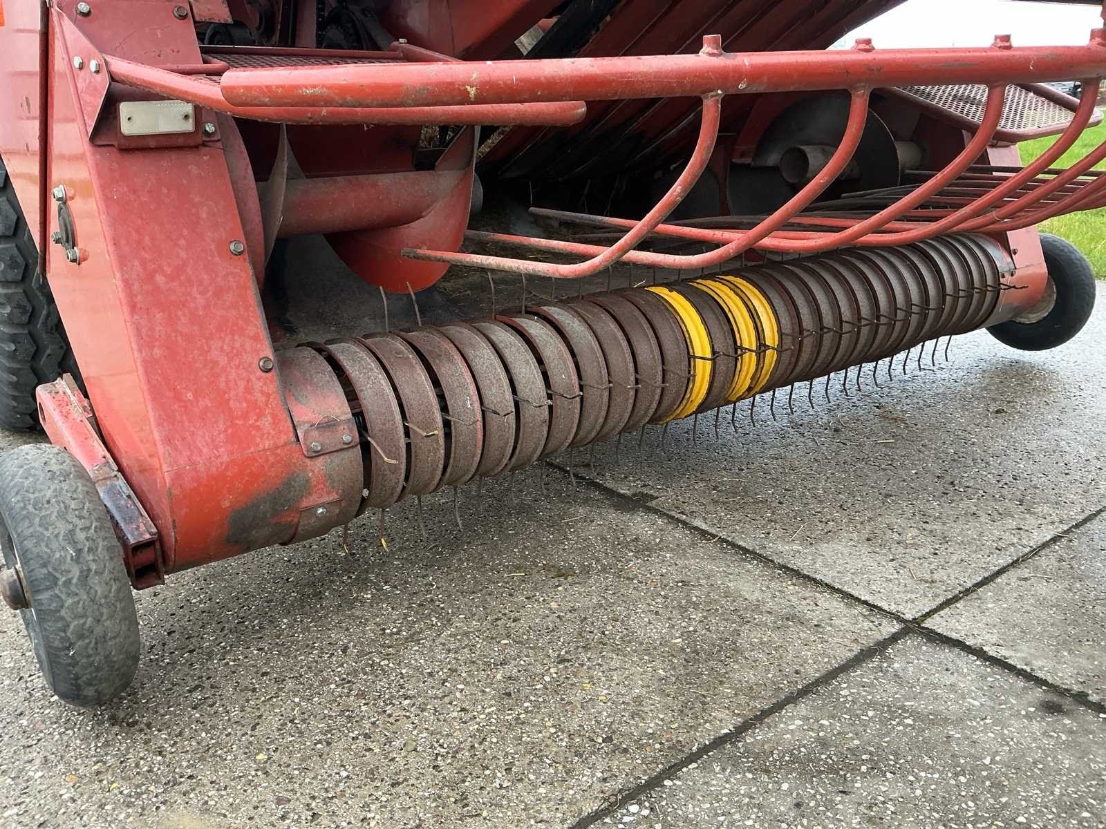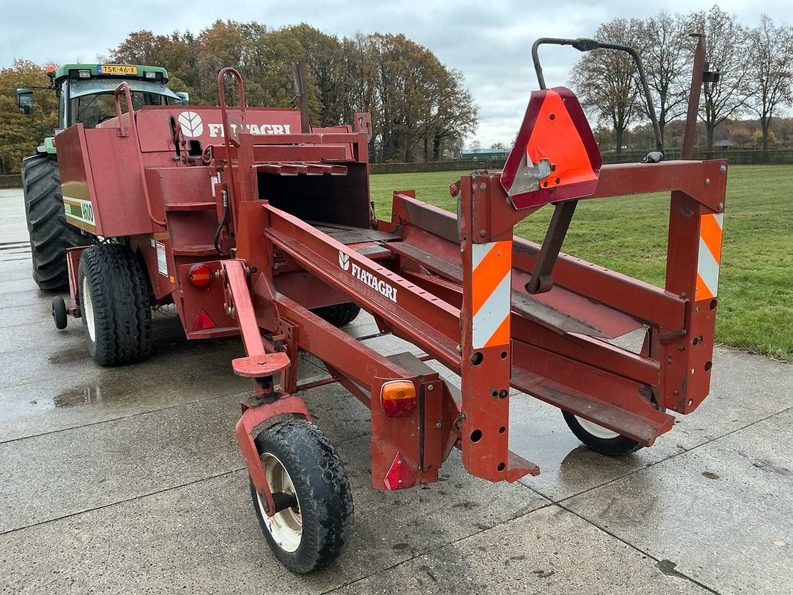Voorzien van: touwbinding, aftakasvereiste: 540 tpm, vereist één set externe hydrauliek, opraapbalenpers met middeninvoer en in-line ontwerp, Hesston 4600, afmetingen (veldpositie), breedte 2520 mm, lengte 6060mm, hoogte 1720 mm, bodemvrijheid 105 mm, banden 9,5L-14, 6-laags tubeless, opraapmeter 3,00 x 12, nokkenasgestuurde trommelopraper, hoogteverstelling met handkruk, breedte 1960mm, aantal tandbalken 4, aantal tanden 112, tandafstand 66 mm, snelheid 113 tpm, type pakker- en vulvingers, vijzeldiameter 457 mm, vijzelsnelheid 113 tpm, pakkervingersnelheid 101 tpm, vulvingersnelheid 92 tpm, slagen per minuut 92, slaglengte 584 mm, perskamer breedte 457 mm, hoogte 356 mm, bereik van baallengtes 305 mm tot 1320 mm, balendichtheidsregeling persrails (primair), hooiwiggen (secundair), verlichting, aftakas, aantal riemaandrijvingen 1, aantal kettingaandrijvingen 3,aantal tandwielaandrijvingen, aantal kruiskoppelingen 3, slipkoppeling beveiliging aftakas, breekbout beveiliging vliegwiel, slipkoppeling beveiliging pick-upaandrijving, breekboutbeveiliging pakker, vulmachine, pick-upaandrijving, breekbout knoperaandrijving. No Merk: Fiatagri Type: 4600 Bouwjaar: 1990 Serienummer: 589002105 Totale afmeting L: 6100mm Totale afmeting Breedte: 2500mm Totale afmeting Hoogte: 1720mm