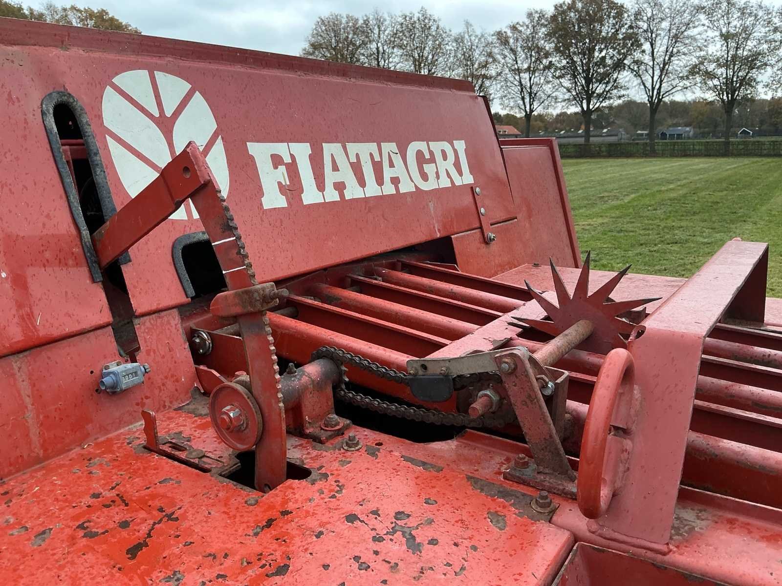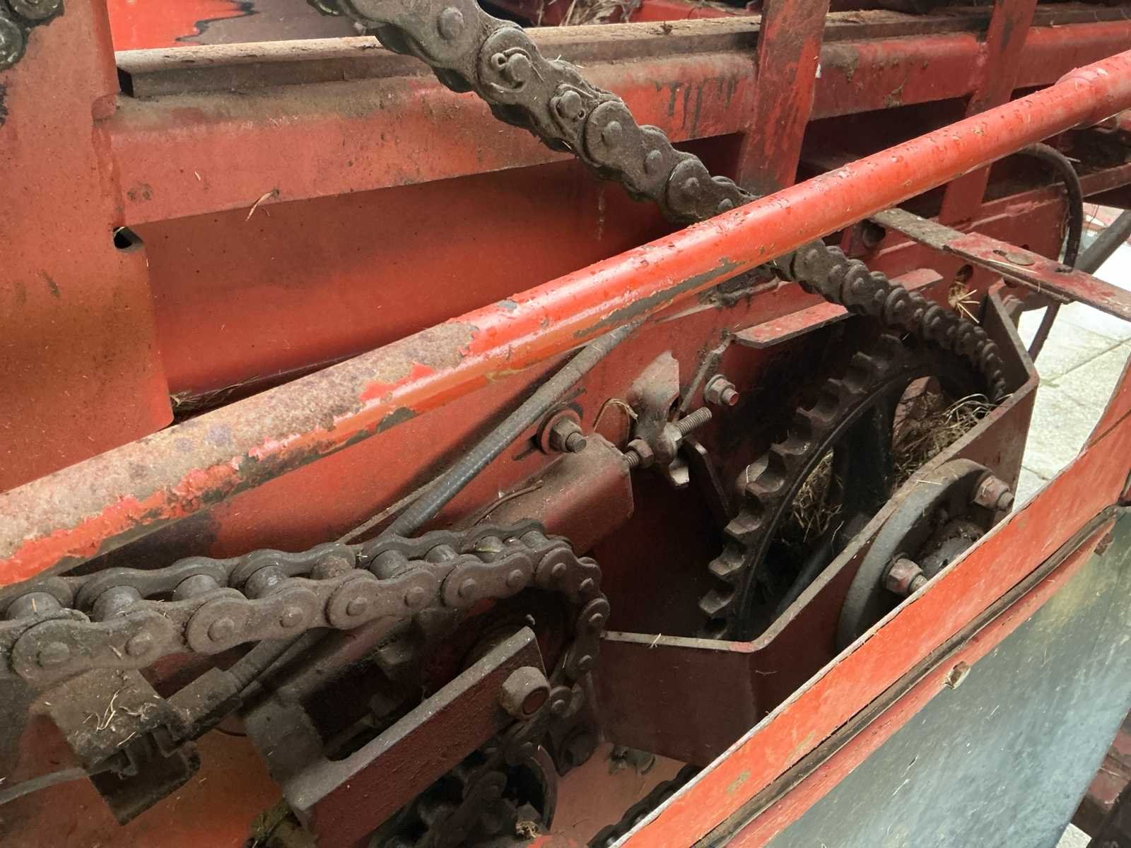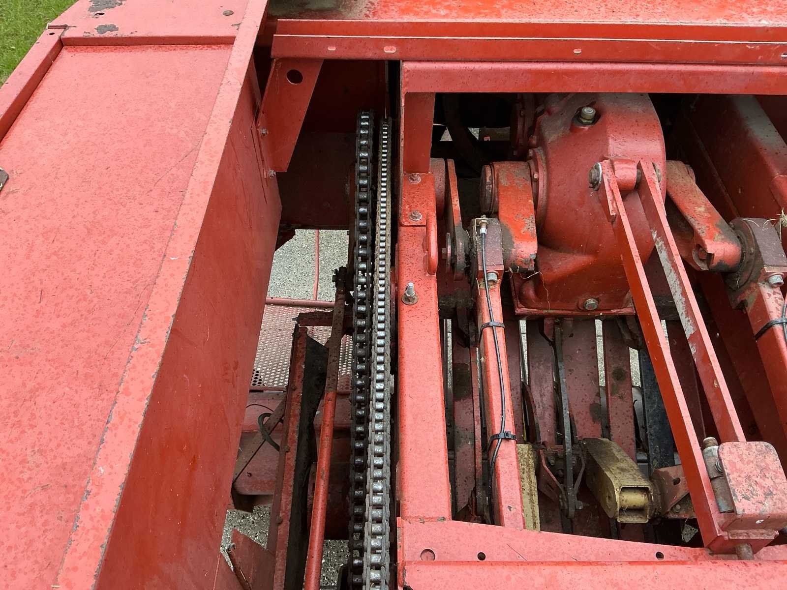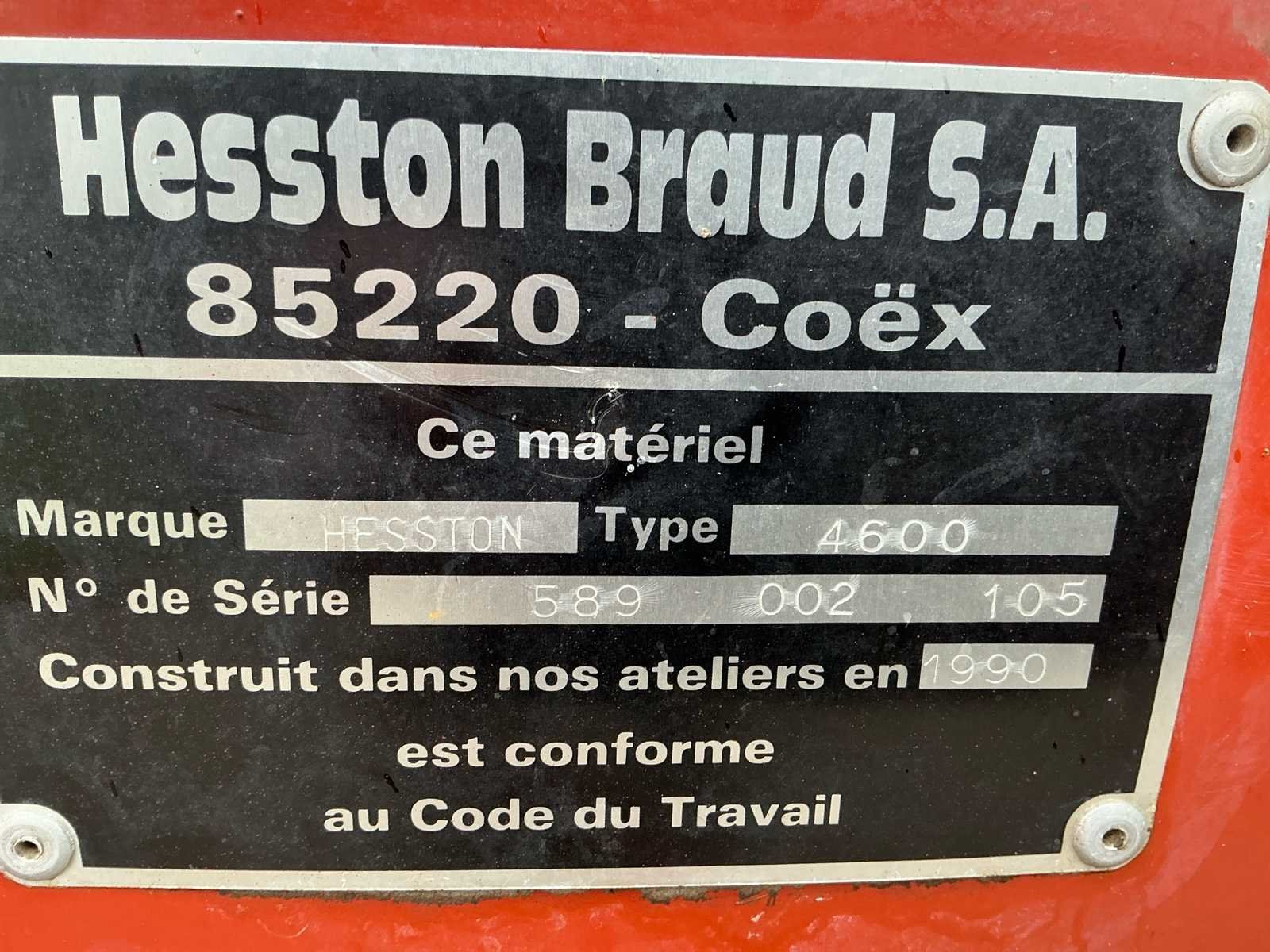 Voorzien van: touwbinding, aftakasvereiste: 540 tpm, vereist één set externe hydrauliek, opraapbalenpers met middeninvoer en in-line ontwerp, Hesston 4600, afmetingen (veldpositie), breedte 2520 mm, lengte 6060mm, hoogte 1720 mm, bodemvrijheid 105 mm, banden 9,5L-14, 6-laags tubeless, opraapmeter 3,00 x 12, nokkenasgestuurde trommelopraper, hoogteverstelling met handkruk, breedte 1960mm, aantal tandbalken 4, aantal tanden 112, tandafstand 66 mm, snelheid 113 tpm, type pakker- en vulvingers, vijzeldiameter 457 mm, vijzelsnelheid 113 tpm, pakkervingersnelheid 101 tpm, vulvingersnelheid 92 tpm, slagen per minuut 92, slaglengte 584 mm, perskamer breedte 457 mm, hoogte 356 mm, bereik van baallengtes 305 mm tot 1320 mm, balendichtheidsregeling persrails (primair), hooiwiggen (secundair), verlichting, aftakas, aantal riemaandrijvingen 1, aantal kettingaandrijvingen 3,aantal tandwielaandrijvingen, aantal kruiskoppelingen 3, slipkoppeling beveiliging aftakas, breekbout beveiliging vliegwiel, slipkoppeling beveiliging pick-upaandrijving, breekboutbeveiliging pakker, vulmachine, pick-upaandrijving, breekbout knoperaandrijving. No Merk: Fiatagri Type: 4600 Bouwjaar: 1990 Serienummer: 589002105 Totale afmeting L: 6100mm Totale afmeting Breedte: 2500mm Totale afmeting Hoogte: 1720mm