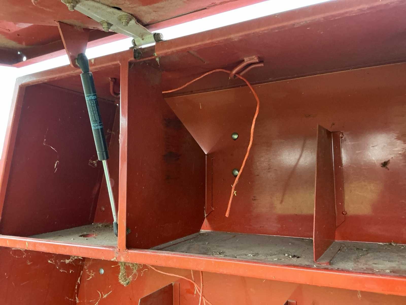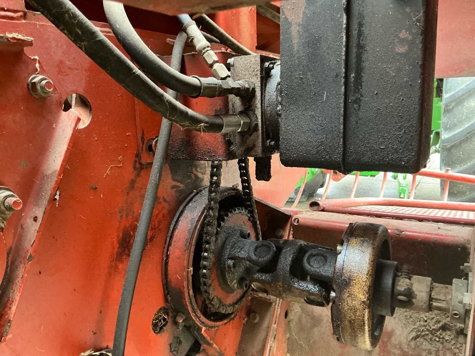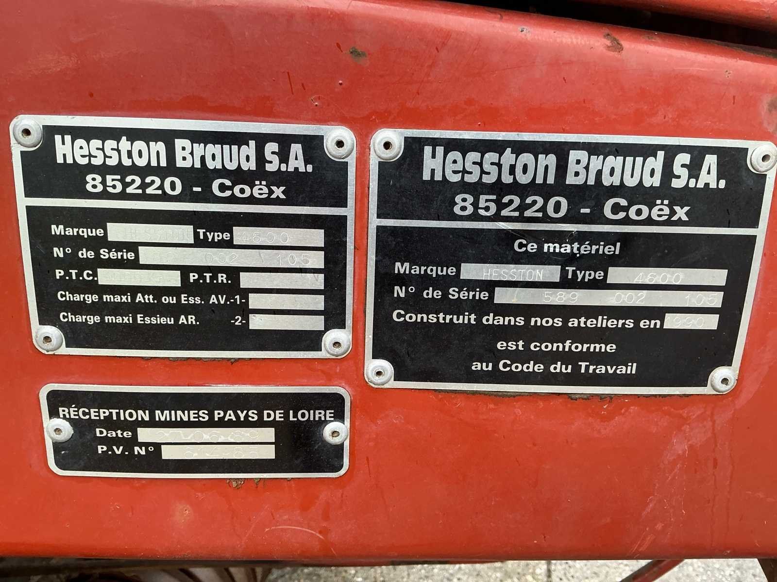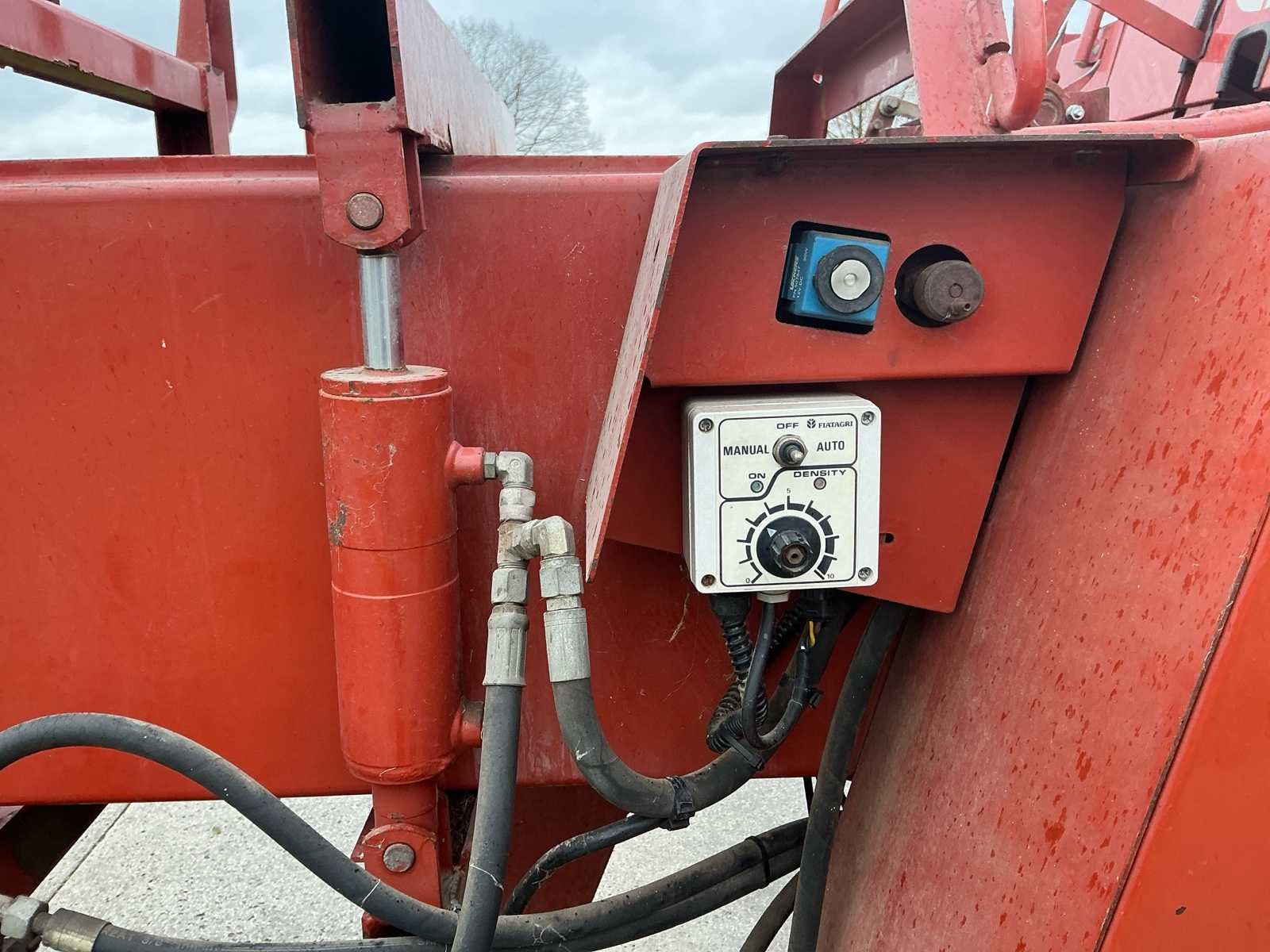Voorzien van: touwbinding, aftakasvereiste: 540 tpm, vereist één set externe hydrauliek, opraapbalenpers met middeninvoer en in-line ontwerp, Hesston 4600, afmetingen (veldpositie), breedte 2520 mm, lengte 6060mm, hoogte 1720 mm, bodemvrijheid 105 mm, banden 9,5L-14, 6-laags tubeless, opraapmeter 3,00 x 12, nokkenasgestuurde trommelopraper, hoogteverstelling met handkruk, breedte 1960mm, aantal tandbalken 4, aantal tanden 112, tandafstand 66 mm, snelheid 113 tpm, type pakker- en vulvingers, vijzeldiameter 457 mm, vijzelsnelheid 113 tpm, pakkervingersnelheid 101 tpm, vulvingersnelheid 92 tpm, slagen per minuut 92, slaglengte 584 mm, perskamer breedte 457 mm, hoogte 356 mm, bereik van baallengtes 305 mm tot 1320 mm, balendichtheidsregeling persrails (primair), hooiwiggen (secundair), verlichting, aftakas, aantal riemaandrijvingen 1, aantal kettingaandrijvingen 3,aantal tandwielaandrijvingen, aantal kruiskoppelingen 3, slipkoppeling beveiliging aftakas, breekbout beveiliging vliegwiel, slipkoppeling beveiliging pick-upaandrijving, breekboutbeveiliging pakker, vulmachine, pick-upaandrijving, breekbout knoperaandrijving. No Merk: Fiatagri Type: 4600 Bouwjaar: 1990 Serienummer: 589002105 Totale afmeting L: 6100mm Totale afmeting Breedte: 2500mm Totale afmeting Hoogte: 1720mm