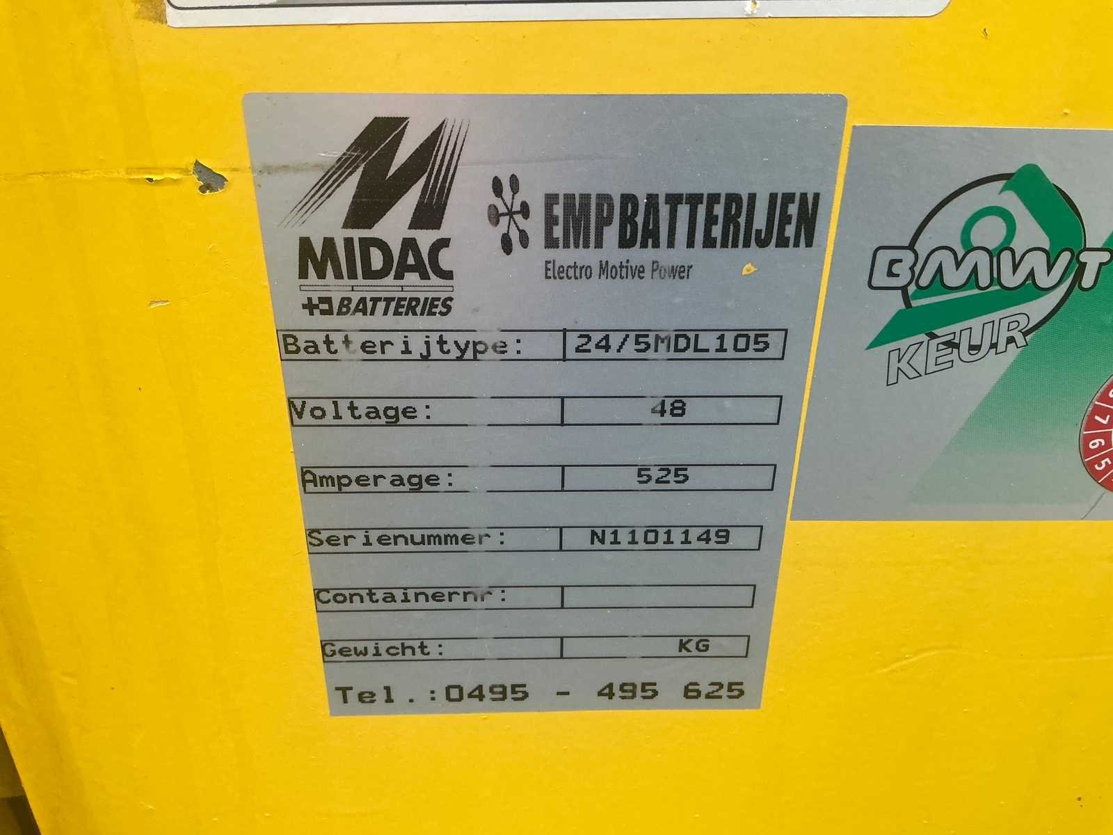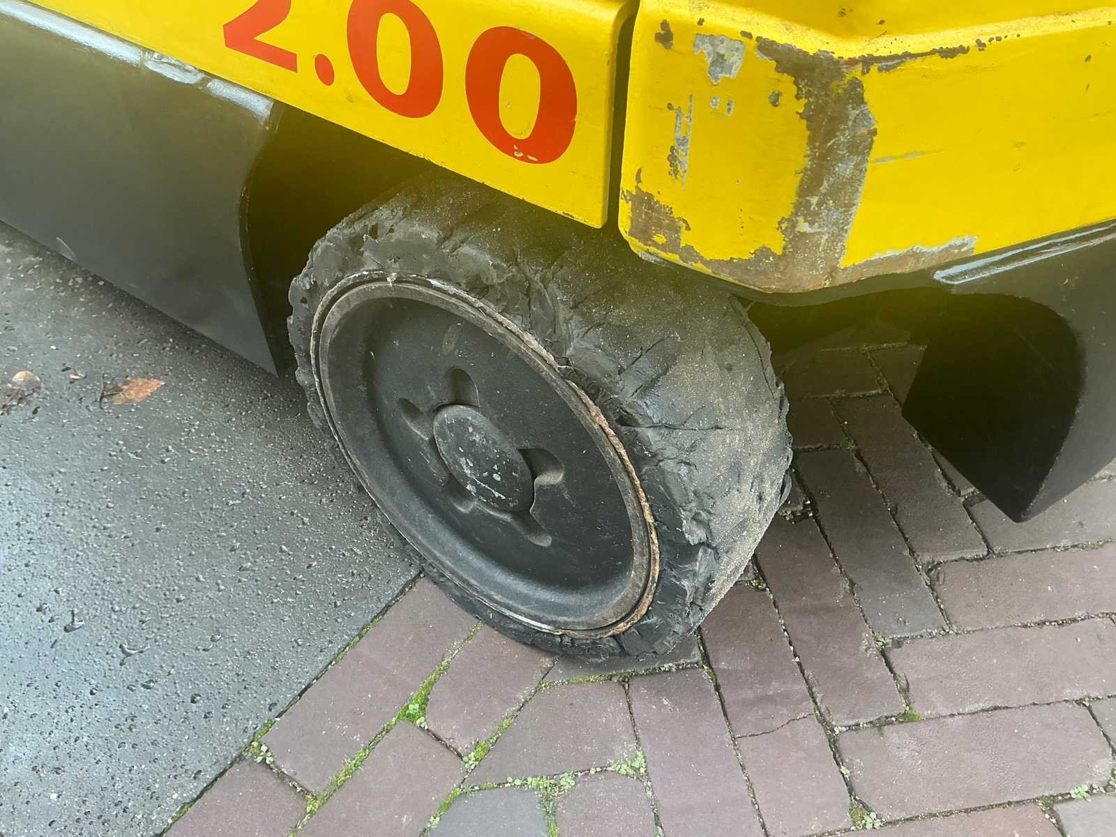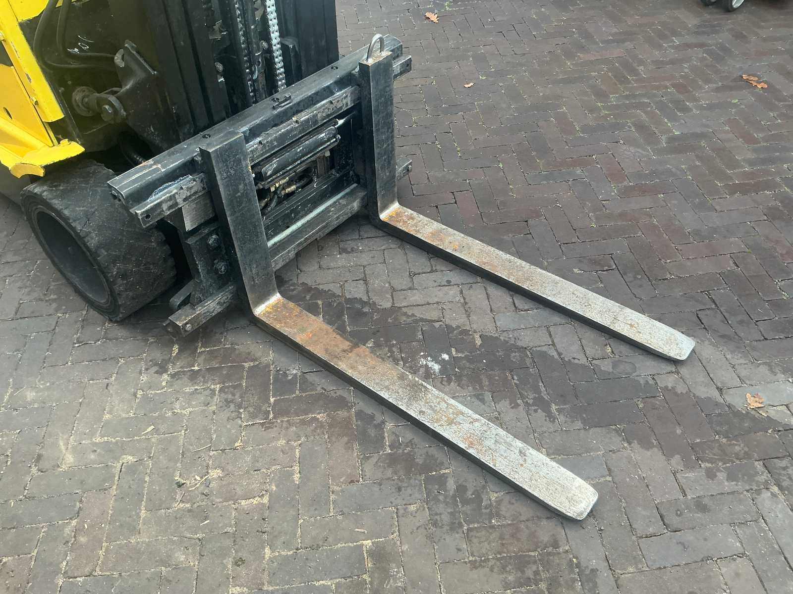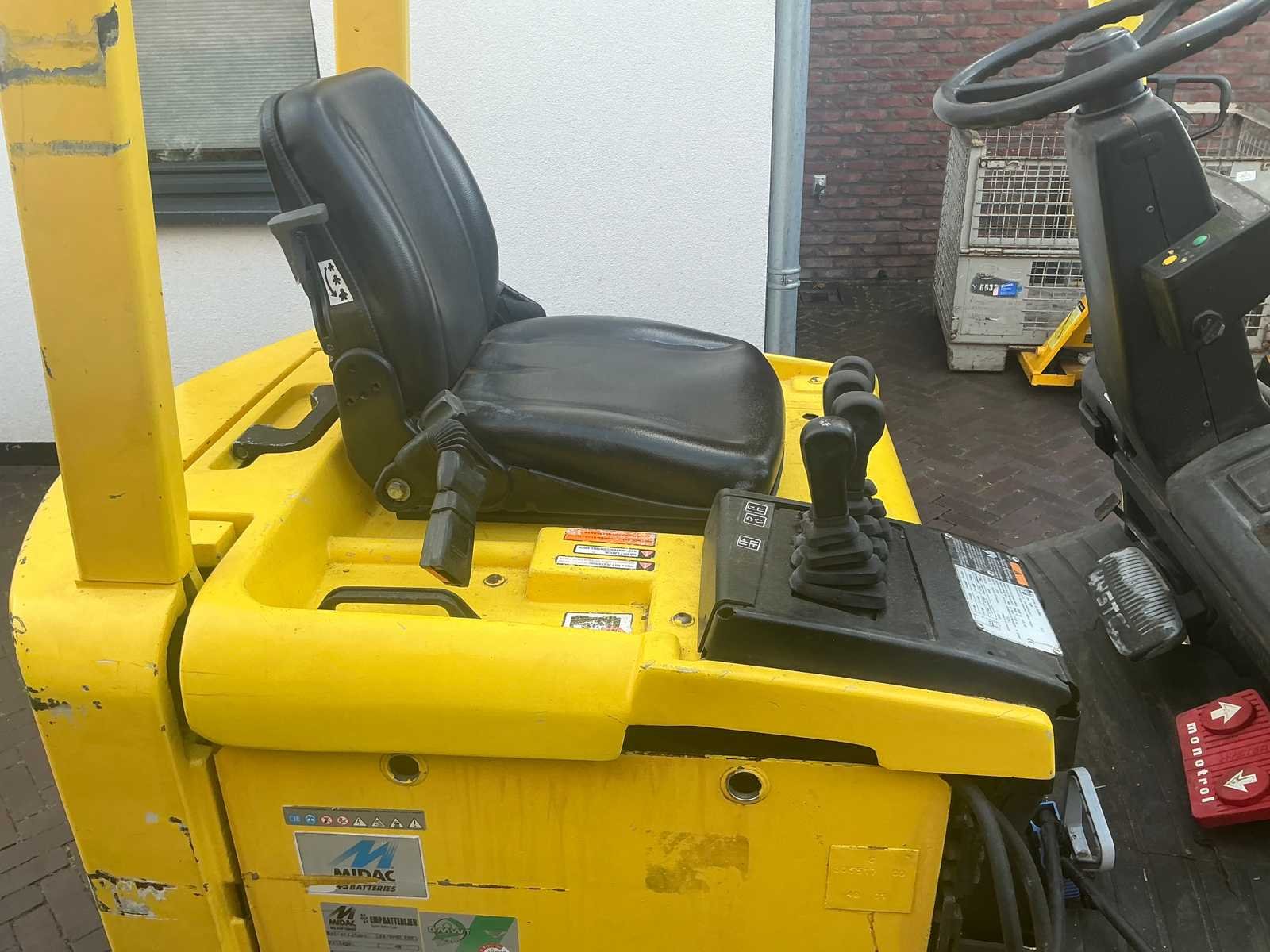 Met lader, kettingen en slangen reeds vervangen. Nee Merk: Hyster Type: E2.00XMS Bouwjaar: 1996 Serienummer: D114A01550T Brandstof: Elektrisch Mast: Triple Soort band: Volrubber banden Aantal wielen: 4 Afgelezen urenstand: 3049 Accu lader: true Side-shift: true Triple mast: true Eigen gewicht: 3960kg Hefvermogen: 2000kg Lepellengte: 1000mm Max. hefhoogte: 4800mm Vol rubber banden: true Totale afmeting L: 2100mm Totale afmeting Breedte: 1100mm Totale afmeting Hoogte: 2050mm