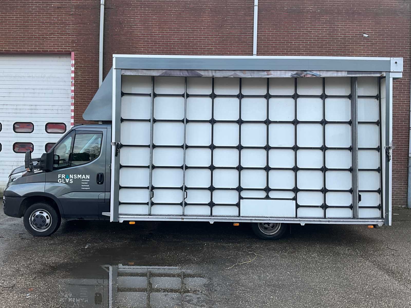 Glasvrachtwagen met werkplaatsinrichting en glasrestelen (elektrisch afsluitbaar) 185996km Bouwjaar: 2016, Bezichtiging enkel op afspraak, mail naar Luuk@handelspracht.nl voor meer informatie. Nee Kenteken: 34-bhd-8 Merk: Iveco Bouwjaar: 2016 Cilinderinhoud: 2998cc Kilometerstand bij opname: 185996km APK vervaldatum: 2025-12-27 Datum eerste toelating: 2016-04-11 Datum eerste toelating (NL): 2016-04-11 Aantal assen: 2 Emissieklasse: 5 Eigen gewicht: 3620kg Totale afmeting L: 7650mm Totale afmeting Breedte: 2550mm Nationaliteit documenten: Nederlands Kentekenpapieren compleet?: true Aantal zitplaatsen: 3 Handgeschakelde versnellingsbak: true Automaat: true Diesel: true