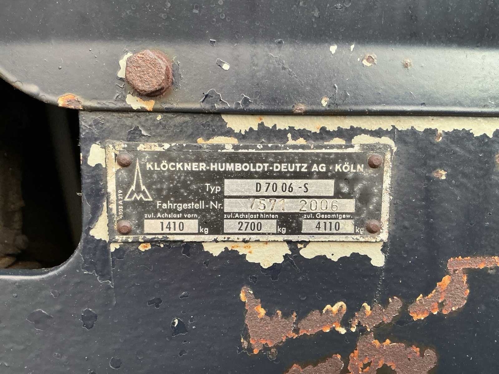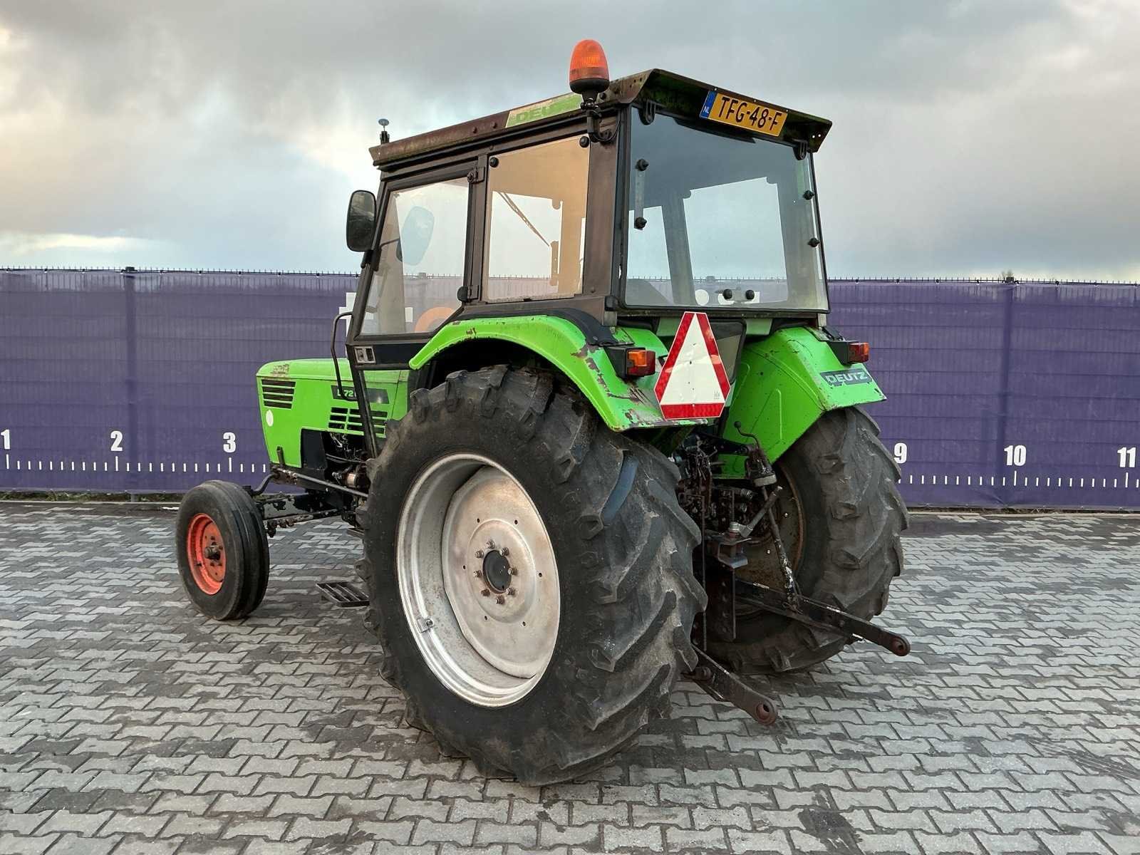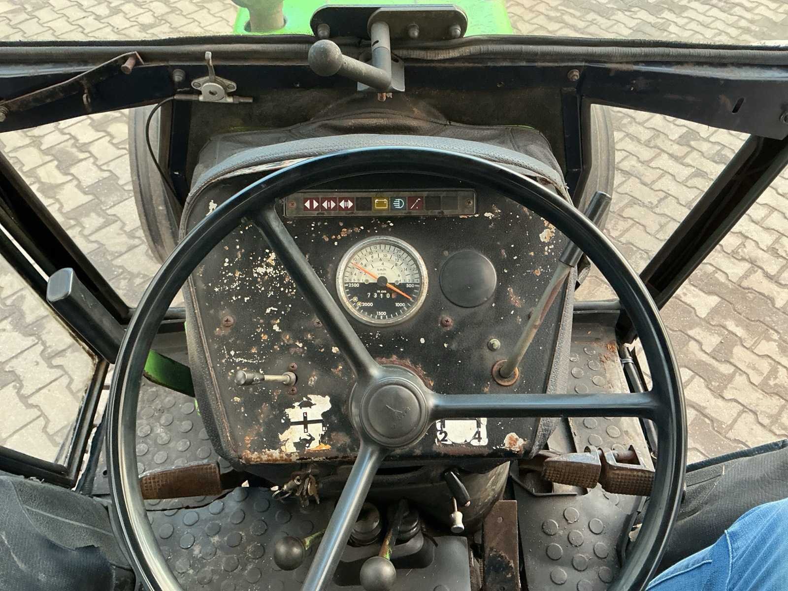 4.Cilinder diesel motor; Stuurbekrachtiging; Hoge/Lage gearing; Radio; Hefinrichting; 2WD Nee Merk: Deutz Type: 7206 Bouwjaar: 1973 Kenteken: TFG-48-F Motorvermogen (kW): 52.2kW Afgelezen urenstand: 7310 Versnellingsbaktype: Handgeschakeld Aftakastoerental: 540rpm Bandenmaat voor: 7.50-16 Bandenmaat achter: 480/70R34 Aantal hydraulische ventielen achter: 3 Datum eerste toelating: 1973-06-30