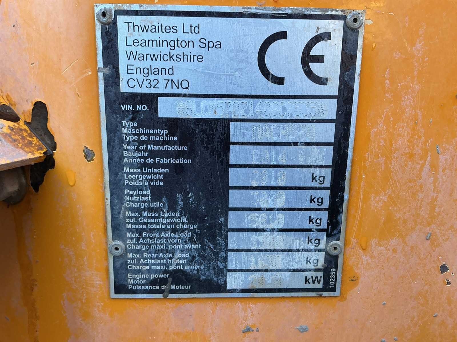Valbeugel; 4X4/AWD; zwaailamp; trekhaak Nee Merk: Thwaites Type: 3 Tonne Bouwjaar: 2014 Merk motor: Yanmar Motorvermogen (kW): 24.8kW Aantal cilinders: 3 Brandstof: Diesel Bedrijfsgewicht: 2010kg Laadvermogen: 3000kg Bandenmaat: 295/80-15.3 Afgelezen urenstand: 2317