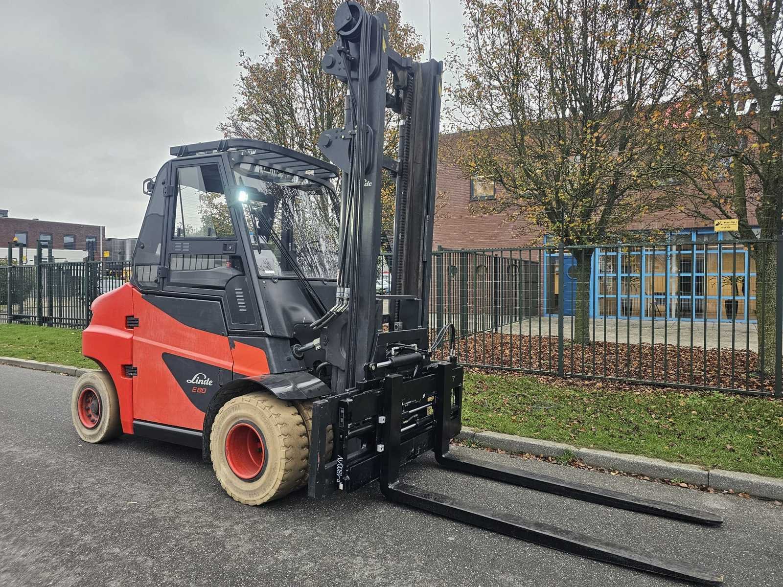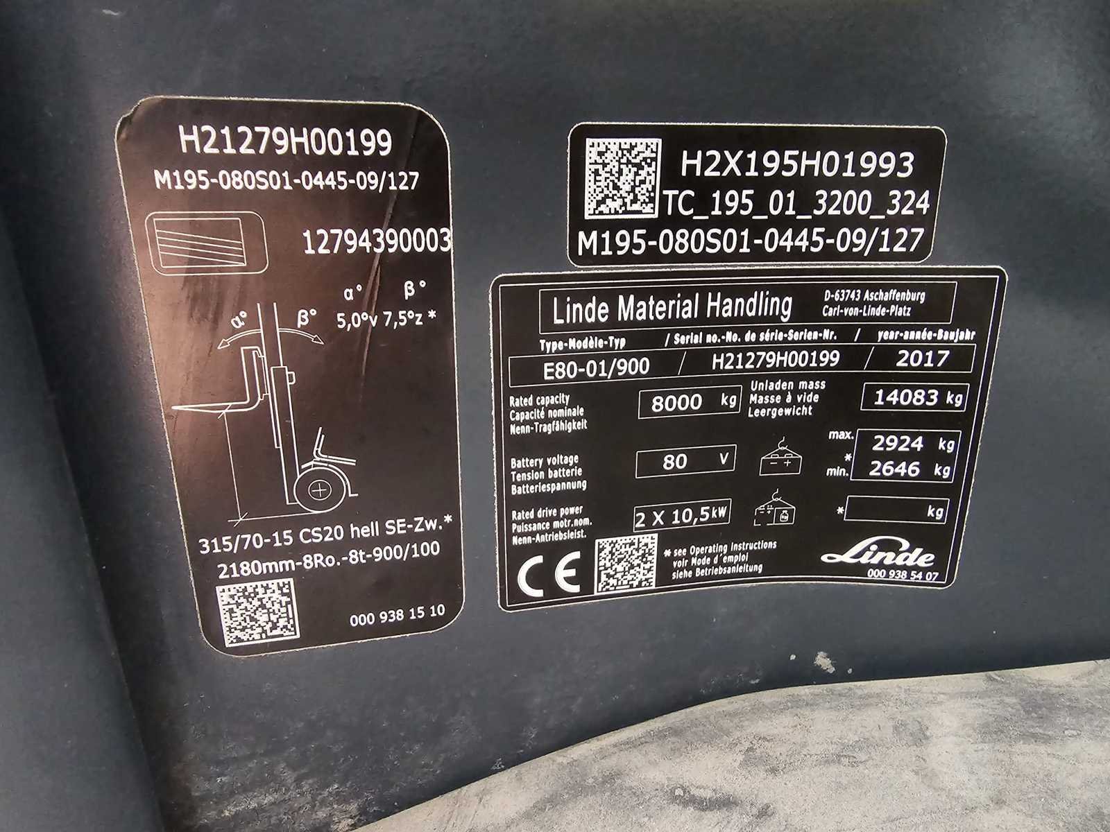 Extra opties : Accu uit 2020 , volledig dichte cabine , Rondom Led verlichting , verwarming , joystick , verlichting , lucht geveerde stoel Kijkdag op afspraak Nee Merk: Linde Type: E80-01/900 Bouwjaar: 2017 Serienummer: H21279H00199 Soort band: Volrubber banden Aantal wielen: 4 Side-shift: true Hydraulisch verstelbare lepels: true Eigen gewicht: 8300kg Hefvermogen: 8000kg Lepellengte: 2000mm Hefhoogte: 4500mm Vol rubber banden: true Minimale doorrijhoogte: 3000mm Totale afmeting L: 5800mm Totale afmeting Breedte: 2100mm Totale afmeting Hoogte: 3600mm