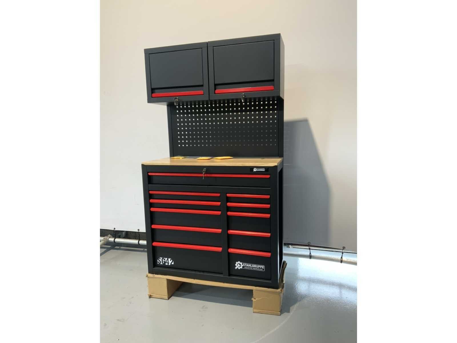 Ongebruikt , met zwenkwielen , 269 delige kist met achterwand en 2 opbergkastjes met sleutels Nee Merk: Stahlgruppe Type: SG11 + achterwand Bouwjaar: 2025 Aantal laden: 11 Met inhoud: true Eigen gewicht: 130kg Totale afmeting L: 1060mm Totale afmeting Breedte: 480mm Totale afmeting Hoogte: 1150mm