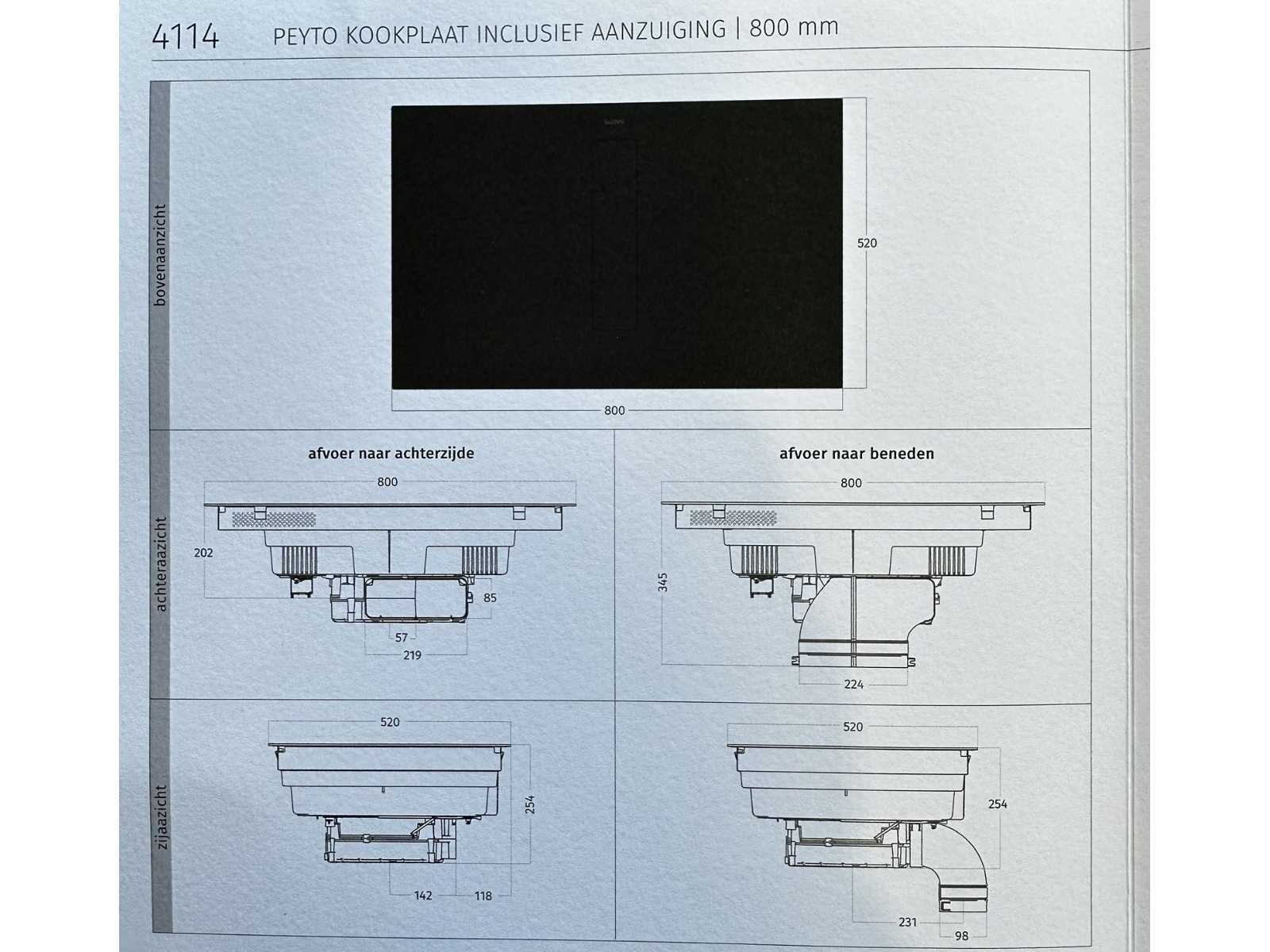 "Wave Peyto 4114.01 Inductie afzuiging" 80cm, 4-kookzones. Let op! Staat niet opgesteld in de showroom, enkel via 3D tekening; wordt geleverd ongebruikt in doos. Nee Merk: Häcker Concept130 Model: Topsoft zwart mat Type keukenopstelling: Eiland opstelling Lengte: 300cm Breedte: 60cm Hoogte: 216cm Gootsteen: Reginox Colorado RVS spoelbak Werkblad hoogte: 91cm Aanrechtblad: Kunststof marmer antraciet mat 3.8cm Magnetron: Bosch BFL423MB1F, nis 38cm, zwart kleur Koelkast: Bosch KIV865SE0, Nis 178cm, sleepdeur systeem Softclose: true Oven: Bosch HBA4340B3, nis 60cm, zwart kleur, hetelucht inbouwoven Vaatwasser: Bosch SMV4HU801E 60cm volledig geïntegreerd Lengte kookeiland: 244cm Breedte kookeiland: 100cm Hoogte kookeiland: 91cm Plintkleur: mat zwart Hoofdkleur: TOP SOFT zwart direktlak mat Style: modern Kleur: zwart mat lak