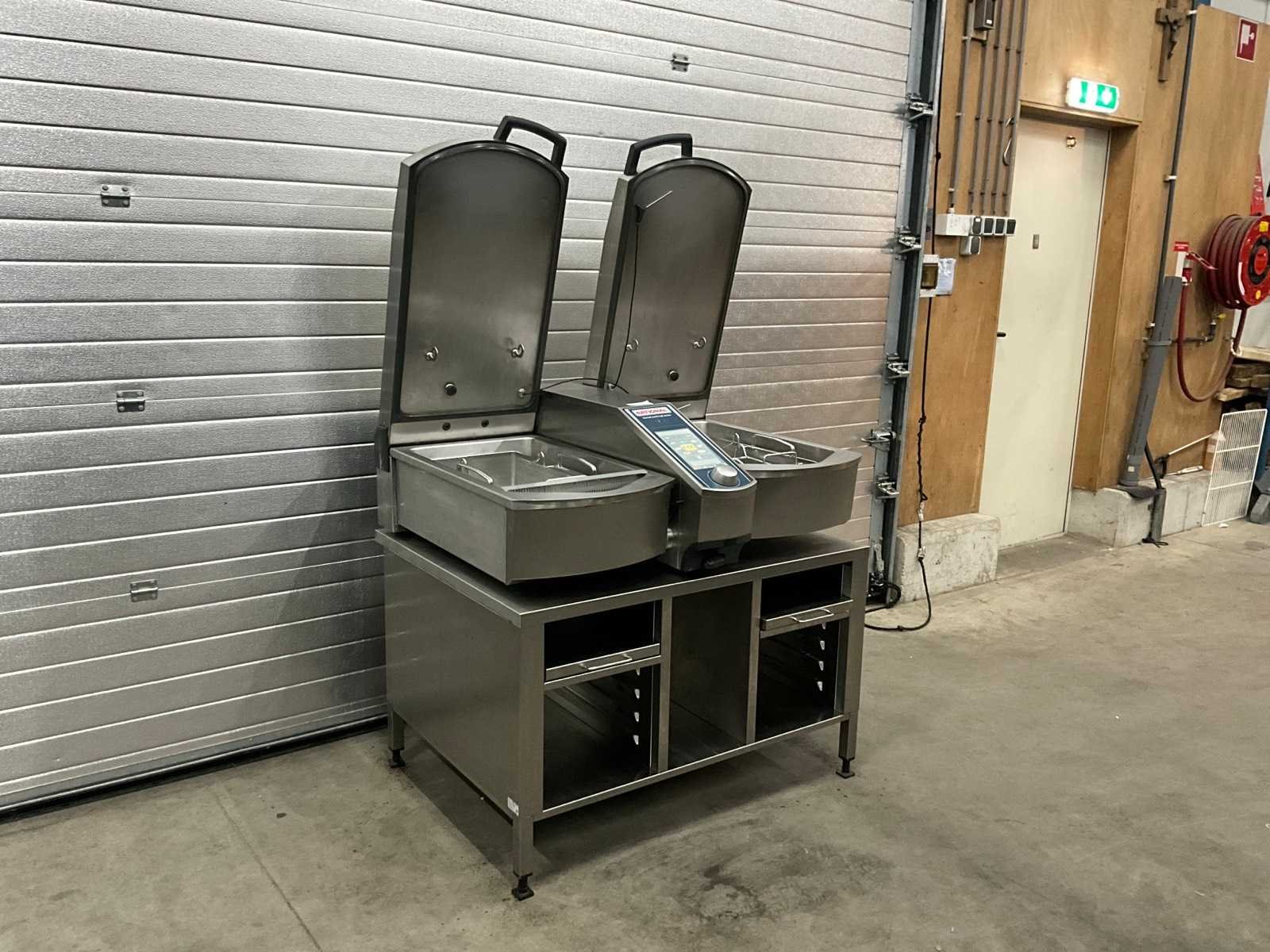 Inhoud 2 x 25 liter; inclusief onderstel en 2 x kookmand Nee Merk: Rational Bouwjaar: 2018 Type: VCC 112 L Vermogen: 21000W Aansluiting: 400V Touchscreen bediening: true Elektrisch: true Totale afmeting L: 110cm Totale afmeting Breedte: 95cm Totale afmeting Hoogte: 108cm