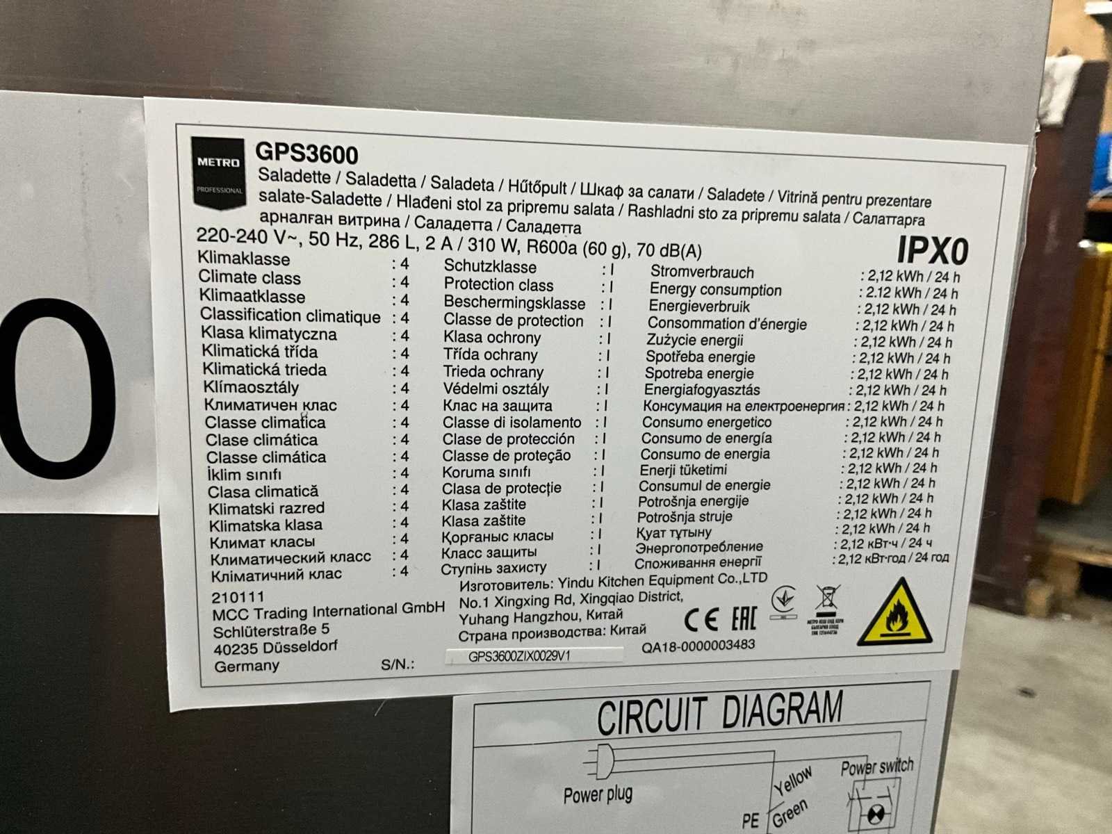 Ongebruikt met transportschade Nee Merk: Metro Type: GPS3600 Ingebouwde koelcompressor: true Aansluiting: 230V Lengte: 90cm Breedte: 70cm Hoogte: 112cm