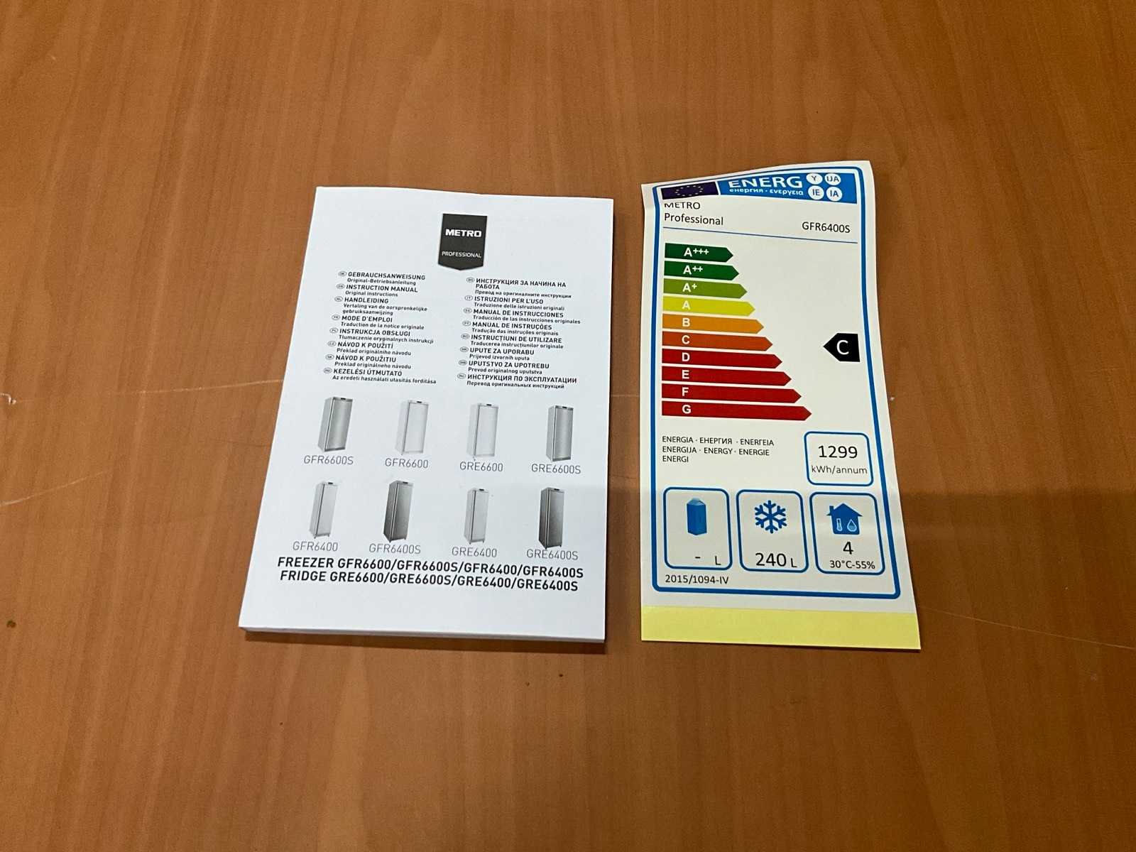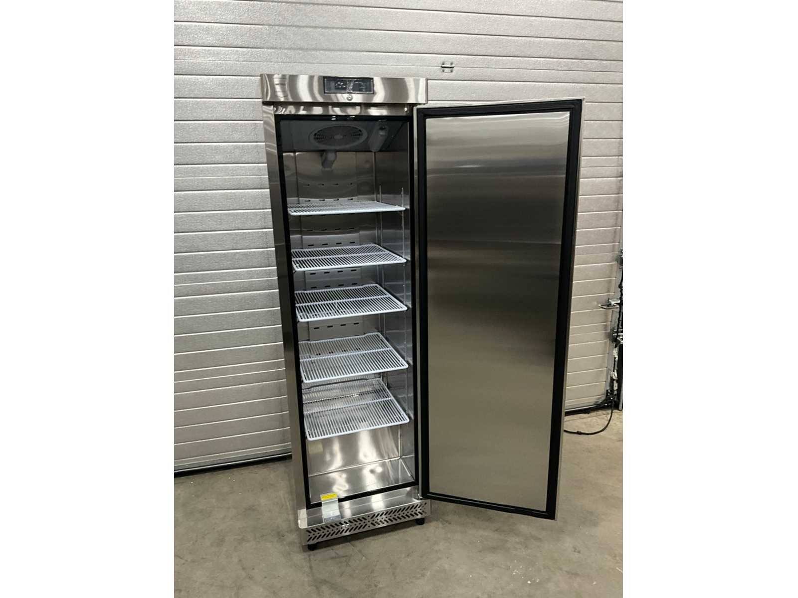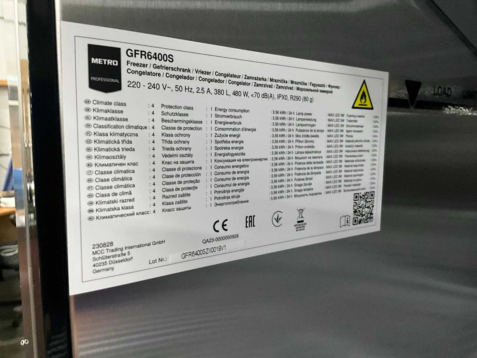 Ongebruikt ; 480 watt. No Merk: Metro Type: GFR 6400 S Rvs: true Aansluiting: 230V Capaciteit.: 380l Totale afmeting L: 60cm Totale afmeting Breedte: 64cm Totale afmeting Hoogte: 190cm