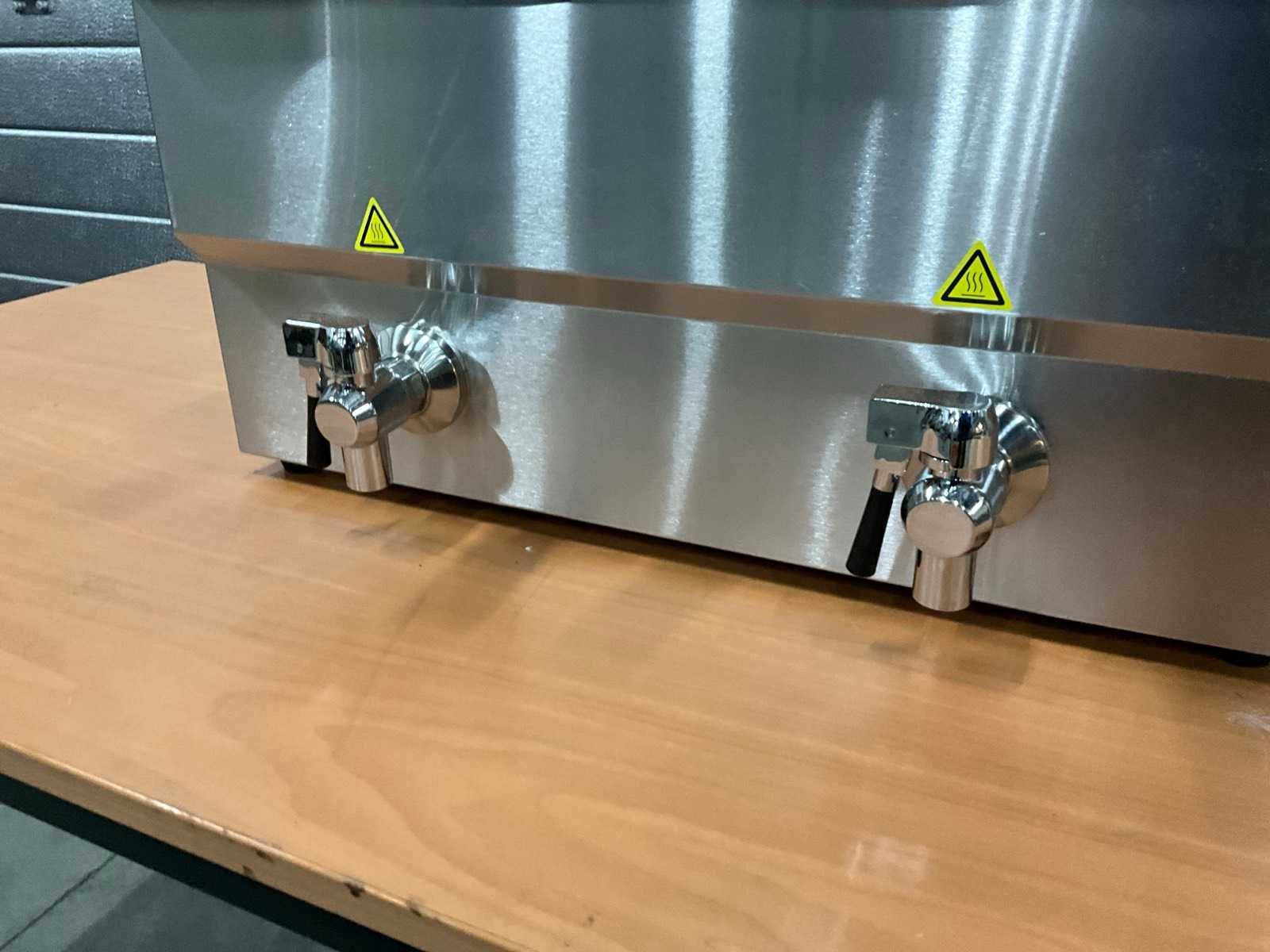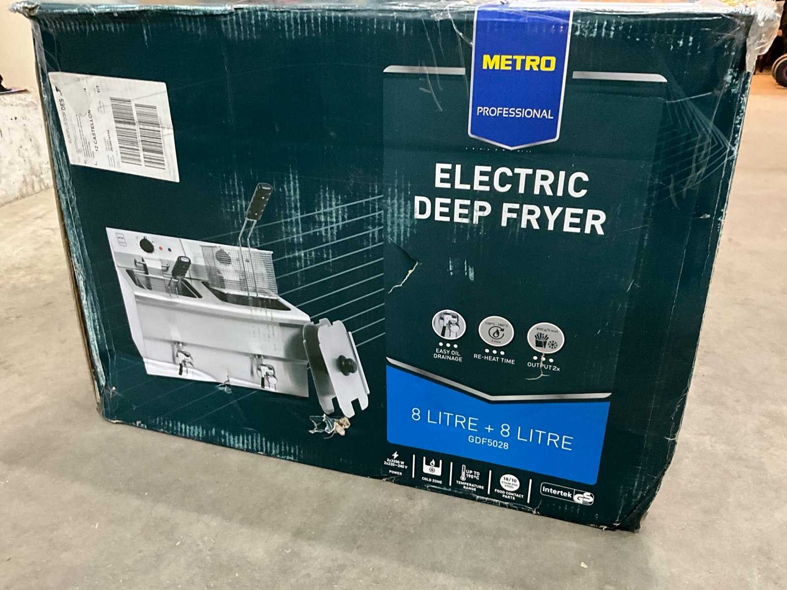 Ongebruikt; 2 x 230 volt; 2 x 3250 watt.; 2 x 8 liter inhoud. Nee Merk: Metro Model: GDF 5028 Lengte: 59cm Breedte: 43cm Hoogte: 43cm Materiaal: rvs Inhoud: 16 Elektrisch: true Spanning: 230