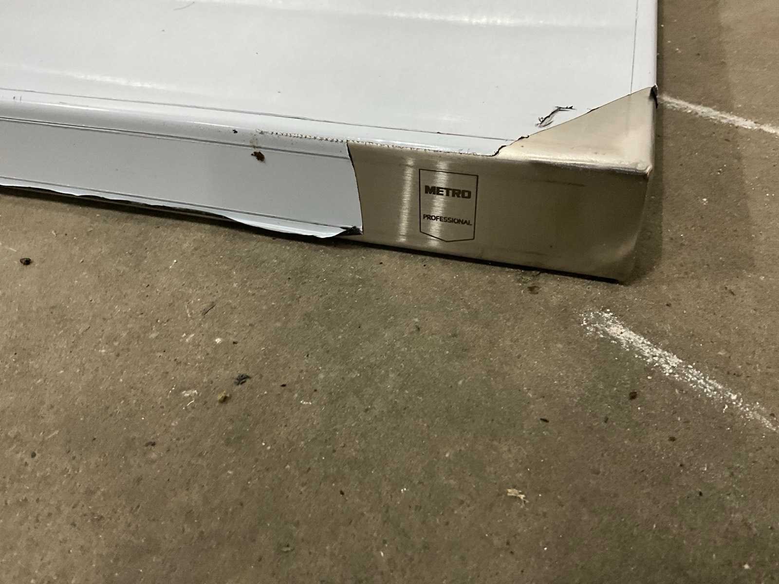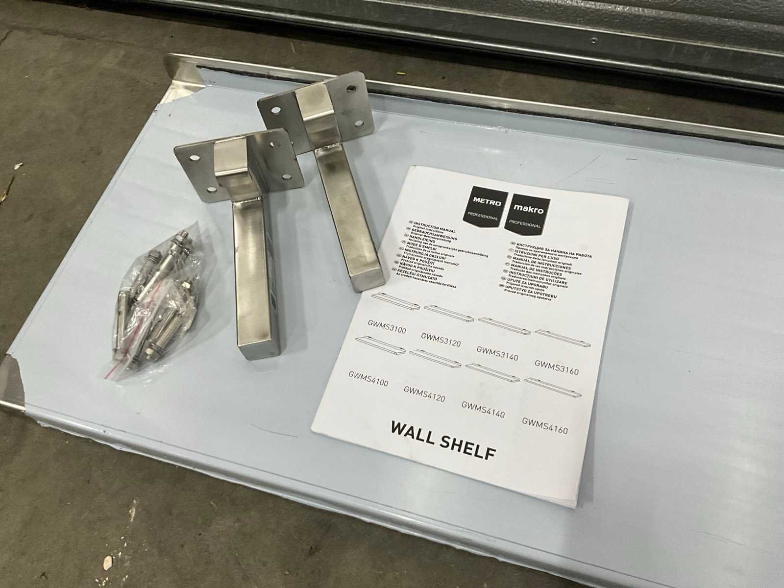 Ongebruikt; inclusief 2 wandschappen. No Merk: Metro Type: GWMS 4120 Rvs: true Lengte: 120cm Breedte: 40cm Hoogte: 30cm