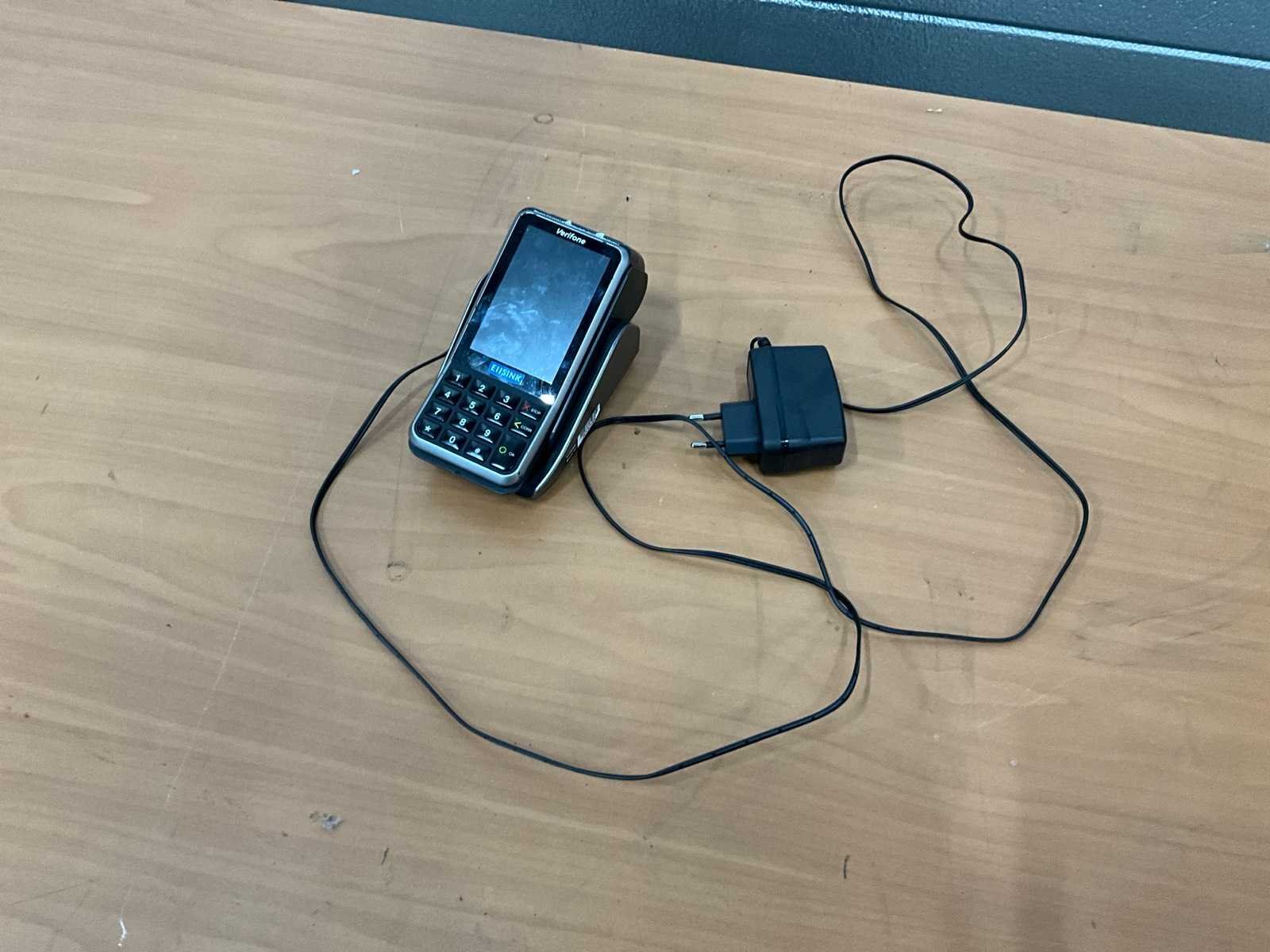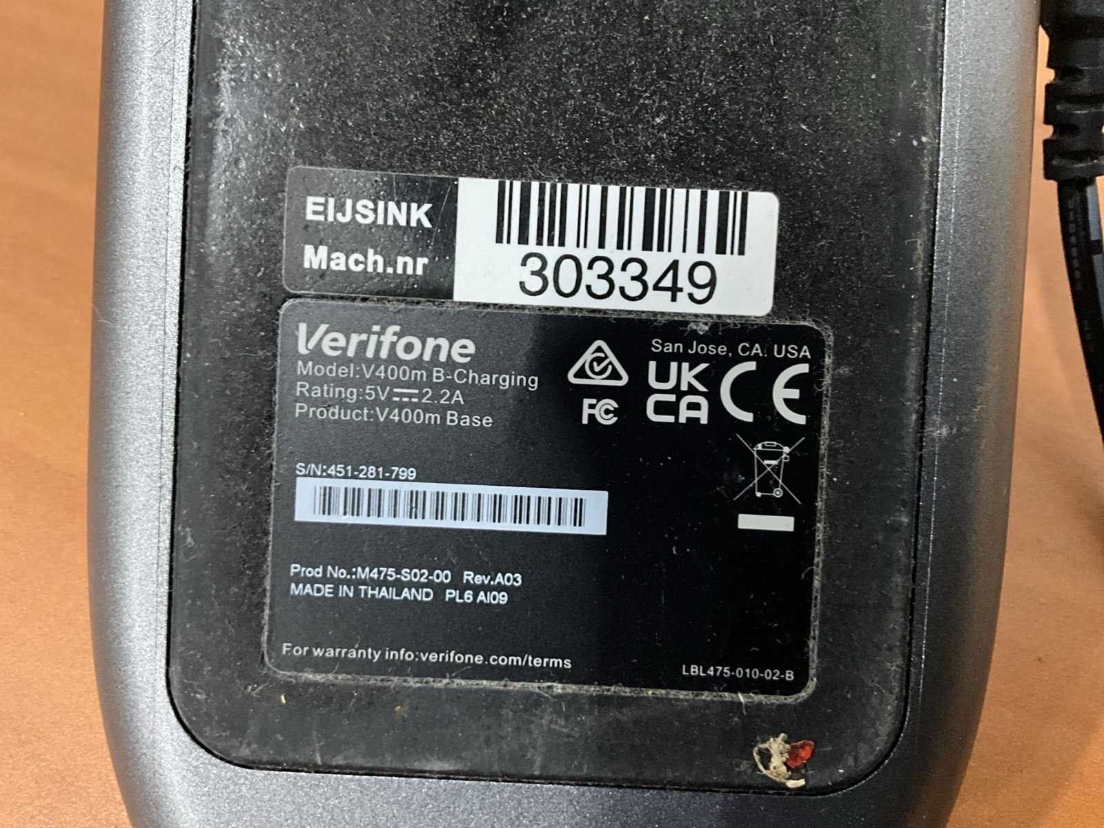 Inclusief adapter. Nee Merk: Verifone Model: V400M Lengte: 8cm Breedte: 16cm Hoogte: 9cm
