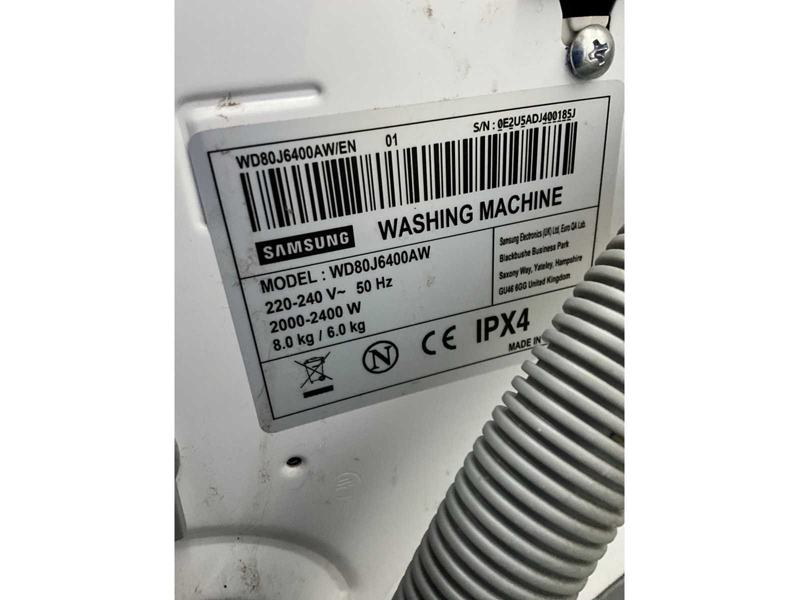 Nee Merk: Samsung Model: WD80J6400AW Spanning: 230V Vermogen: 2400W Lengte: 60cm Breedte: 65cm Hoogte: 86cm Laadvermogen: 8kg