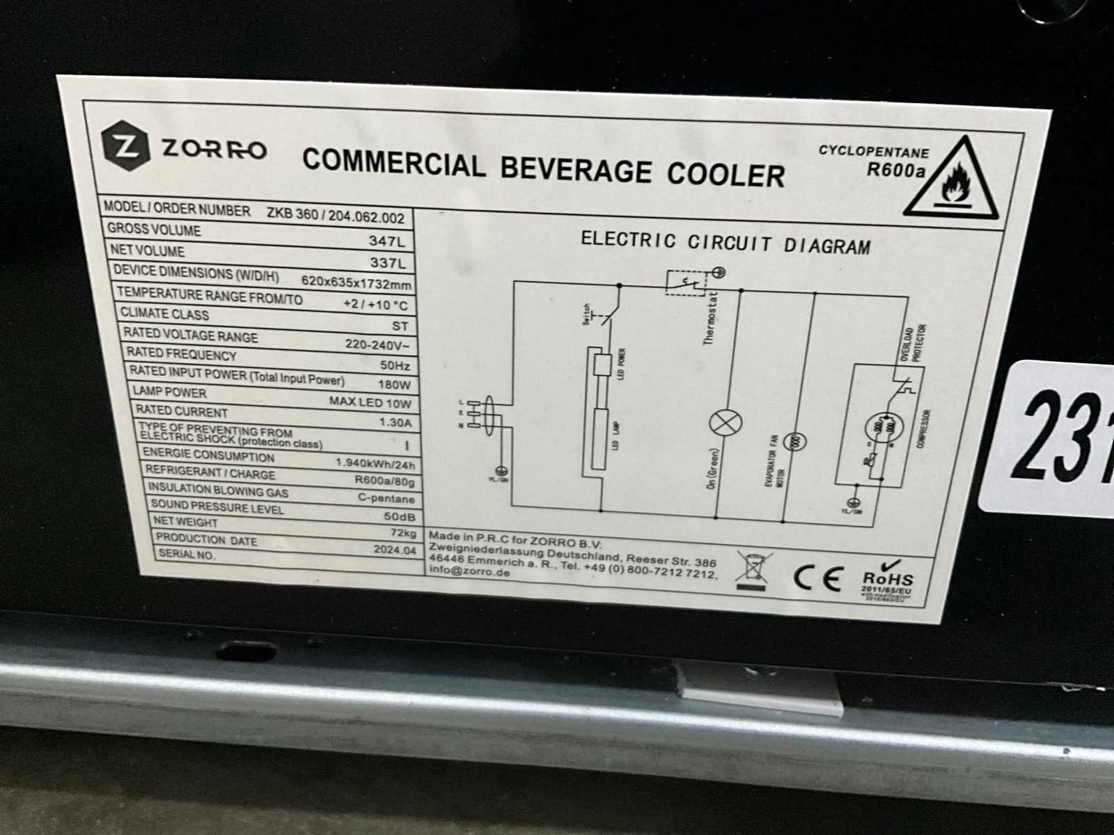 2024 saro zkb 360 glasdeur koelkast