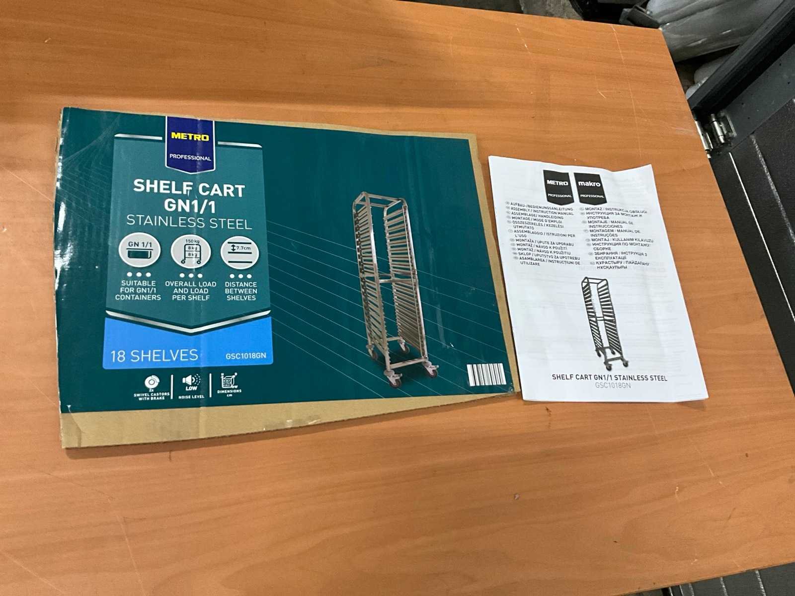 Ongebruikt; voor 18-laags 1/1 gn. Nee Merk: Metro Type: GSC1018GN Totale afmeting L: 385mm Totale afmeting Breedte: 555mm Totale afmeting Hoogte: 1745mm Rvs: true