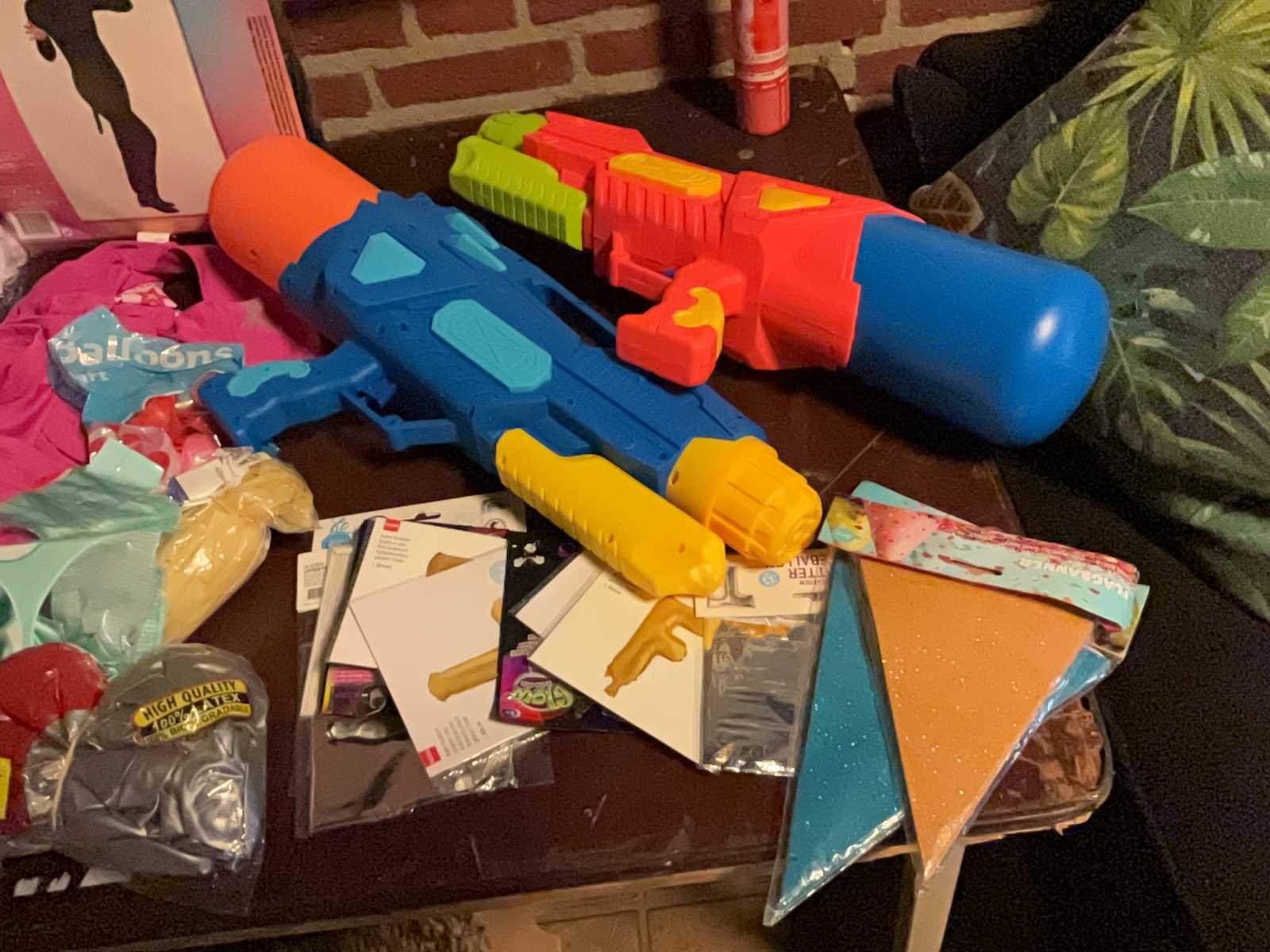 Ballonnen, hoeden, slingers en attributen voor thema-avonden. Nee