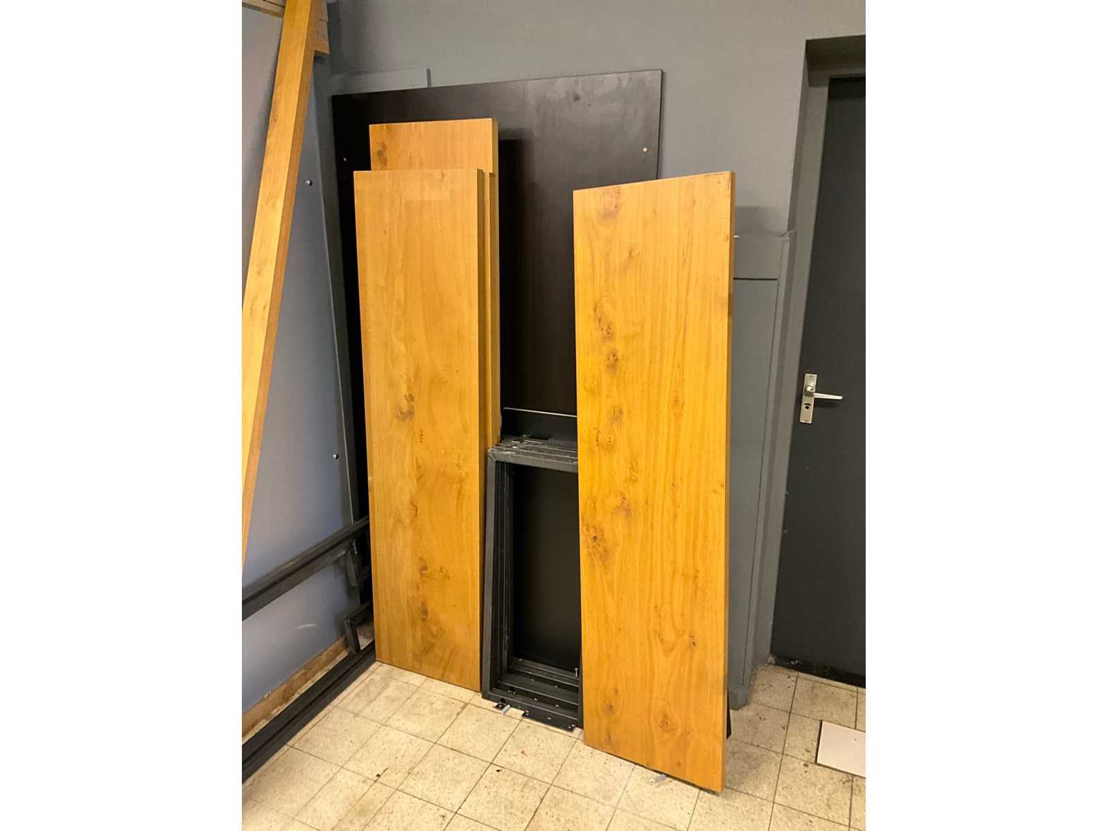 Kavel is reeds gedemonteerd. 3 x 166, 1 x 186, 1 x 300 cm. ; inclusief poten en kabelgoot. Nee Hout: true Metaal: true