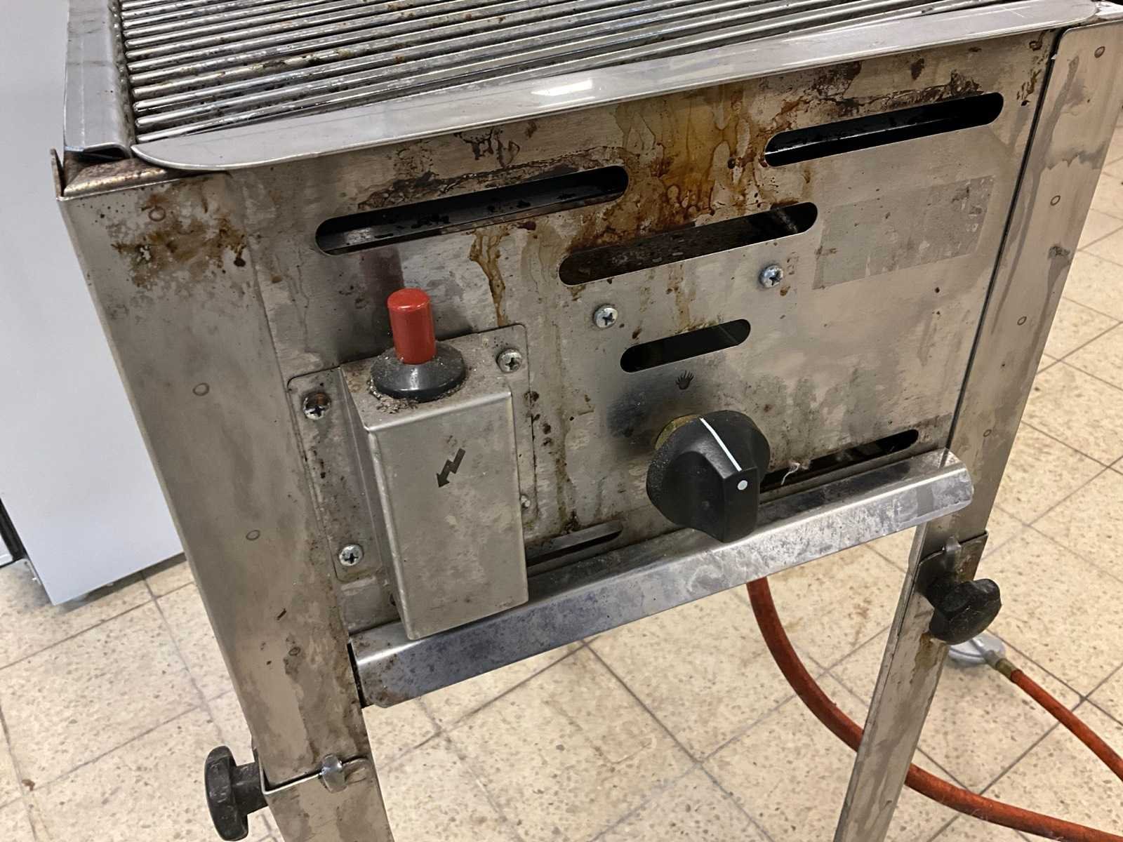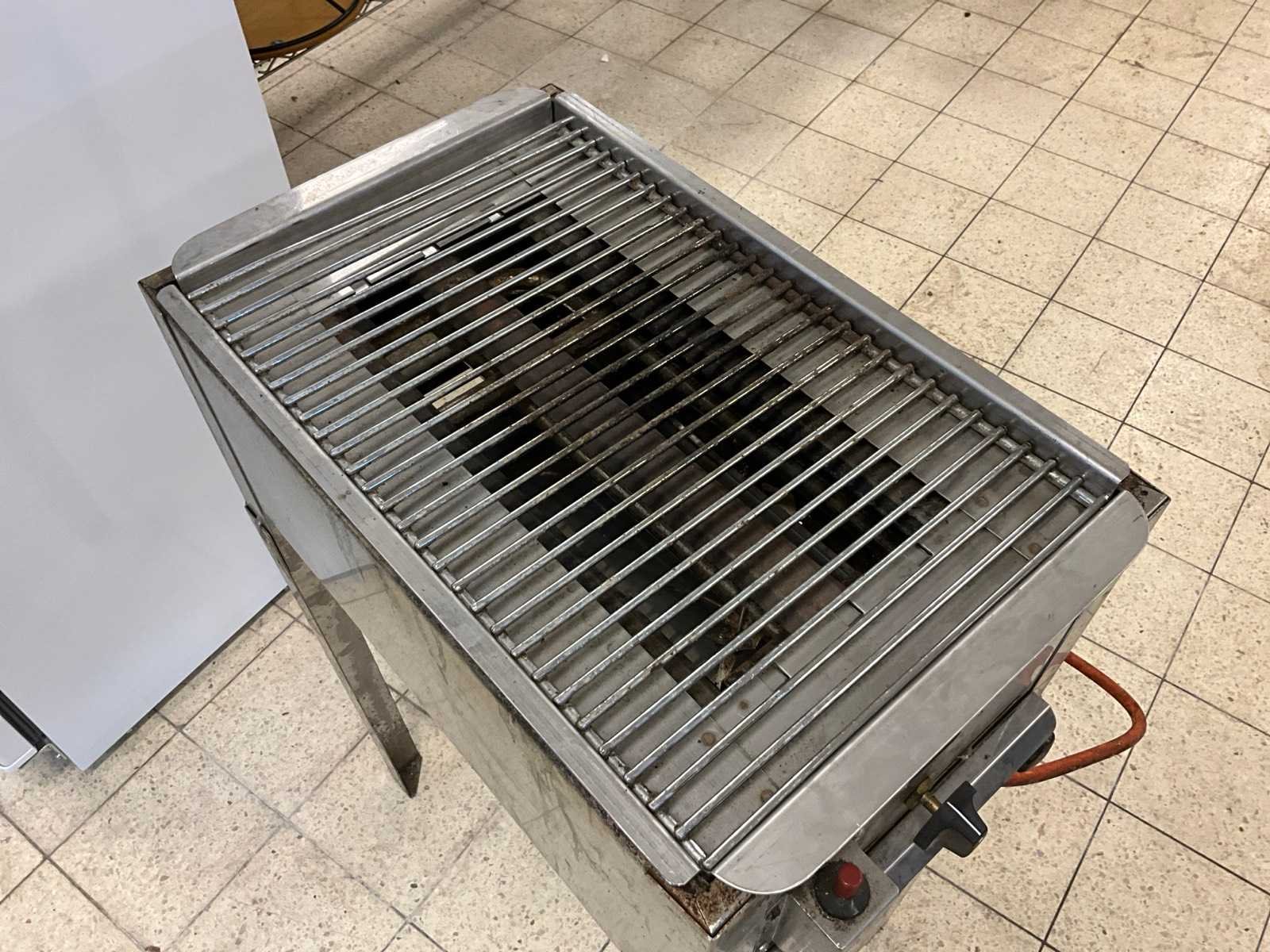 4,6 kw.; propaan. roosters niet orgineel Nee Merk: Hendi Model: Grill Master Mini Materiaal: rvs Totale afmeting Breedte: 340mm Totale afmeting L: 560mm Totale afmeting Hoogte: 850mm