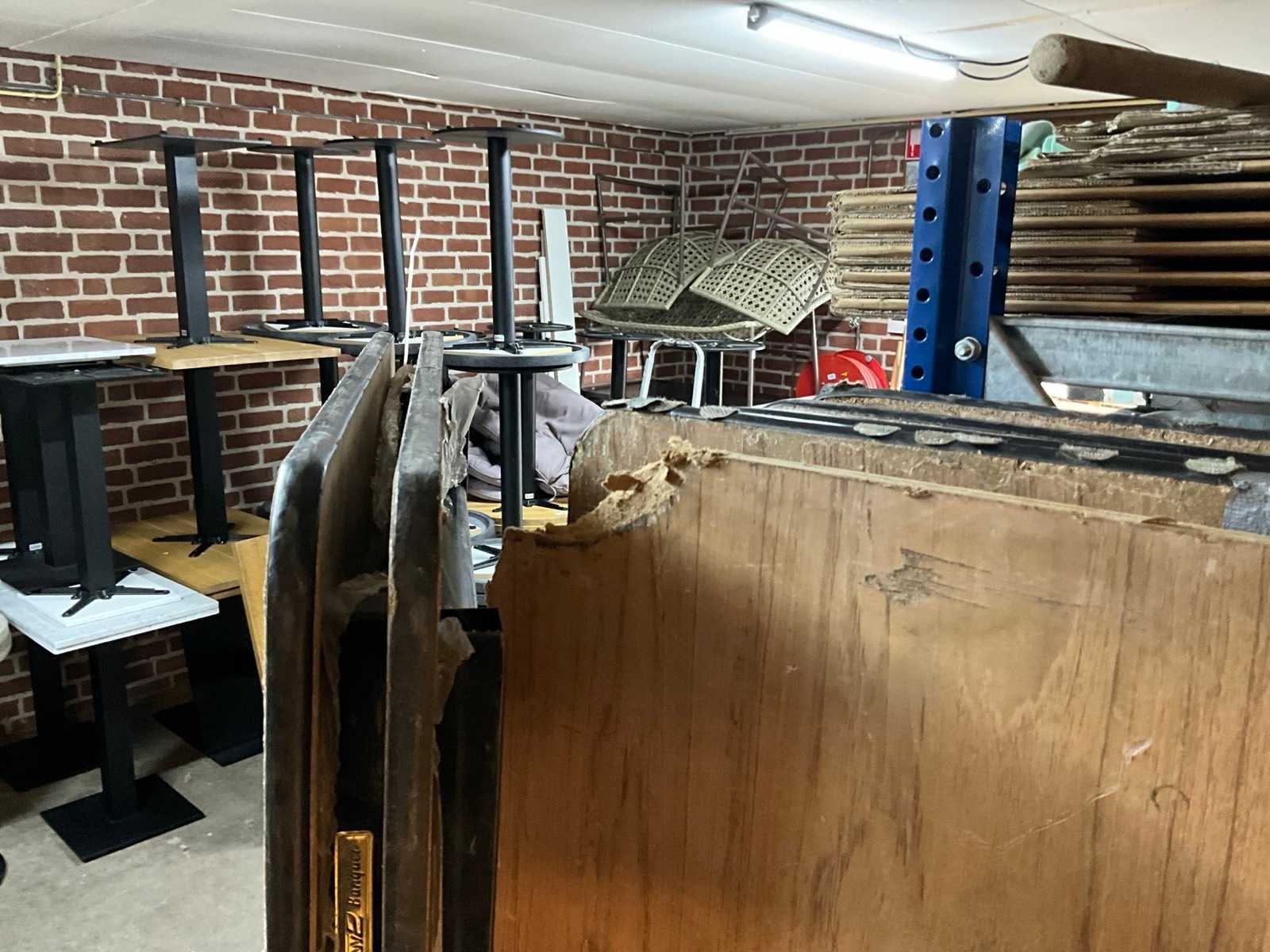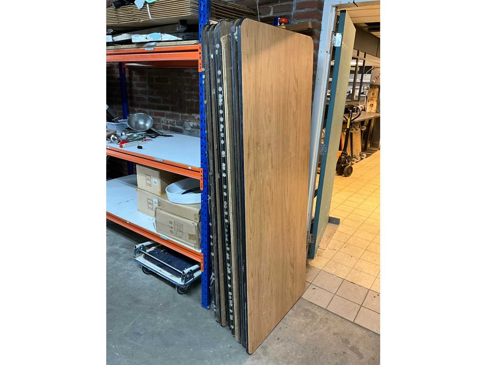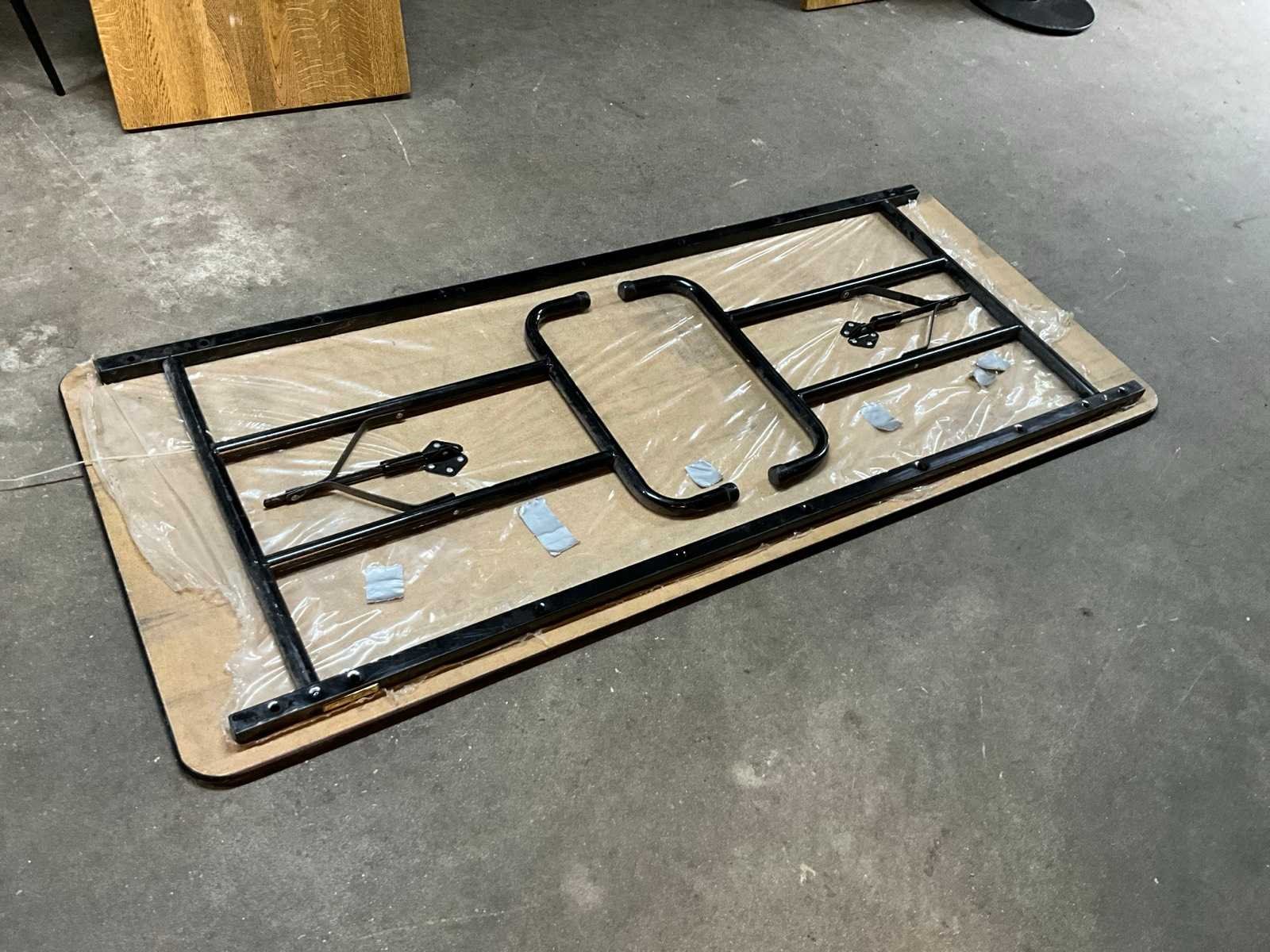Let op! alle tafels zijn beschadigd Nee Hout: true Metaal: true Totale afmeting L: 183cm Totale afmeting Breedte: 77cm Totale afmeting Hoogte: 75cm