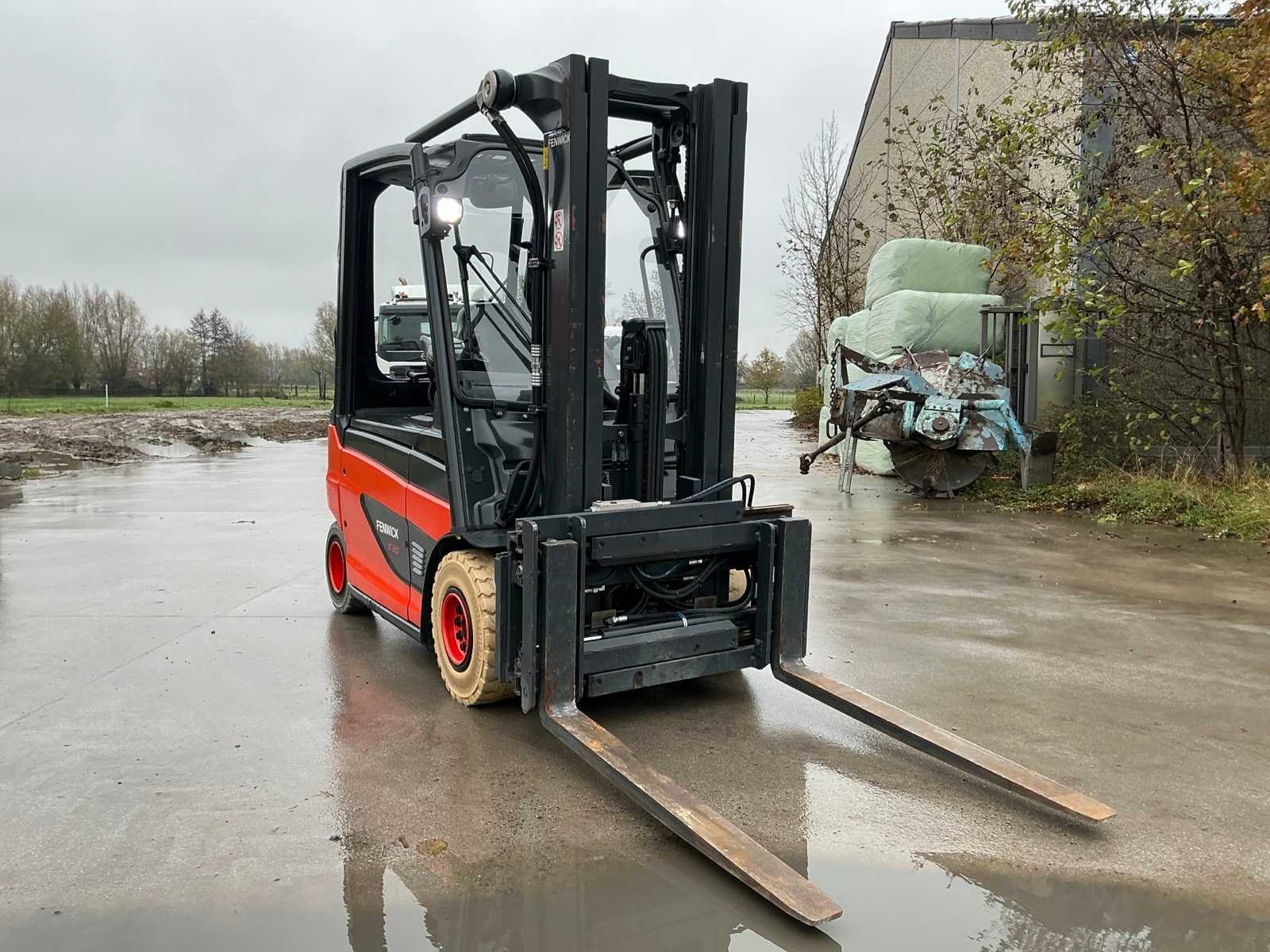 Nieuwe Wifo rotator met arm , geveerde stoel , led werklichten , no marking banden , Nee Merk: Linde Type: E20-01 Bouwjaar: 2016 Serienummer: H2X387G00971 Brandstof: Elektrisch Mast: Triple Soort band: Volrubber banden Aantal wielen: 4 Afgelezen urenstand: 1800 Side-shift: true Roterend vorkenbord: true Eigen gewicht: 4350kg Hefvermogen: 2000kg Lepellengte: 1300mm Min. hefhoogte: 0mm Max. hefhoogte: 4610mm Vol rubber banden: true Totale afmeting L: 2600mm Totale afmeting Breedte: 1150mm Totale afmeting Hoogte: 2100mm