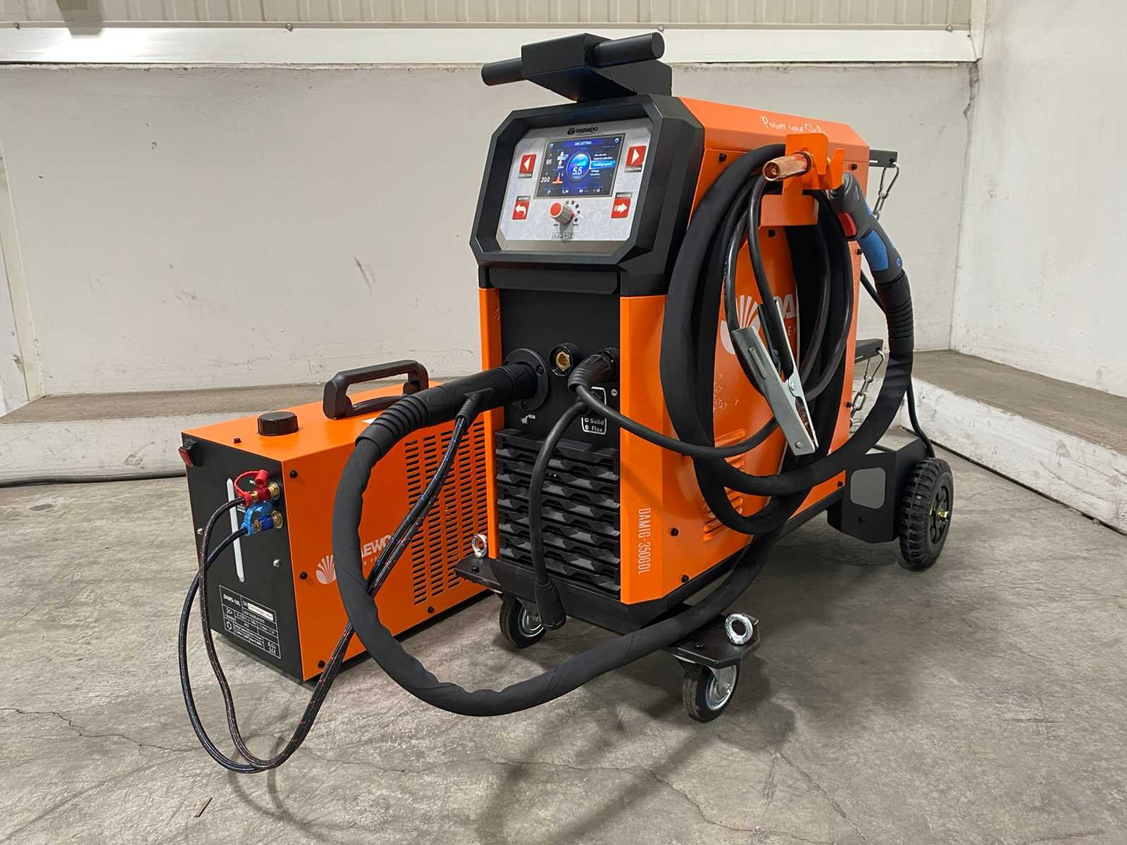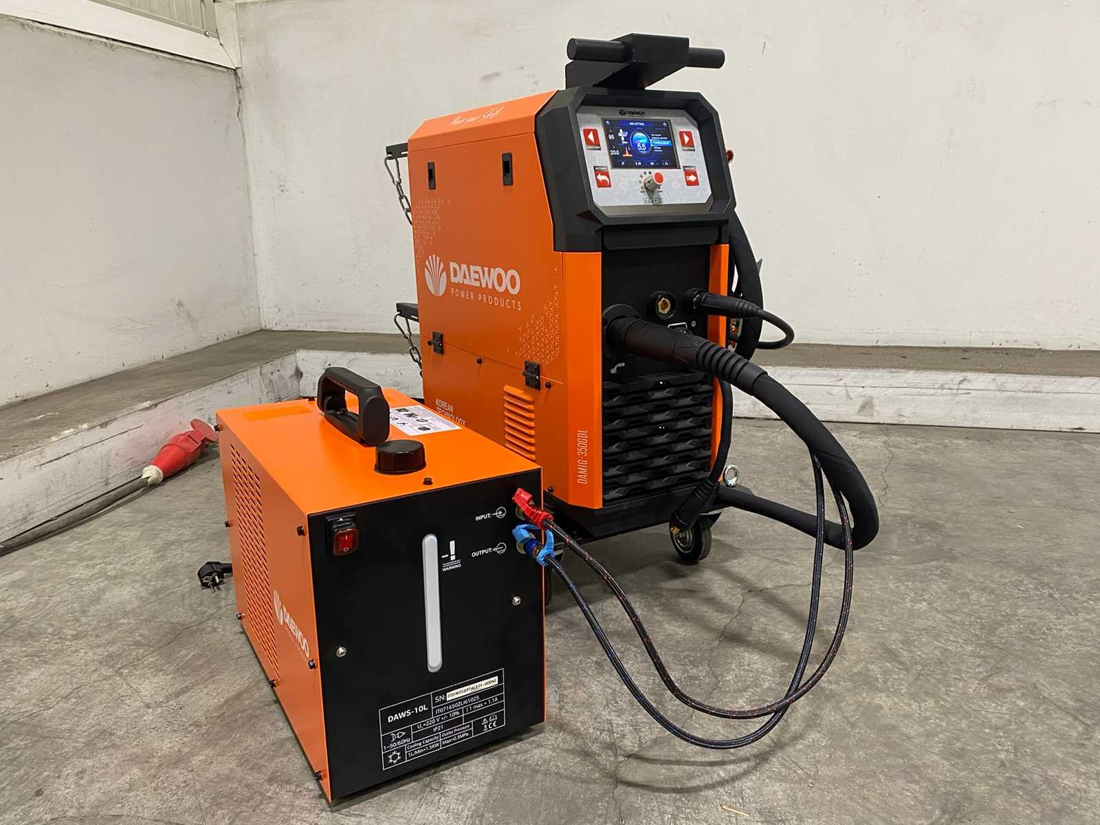 <li><b>watergekoelde multi-proces lasmachine</b></li> <li><b>functies:</b> MIG/MAG, TIG & MMA</li> <li><b>regelbare stroomsterkte:</b> 30-350 ampère</li> <li><b>inschakelduur:</b> 60% inschakelduur (250 A)</li> <li><b>voorzien van:</b> LCD kleurendisplay</li> <li><b>voorzien van:</b> waterkoeler voor MIG/MAG-toorts</li> <li><b>inclusief:</b> watergekoelde MIG/MAG-toorts</li> <li><b>inclusief:</b> TIG-toorts met toebehoren</li> <li><b>inclusief:</b> elektronische gasregelaar</li> <li><b>aansluiting:</b> 380 volt</li> <li><b>technologie:</b> IGBT-technologie</li> <li><b>beveiliging:</b> zekeringautomaat</li> <li><b>inclusief:</b> handleiding</li> <li><b>staat:</b> ongebruikt, in de originele verpakking</li> Nee Merk: Daewoo Type: DAMIG-350GDL
