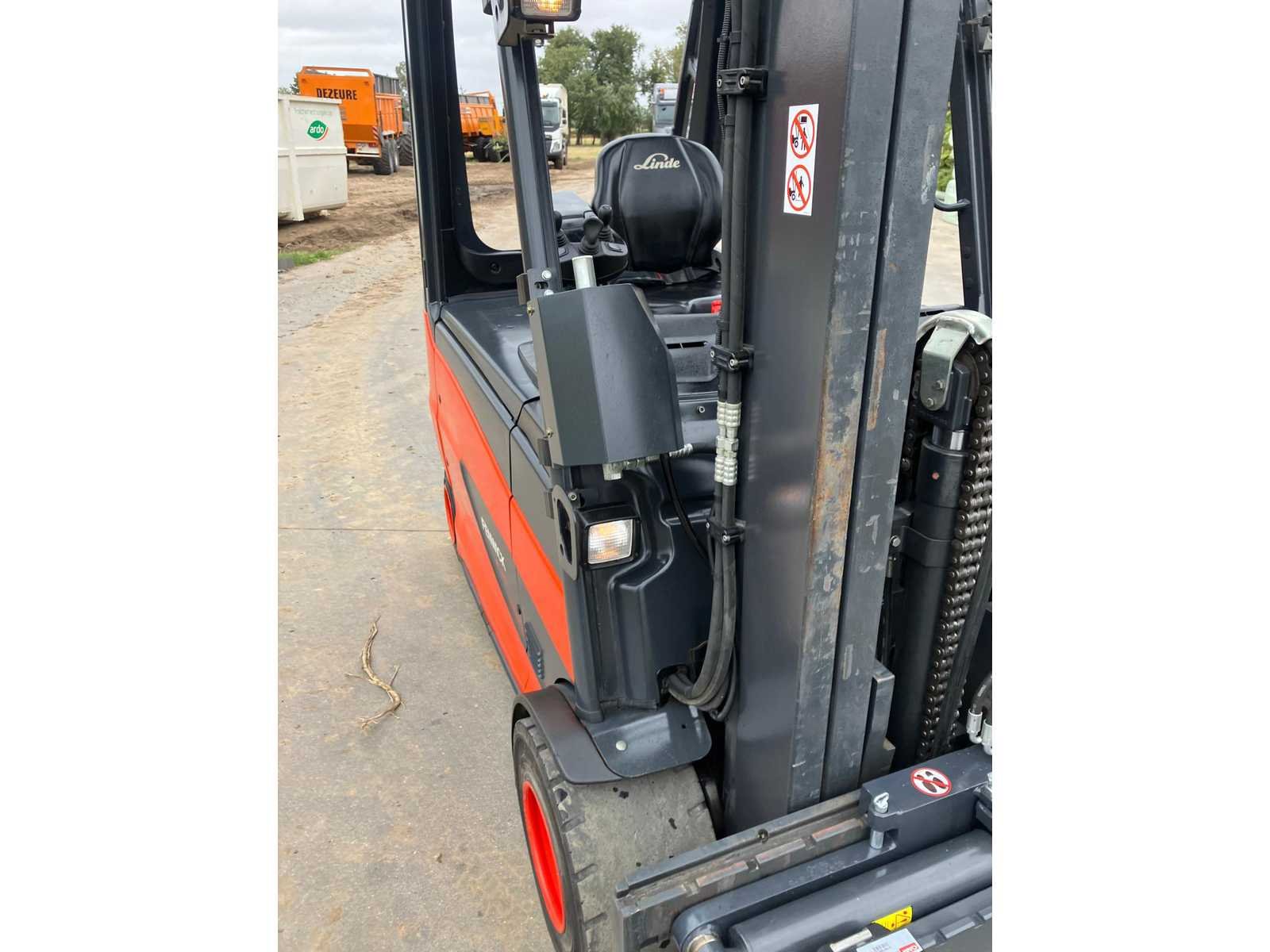 Voorzien van: ongebruikt Wifo rotator vorkenbord zonder acculader No Merk: Linde Type: E35 Bouwjaar: 2018 Serienummer: H2X387J02120 Brandstof: Elektrisch Mast: Triple Soort band: Volrubber banden Aantal wielen: 4 Afgelezen urenstand: 4899 Side-shift: true Roterend vorkenbord: true Triple mast: true Eigen gewicht: 6100kg Hefvermogen: 3500kg Min. hefhoogte: 0mm Max. hefhoogte: 5000mm Hefhoogte: 5000mm Vol rubber banden: true Totale afmeting L: 2200mm Totale afmeting Breedte: 1300mm Totale afmeting Hoogte: 2250mm