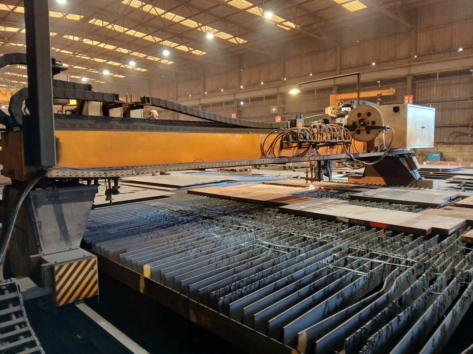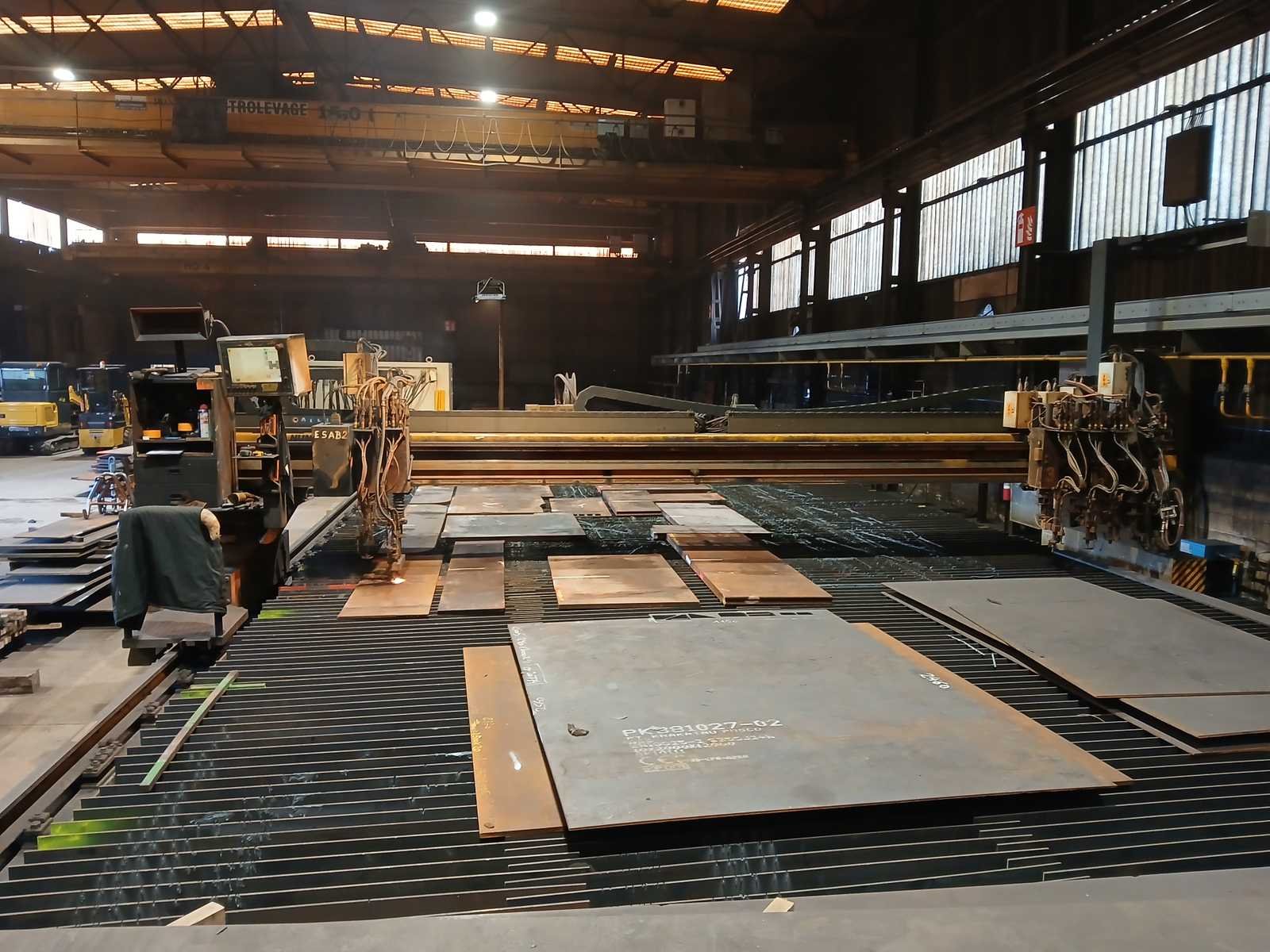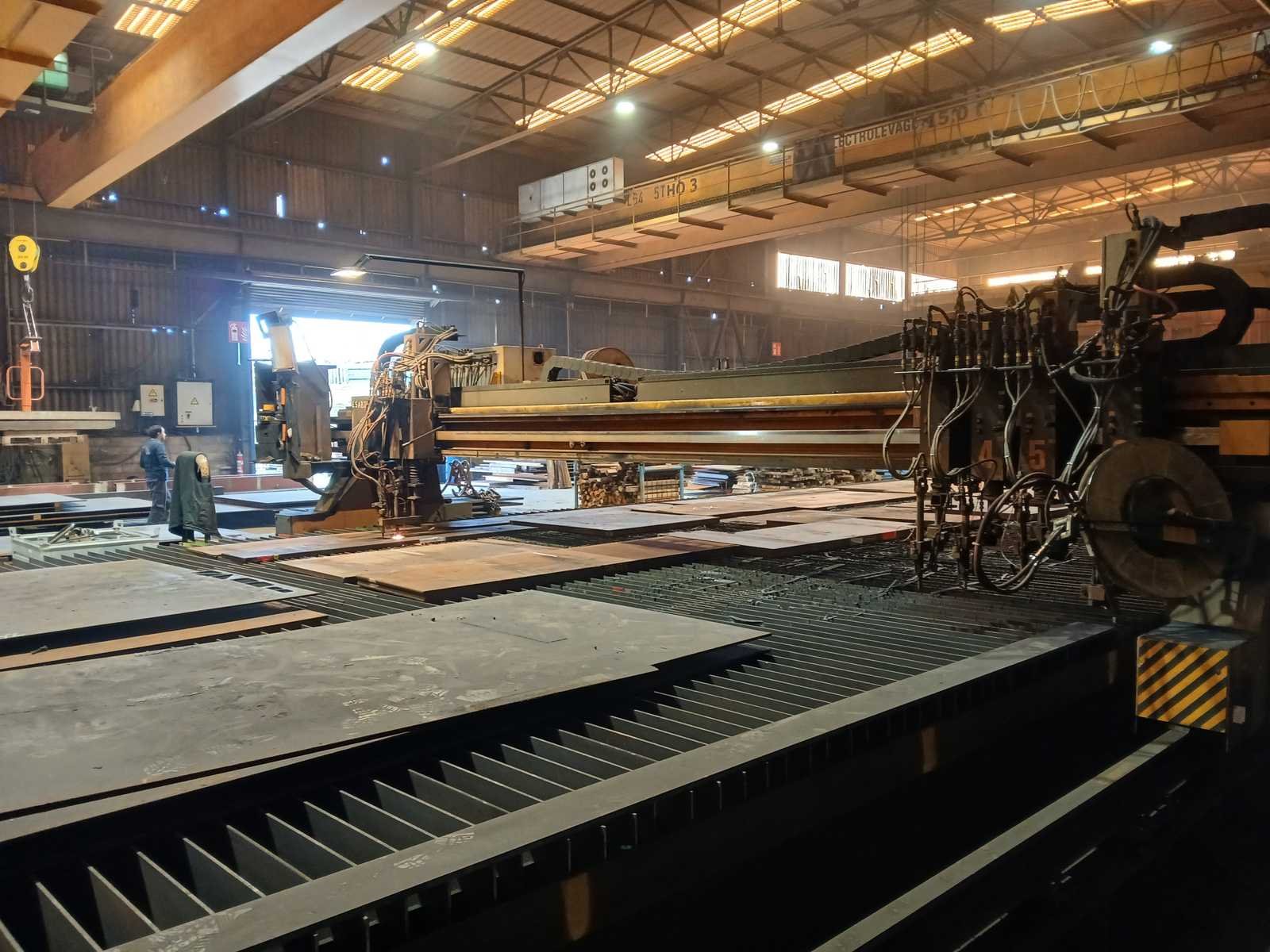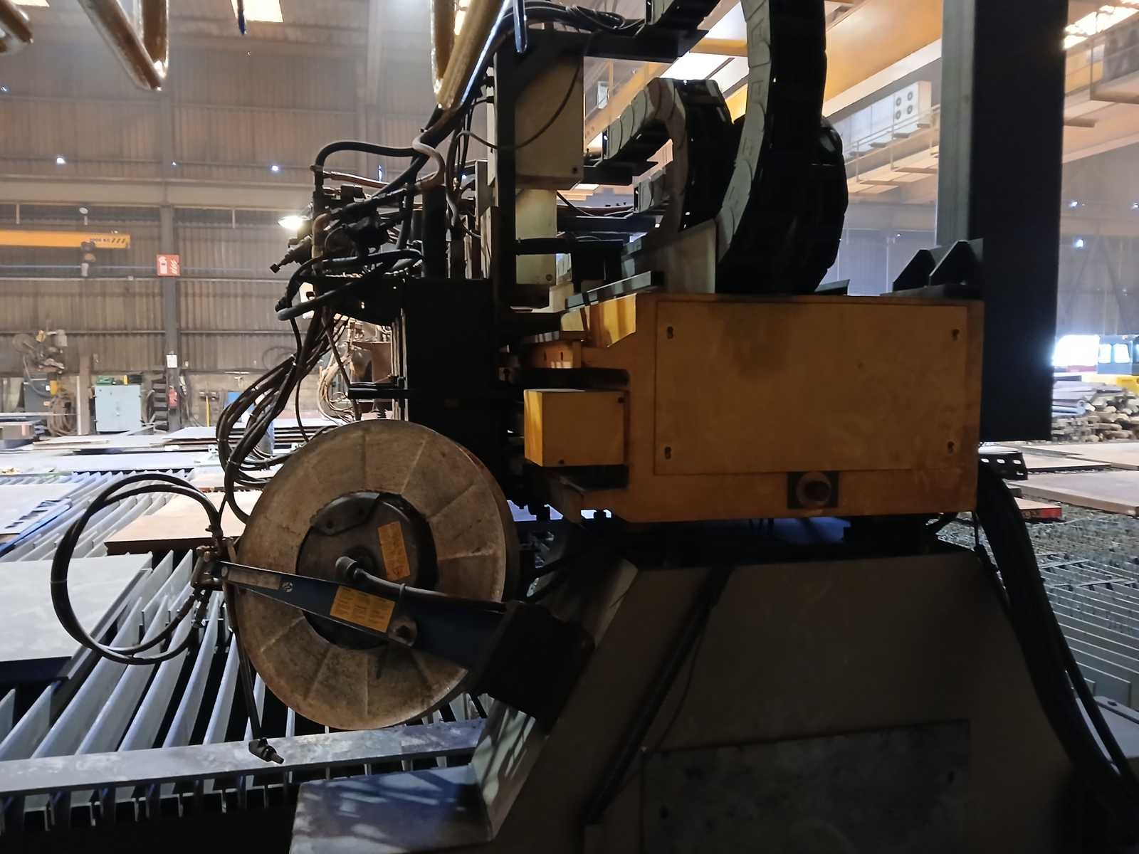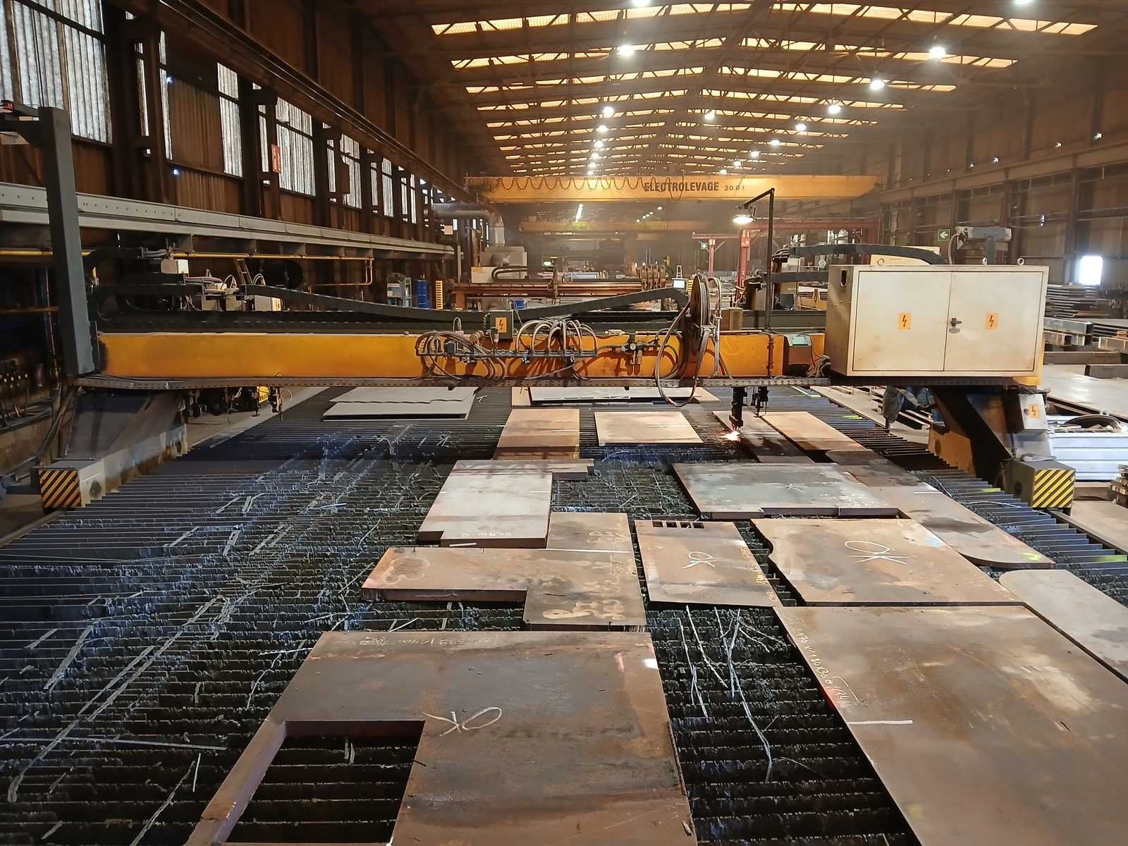 ESAB Numorex NXB 7500 vlamsnijmachine Merk: ESAB Model: Numorex NXB 7500 Jaar: 1999 Voeding: 3 × 400 V Beschrijving ESAB Numorex NXB 7500 industriële zuurstofsnijmachine met hoge capaciteit, uitgerust met 6 snijkoppen. Robuuste machine, geschikt voor het snijden van grote diktes en tot nu toe in productie gebruikt. Nog steeds in gebruik tijdens de inspectie. De machine zal in week 49 worden gedemonteerd, nadat deze is vervangen door een nieuwe installatie. Technische kenmerken Aantal koppen: 6 oxy-brandstofbranders Nuttige snijbreedte: 6.000 mm Maximale snijdikte: 250 mm Markering van onderdelen: geïntegreerde pneumatische chipper Tuitverstelling: handmatige kalmer (vast, volger en spiegel) Geleverde rails: ca. 30 meter Besturingssysteem: Numorex console (kleurendisplay, analoge en digitale bediening) Algemene staat Machine in werkende staat ten tijde van de foto's Regelmatig onderhoud, complete portaal, operationele branders Geleiders, rails en rekken in goede visuele staat Normale slijtage door continu industrieel gebruik ⚠️ Belangrijk De snijtafel (roosters / plaatmetalen steun) is niet inbegrepen bij de verkoop. Laden op locatie mogelijk Grootte Gantrylengte: ca. 6.000 mm (snijbreedte) Totale lengte met rails: ca. 30 m Non Merk: ESAB Type: Numorex NXB 7500 Bouwjaar: 1999